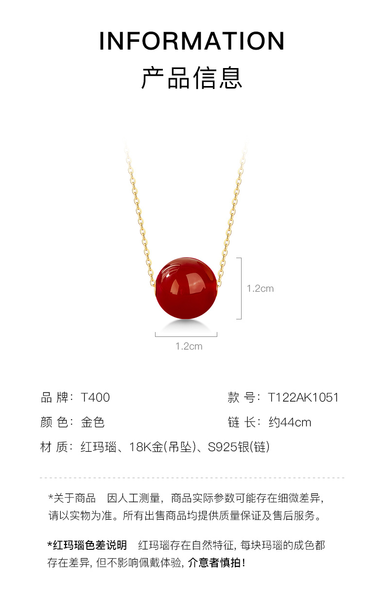 【品牌优选】T400 红玛瑙吊坠项链 红彤彤的爱