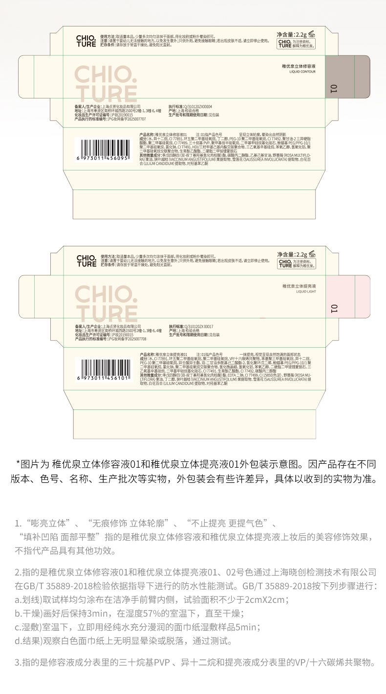 稚优泉(CHIOTURE)液体提亮液修容液高光提亮脸部遮瑕液哑光阴影面部鼻影阴影