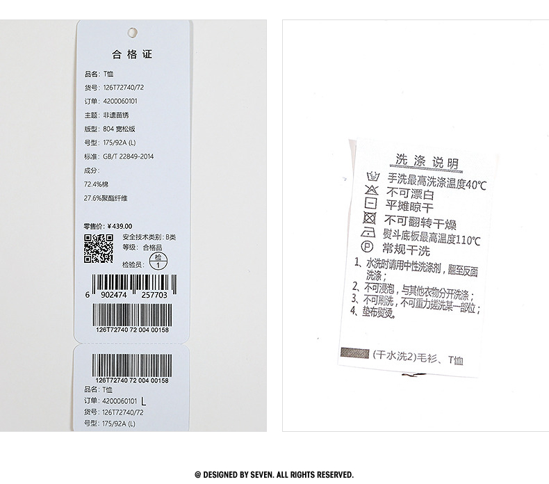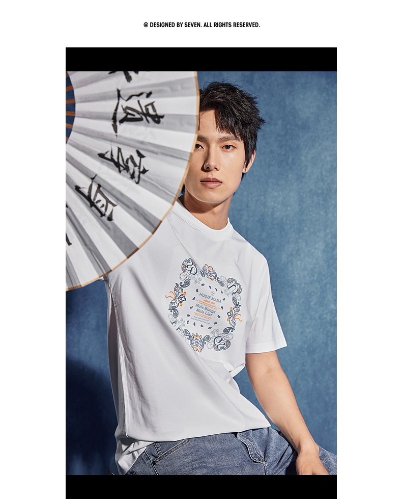 【非遗苗绣蝴蝶妈妈系列】柒牌短袖T恤男夏季薄款索罗纳休闲体恤 126T72740