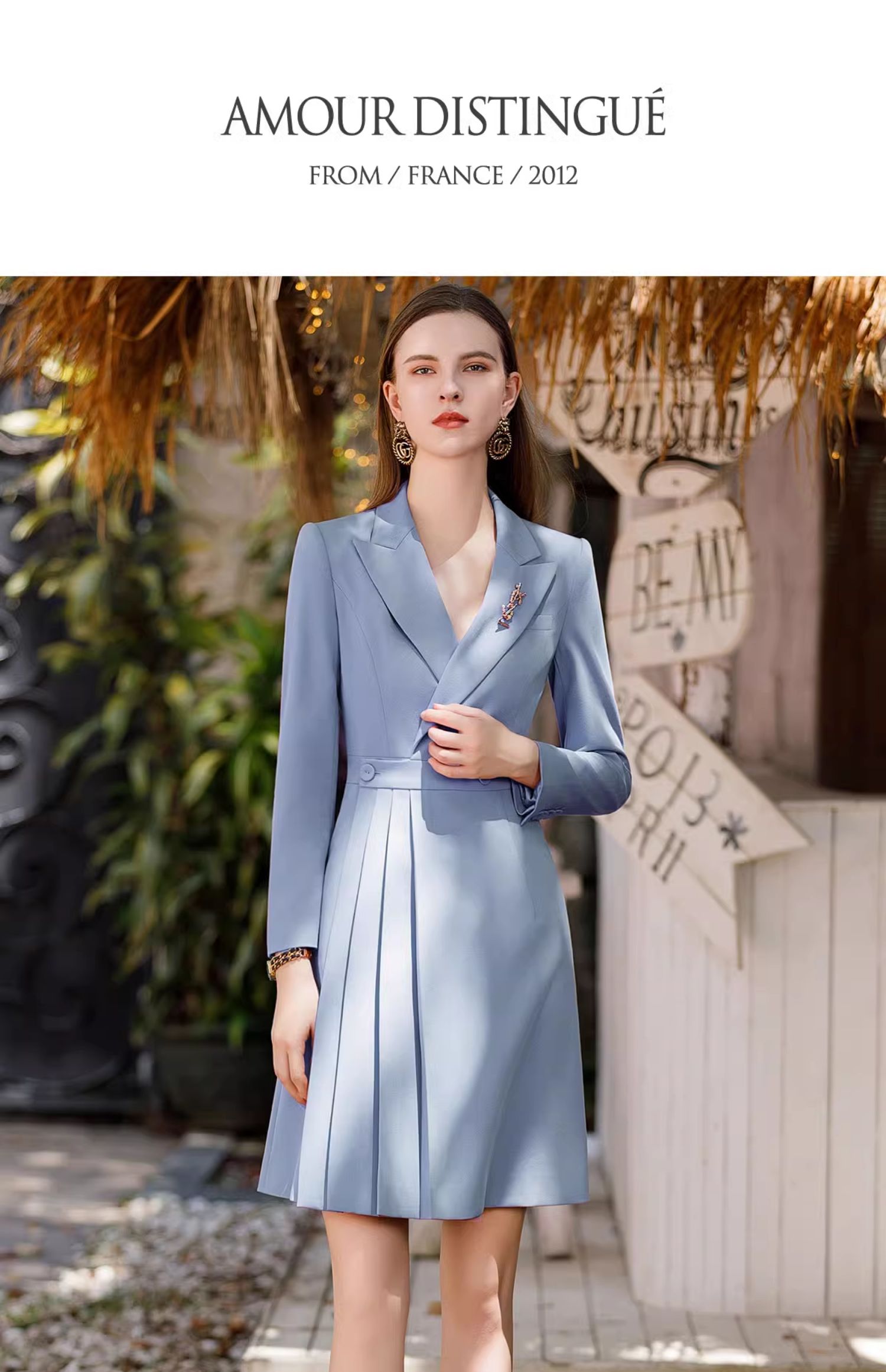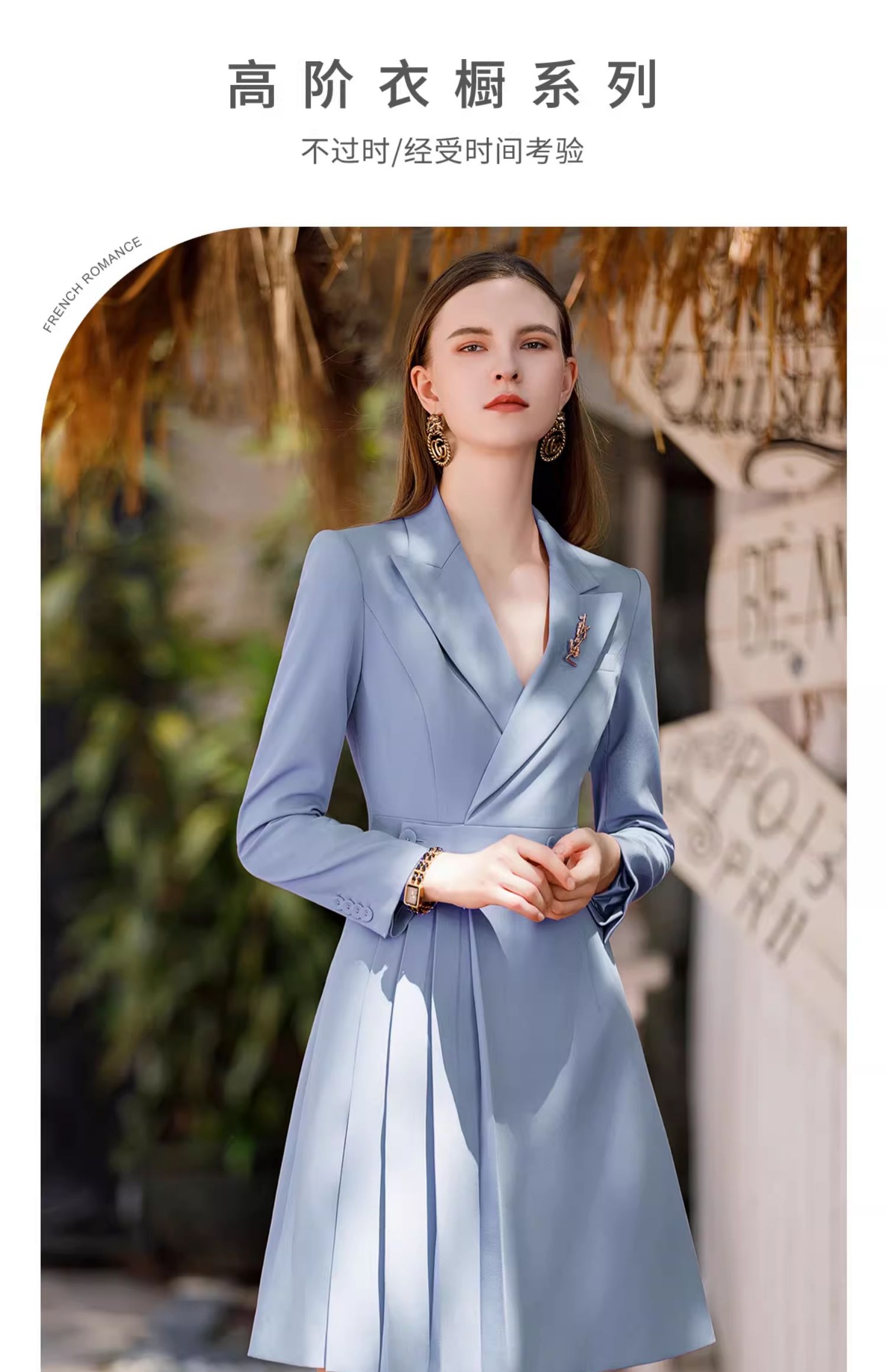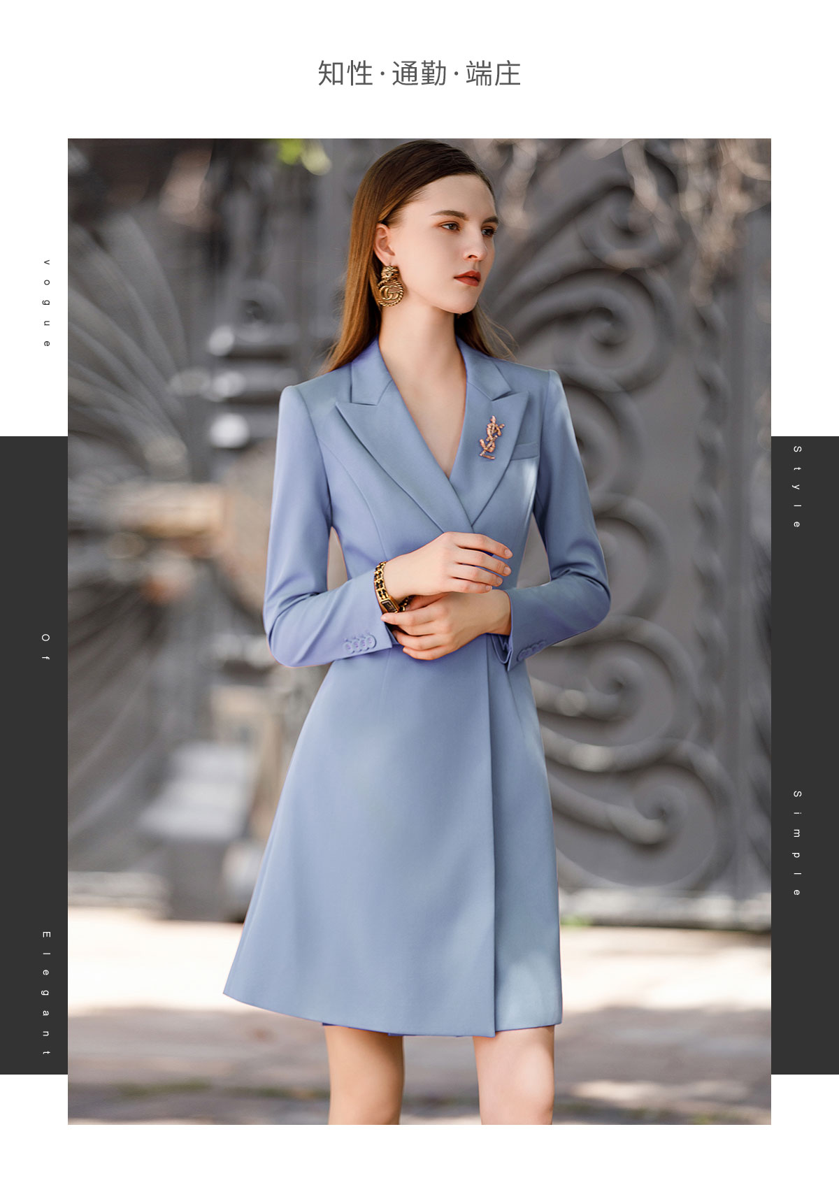 IWY/高端气质蓝色连衣裙西装裙子女春夏新款显瘦主持人上镜职业裙Q1021