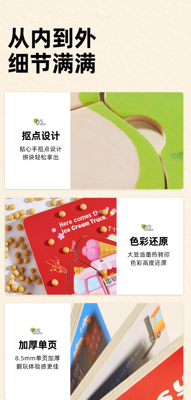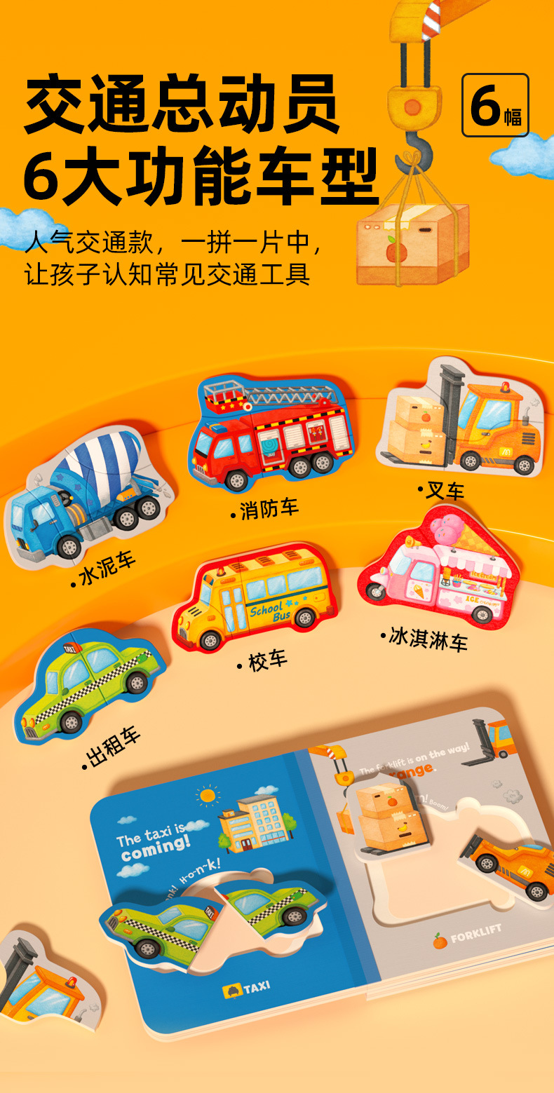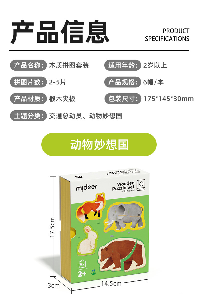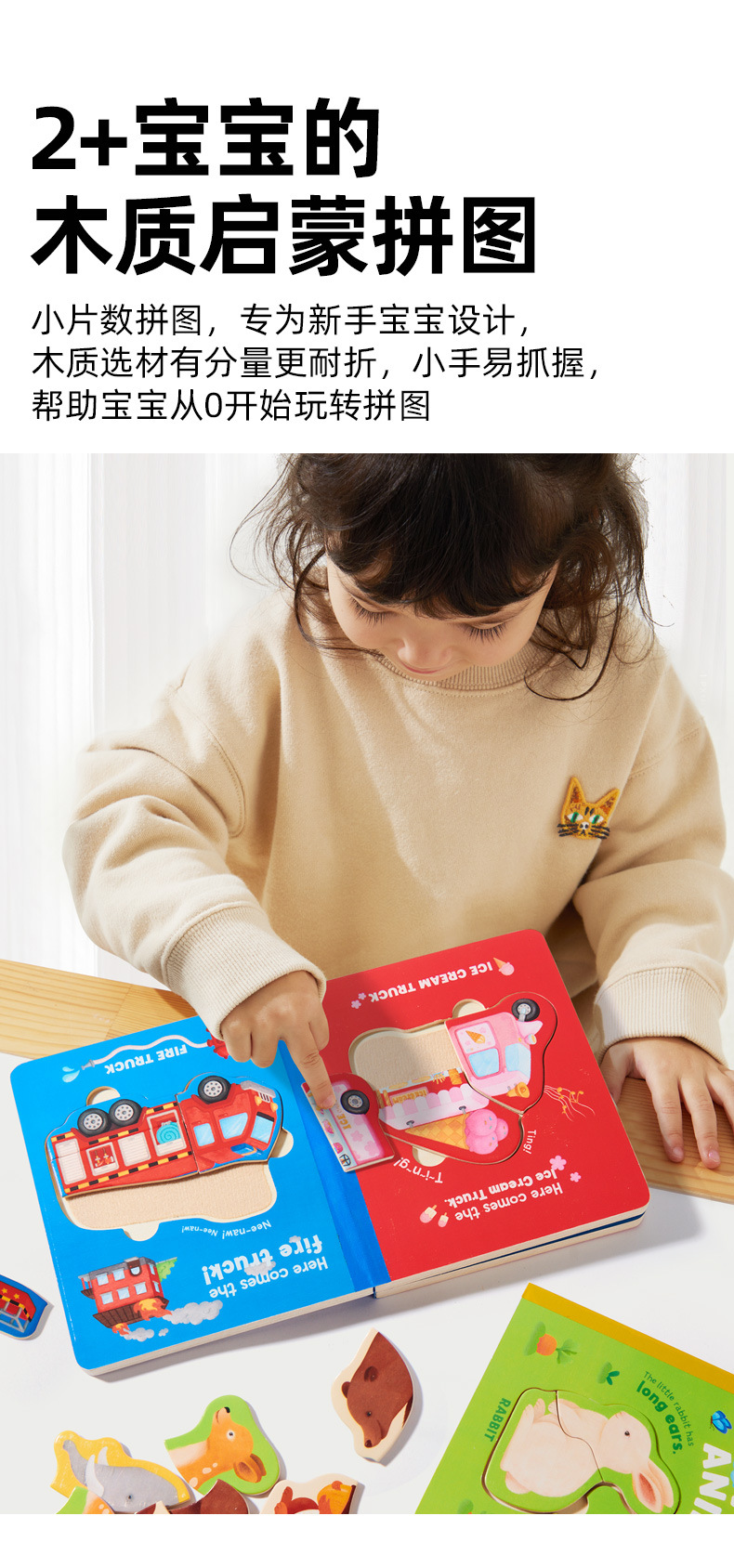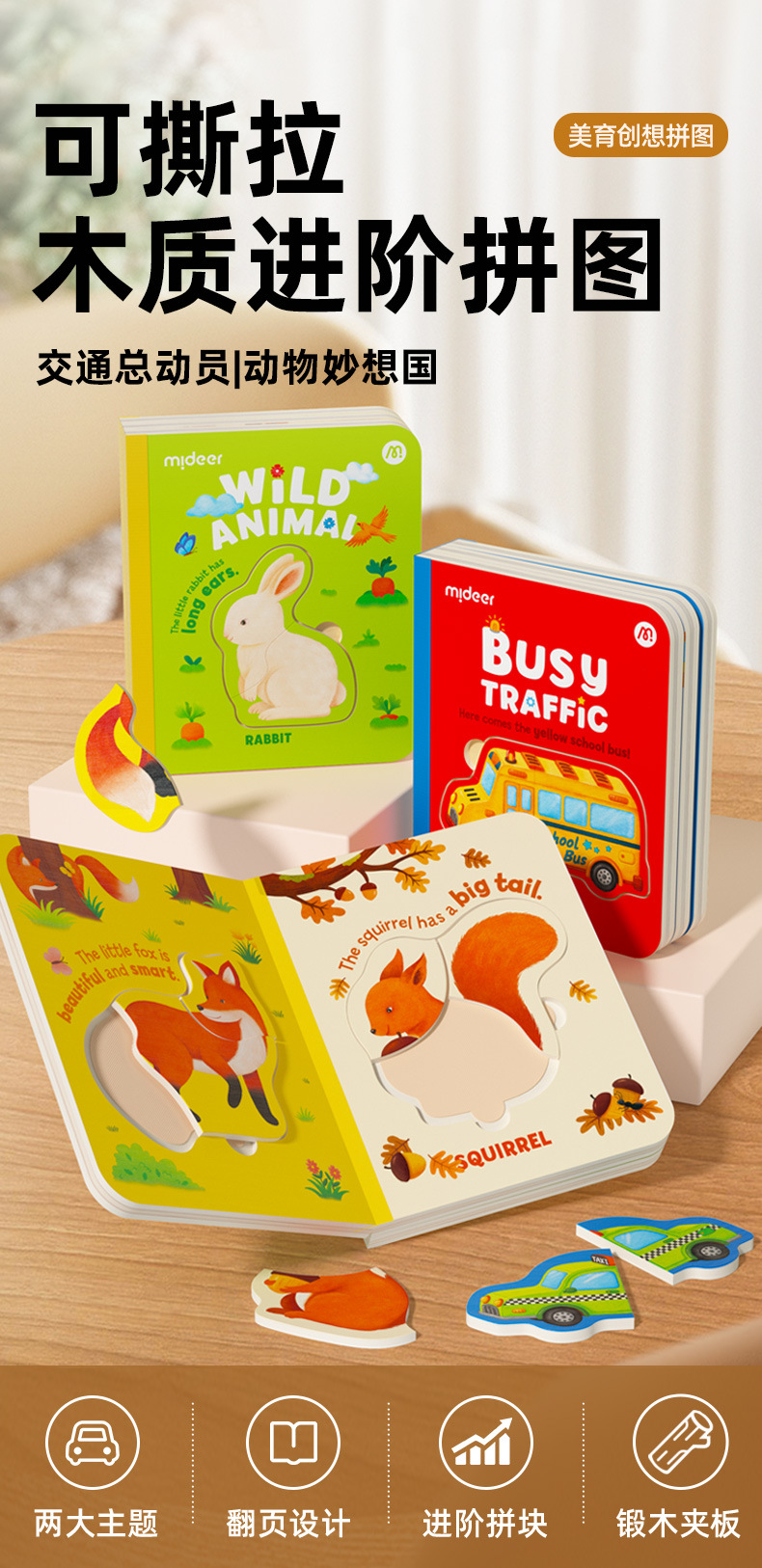 mideer弥鹿儿童拼图书木质早教平图交通动物认知男女孩益智玩具