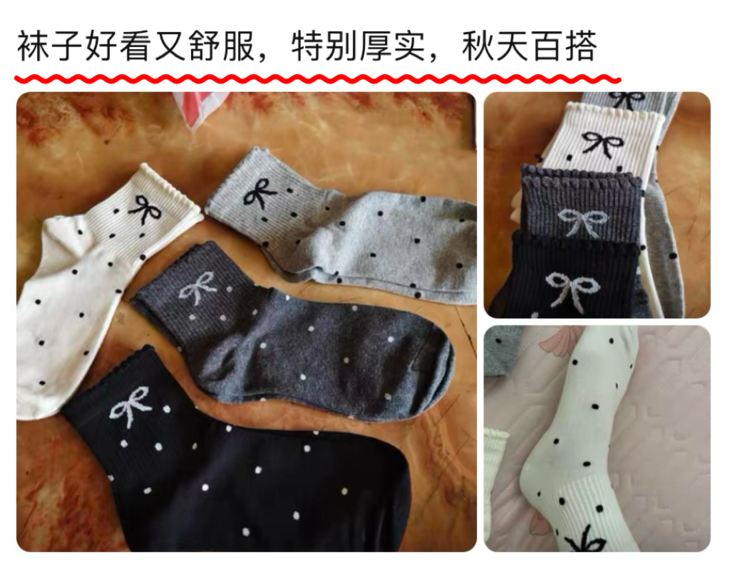 妈呀,终于找到适合秋天的袜子啦~ 波点花边蝴蝶结秋冬新款袜子🧦 ins日系网红中筒袜,超级舒服 秋天必备单品你准备好了吗😁😁