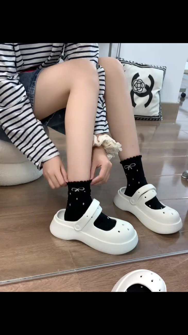 啊啊啊谁懂!好少女的波点蝴蝶结🎀袜袜! 好米|||波点➕蝴蝶结➕泡泡花边 太!太!太少女感啦! 今年的两个爆火元素结合!尊嘟太“米”了~ 袜身带网眼!好穿透气不闷热💭 出游穿它拍照绝! 搭配勃肯,芭蕾风鞋都好好看!