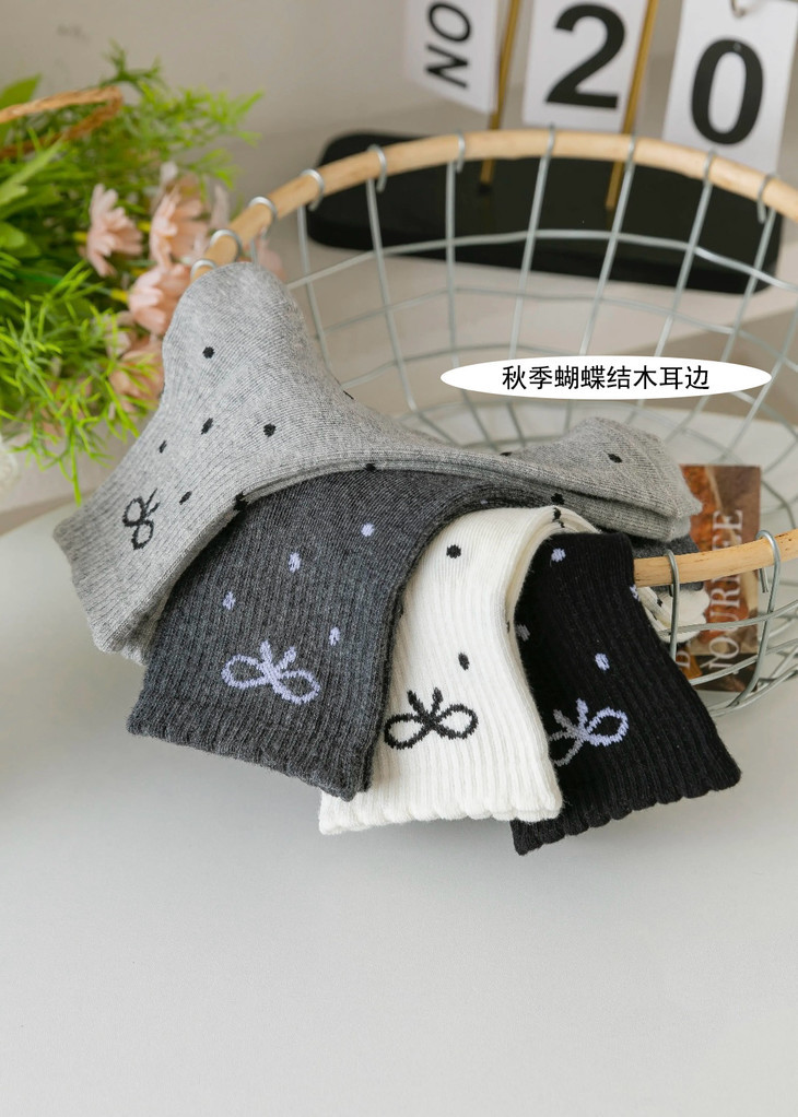 🧦秋上新🔥16.9元到手8双💥这袜子也太好看了💗上脚惊艳!【木耳边蝴蝶结波点袜】🔥 ✅配色很高级 ✅上脚软软呼呼,好喜欢🧦