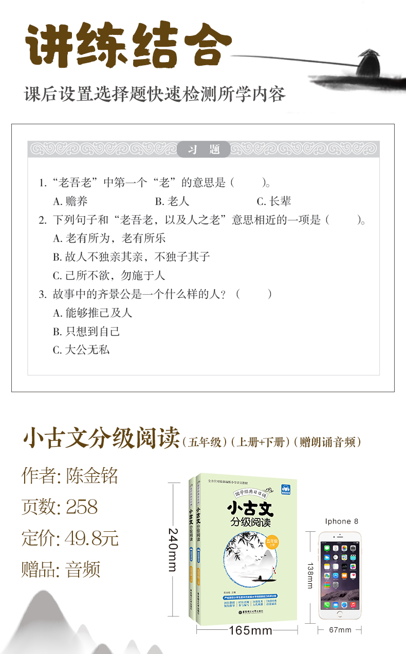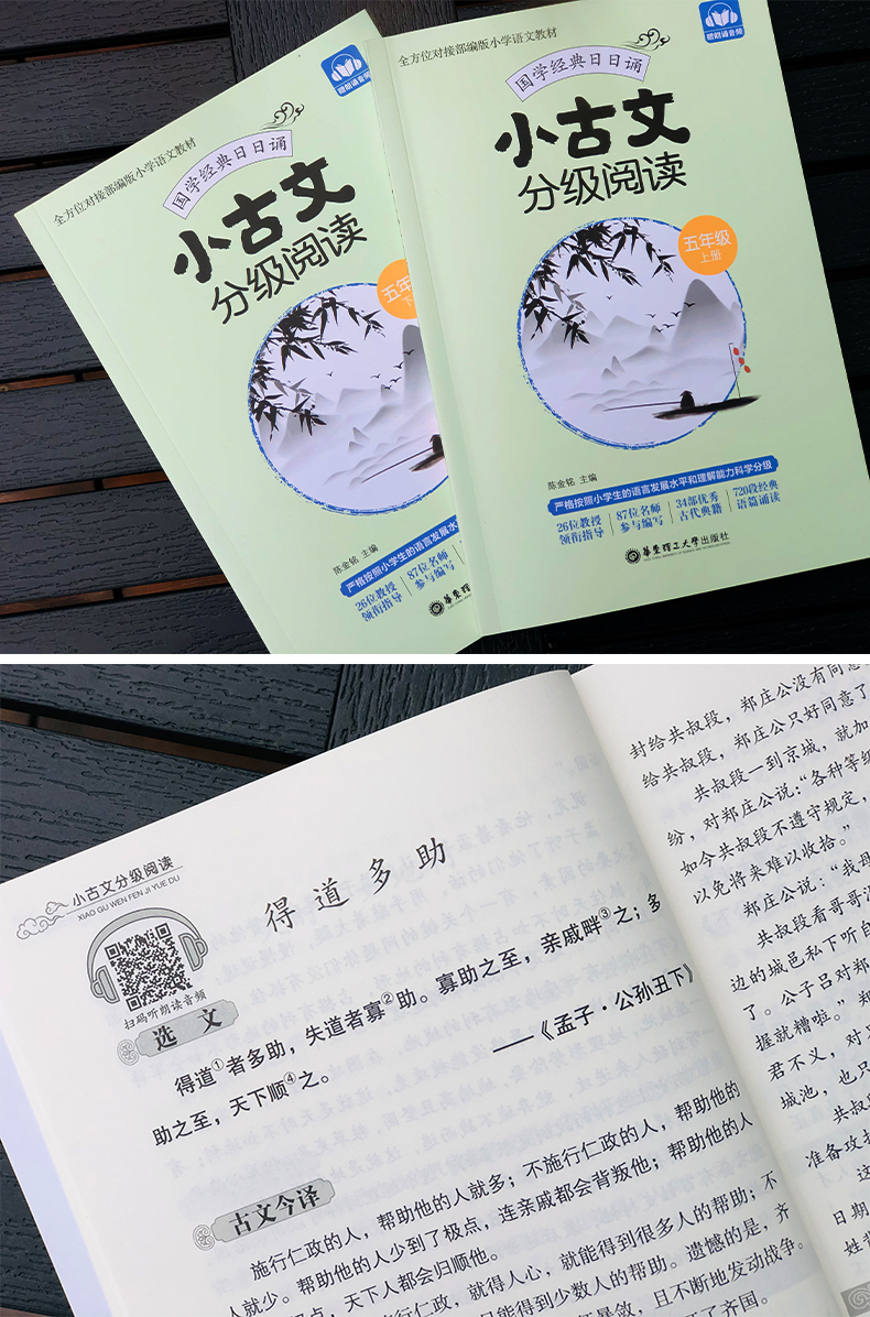 小古文分级阅读 五年级/5年级 上下册 国学经典日日诵(赠朗诵音频)陈金铭主编 五年级古文专项训练 华东理工大学出版社