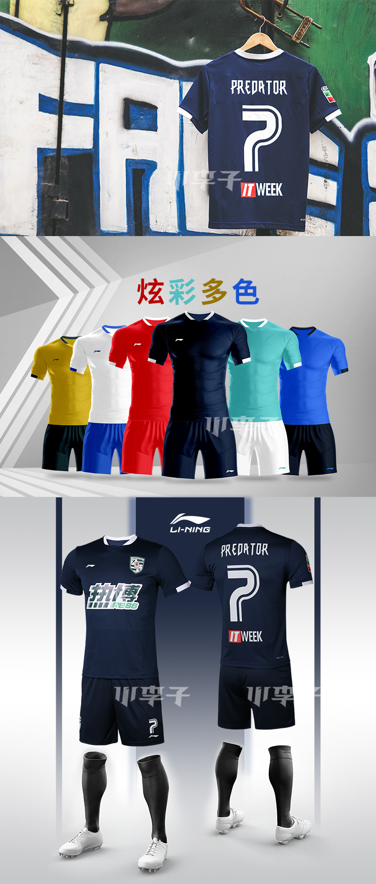 小李子:专柜正品Lining/李宁青少年短袖足球比赛训练套装 AATN042
