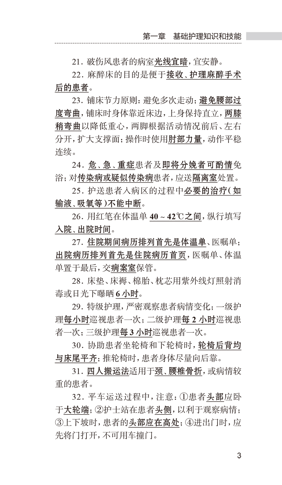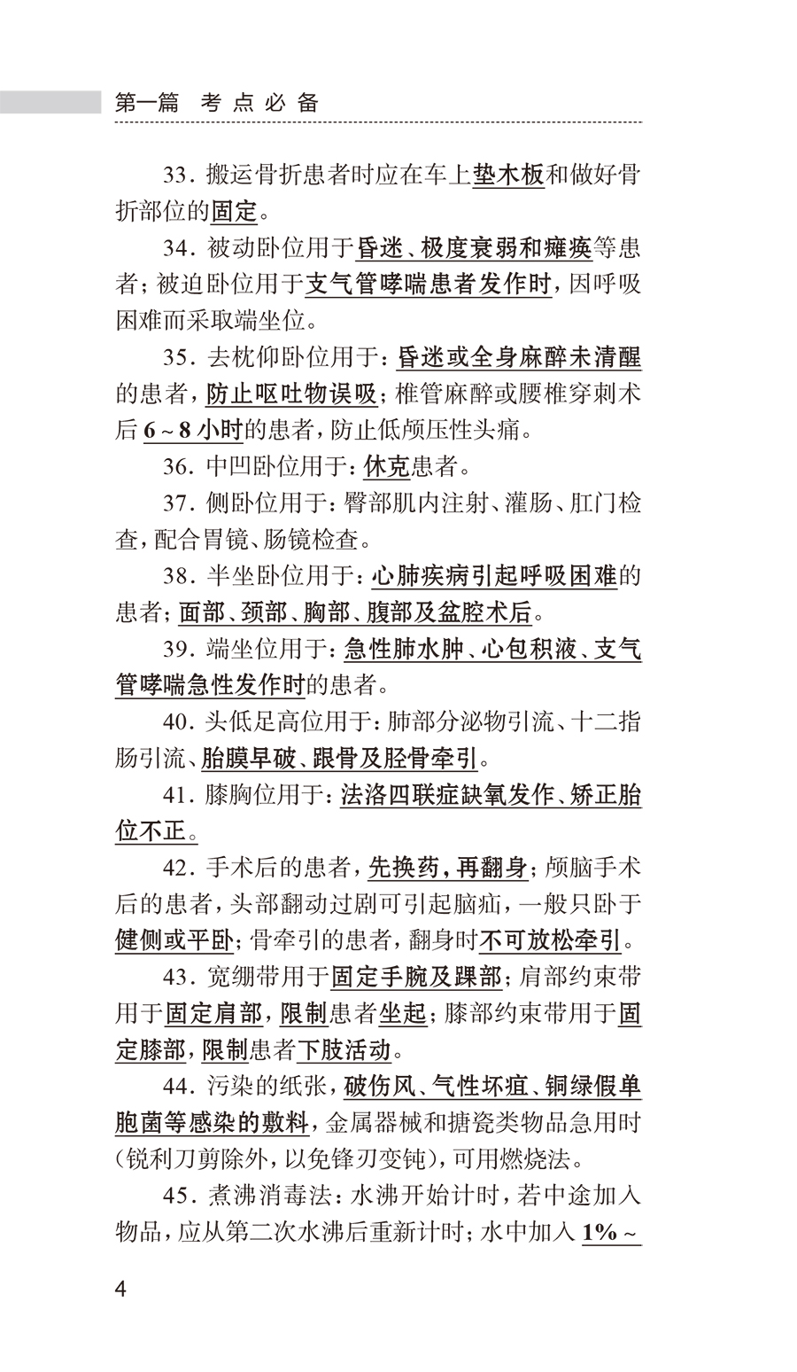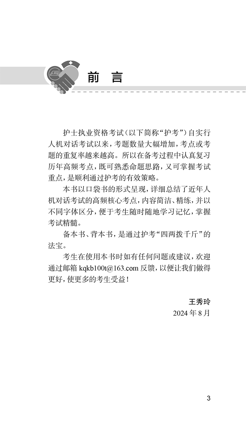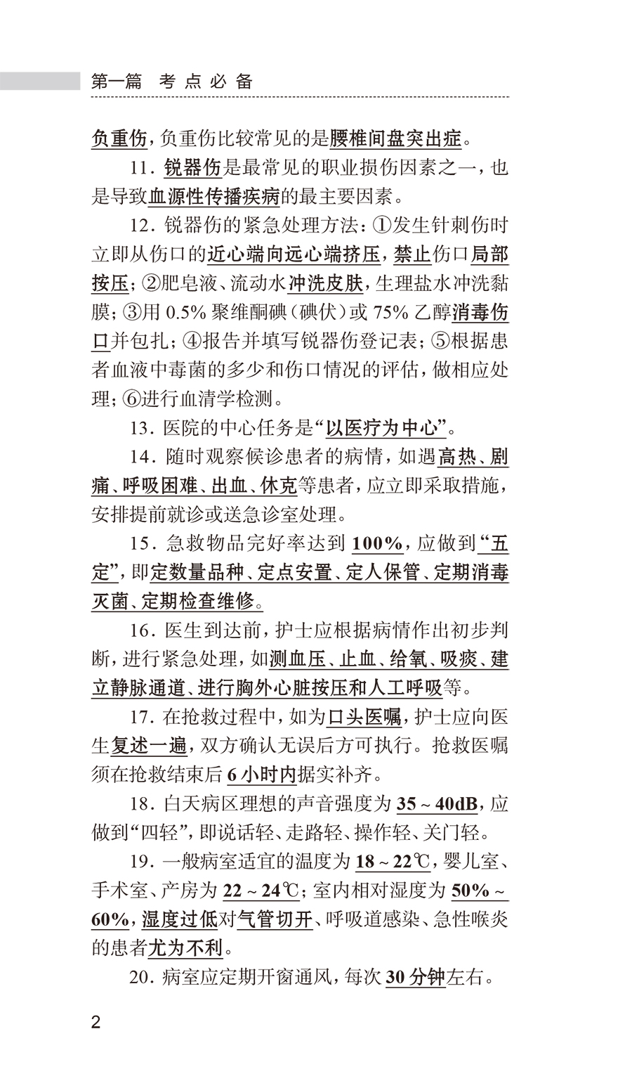 第一篇 考 点 必 备 第一章 基础护理知识和技能/1 第二章 循环系统疾病患者的护理/23 第三章 消化系统疾病患者的护理/32 第四章 呼吸系统疾病患者的护理/43 第五章 传染病患者的护理/49 第六章 皮肤及皮下组织疾病患者的护理/54 第七章 妊娠分娩和产褥期疾病患者的护理/56 第八章 新生儿和新生儿疾病的护理/67 第九章 泌尿生殖系统疾病患者的护理/70 第十章 精神障碍患者的护理/79 第十一章 损伤、中毒患者的护理 /86 第十二章 肌肉骨骼系统和结缔组织疾病患者的护理/92 第十三章 肿瘤患者的护理/96 第十四章 血液、造血器官及免疫疾病患者的护理/103 第十五章 内分泌、营养及代谢性疾病患者的护理/108 第十六章 神经系统疾病患者的护理/ 115 第十七章 生命发展保健/120 第十八章 中医基础知识/124 第十九章 法规与护理管理/125 第二十章 护理伦理/130 第二十一章 人际沟通/132 第二篇 考 点 速 记 第一章 关键词速记/135 一、 “ 首字”考点 /135 二、 “ 最字”考点 /140 三、 “ 病原体”考点 /151 四、 “ 典型”考点 /153 五、 “ 特征性”考点 /156 六、 “ 否定”考点 /158 七、 “ 数字”考点 /160 八、 “ 穿刺引流”考点 /174 第二章 诊断公式速记/179 一、 循环系统疾病患者的护理 /179 二、 消化系统疾病患者的护理 /181 三、 呼吸系统疾病患者的护理 /183 四、 传染病患者的护理 /184 五、 皮肤及皮下组织疾病患者的护理 /185 六、 妊娠、分娩和产褥期疾病患者的护理 /185 七、 新生儿和新生儿疾病的护理 /186 八、 泌尿生殖系统疾病患者的护理 /186 九、 精神障碍患者的护理 /188 十、 损伤、中毒患者的护理 /188 十一、 肌肉骨骼系统和结缔组织疾病患者的护理 /189 十二、 肿瘤患者的护理 /190 十三、 血液、造血器官及免疫疾病患者的护理 /191 十四、 内分泌、营养及代谢疾病患者的护理 /192 十五、 神经系统疾病患者的护理 /193 第三章 对比速记/195 第四章 结构图速记/ 211 第五章 饮食及体位护理速记/225 第六章 温度及浓度速记/227 第七章 用药护理速记/229 第八章 疾病要点速记/243