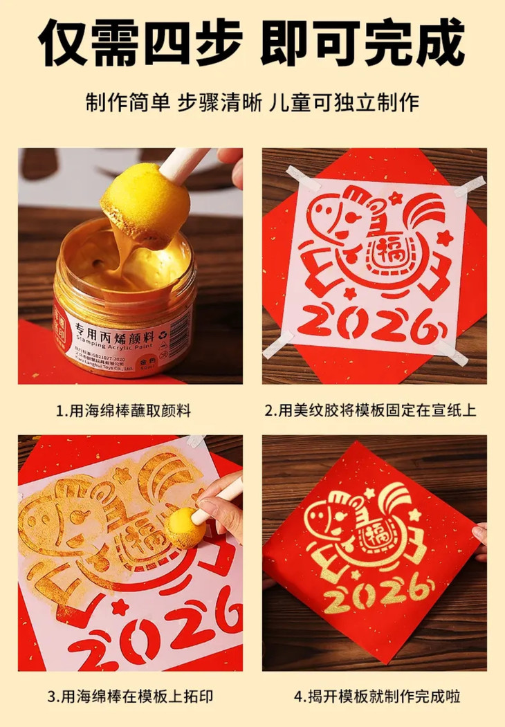 ✅模板不脆弱,漏印方便效果好 ✅可水洗可反复使用可长期保存。 ✅操作简单、严丝合缝!成就感爆棚让大朋友省心,小朋友开心! ✅ 春节宅家不无聊,带娃亲手做年画 🧧全套都很适合春节假期和孩子一起亲手制作 感受传统的春节气氛,成品用来装饰家里的氛围也非常好看