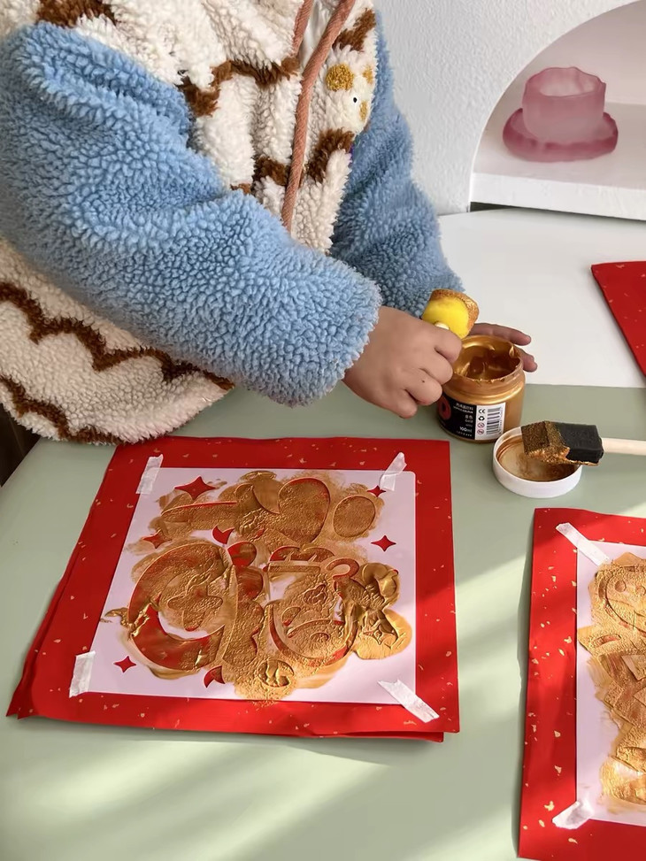 小手拍拍!孩子们玩上瘾的新年拓印游戏 💫 在墨色与金粉流转间 唤醒记忆里最地道的中国年味 每一次拓印,都是与传统美学的温柔重逢 🧧 今年春节,让文化在指尖鲜活起来