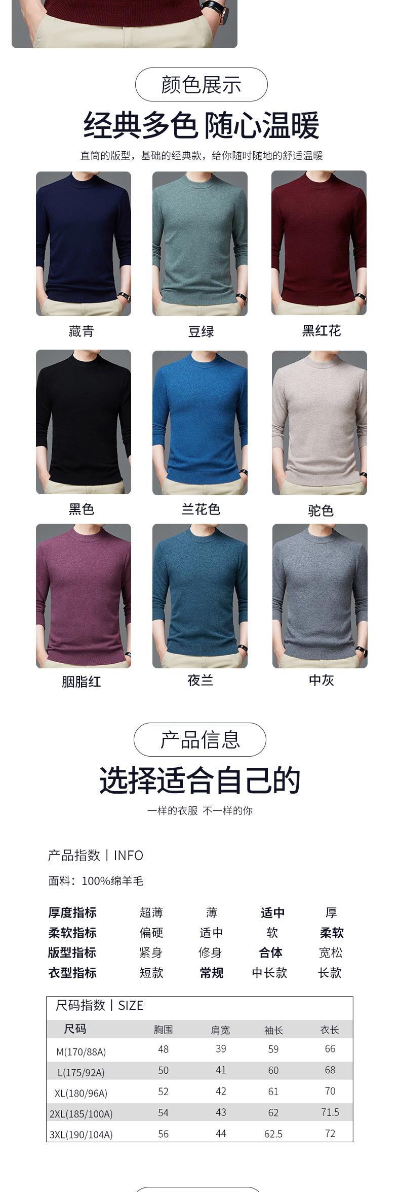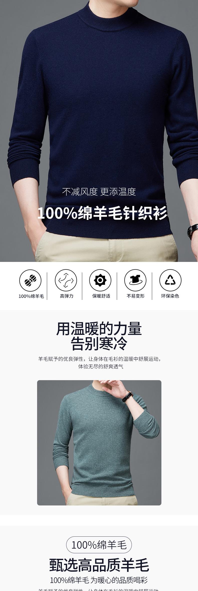 纯羊毛秋冬季男士长袖羊毛衫青年加厚半高领纯绵羊毛男装打底衫