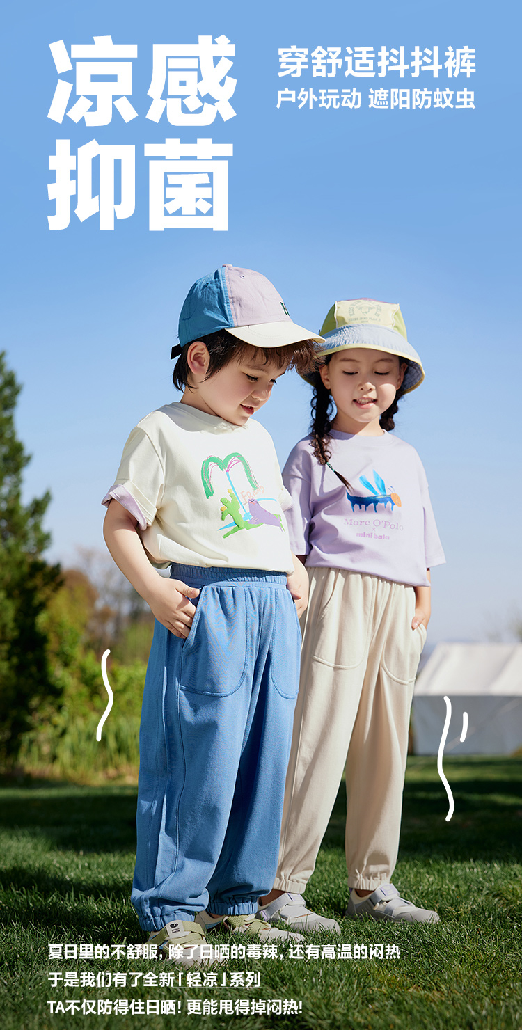 【抖抖裤】迷你巴拉男女童宝宝儿童裤子夏季凉感抗菌长裤