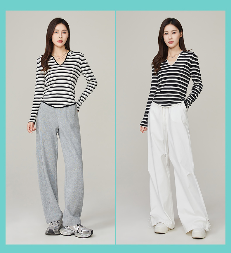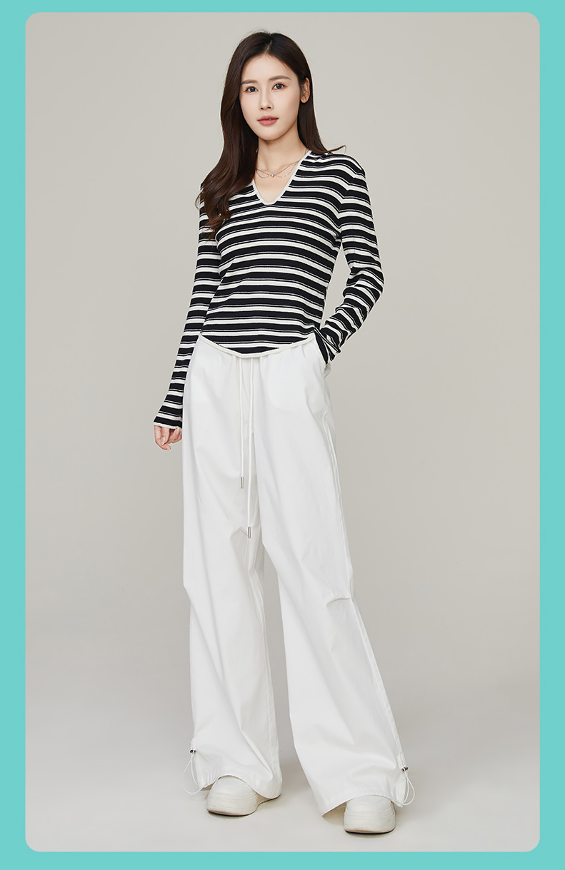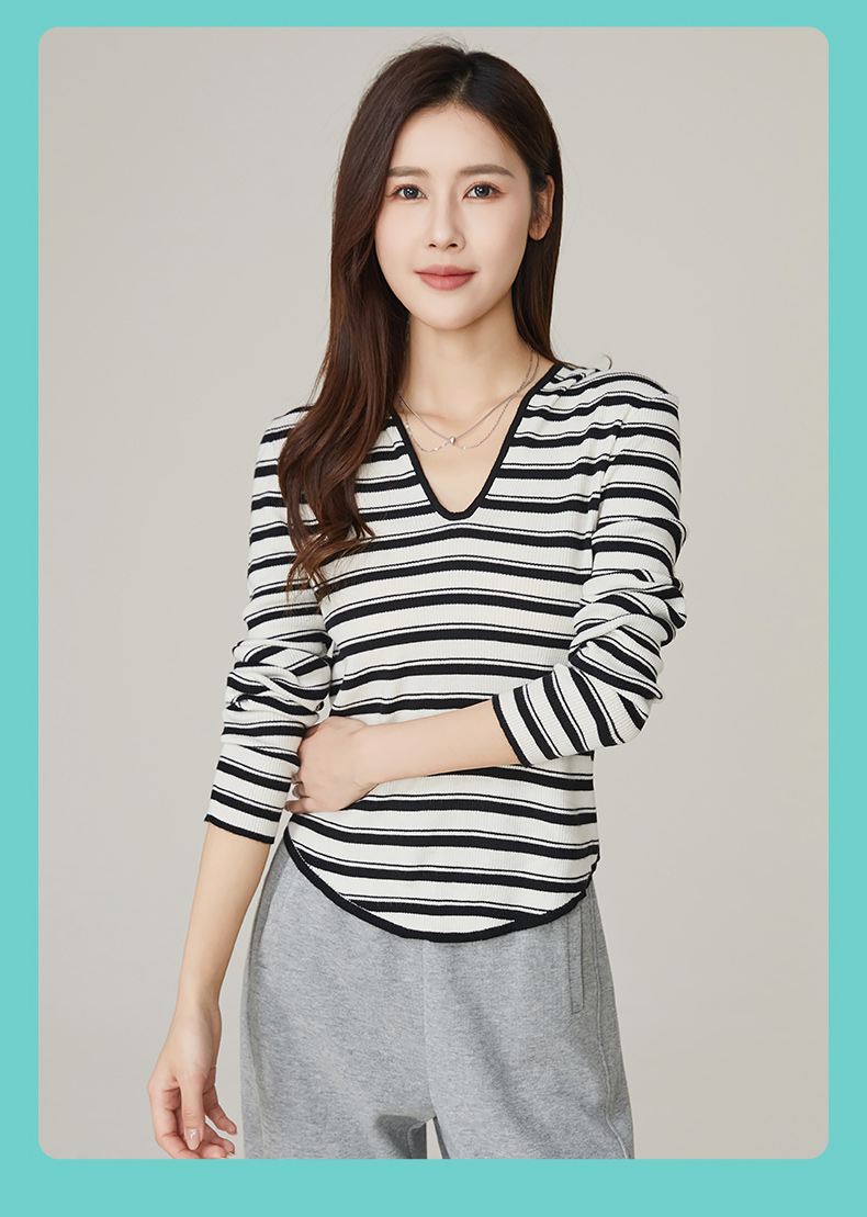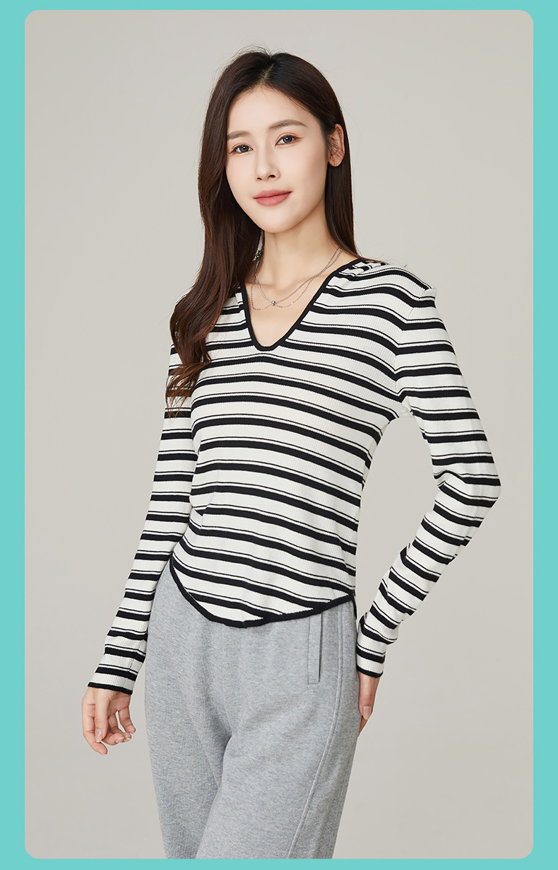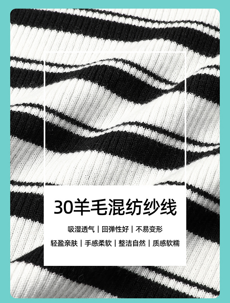 【羊毛条纹帽衫】逸阳秋新品V领连帽针织显瘦软糯长袖上衣5050