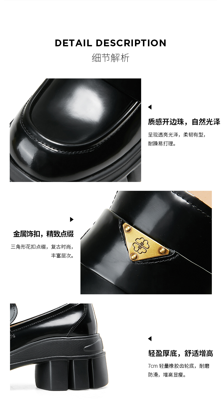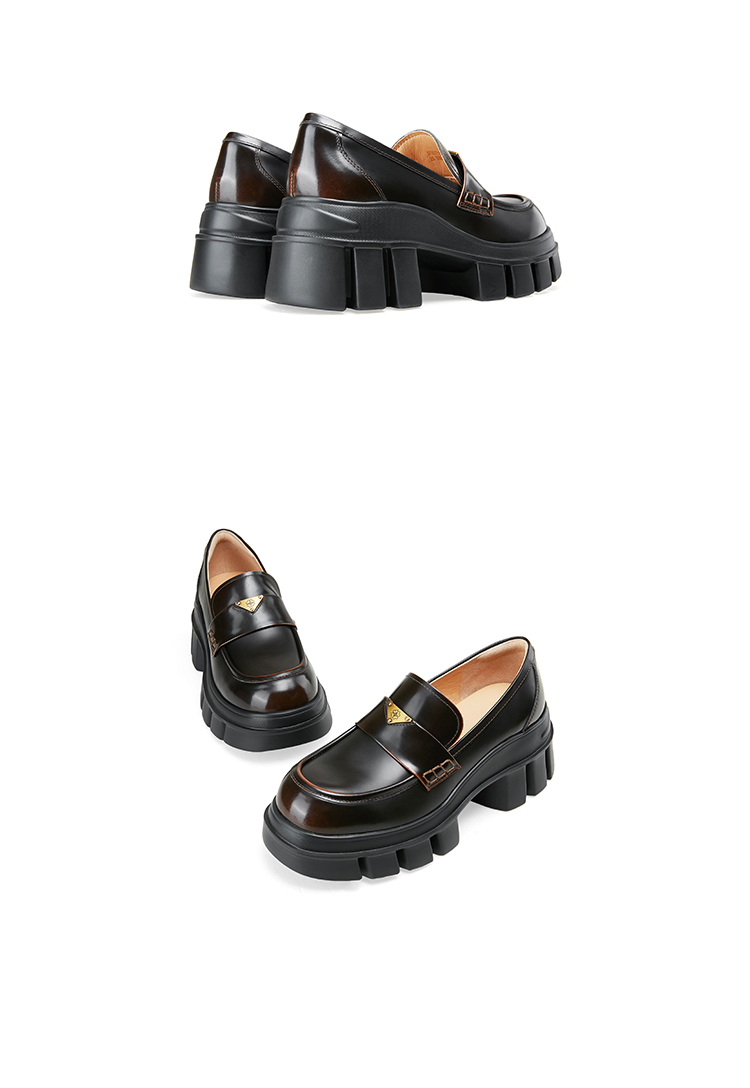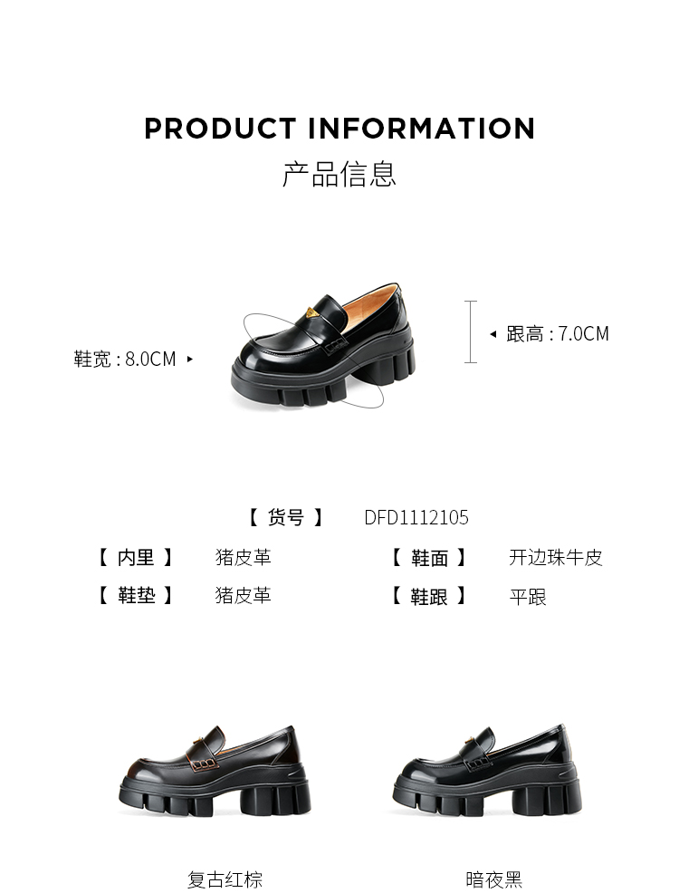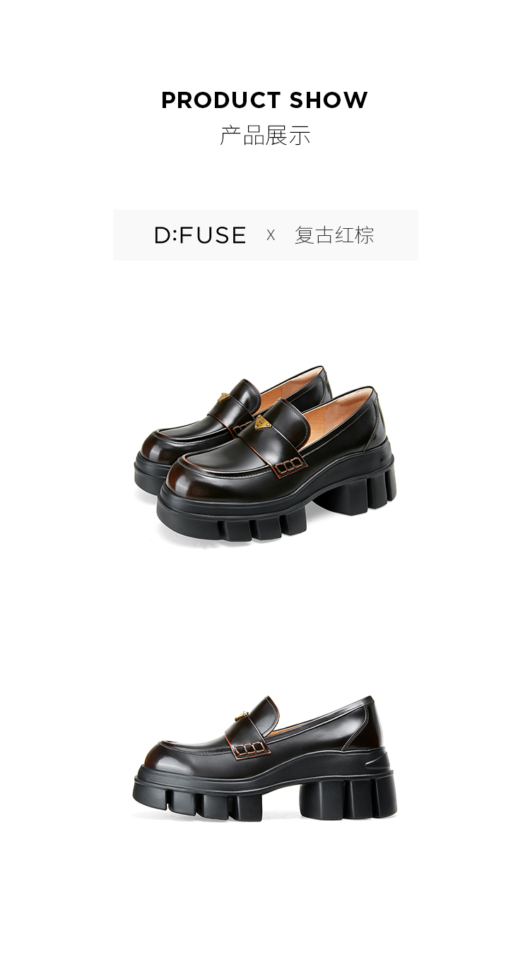 DFuse迪芙斯2025春季新款轻便通勤皮鞋三角标增高厚底乐福鞋DFD1112105