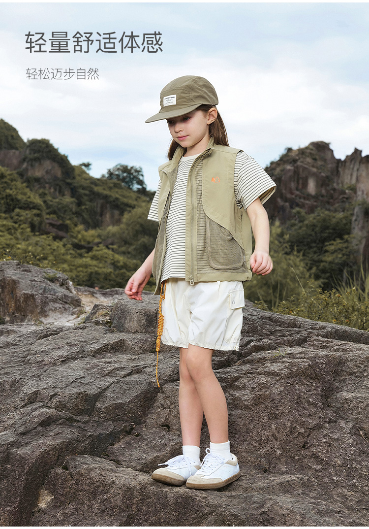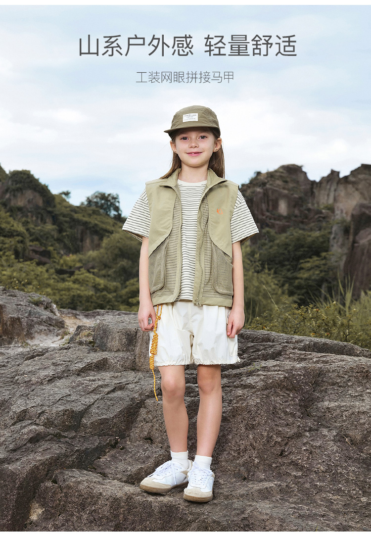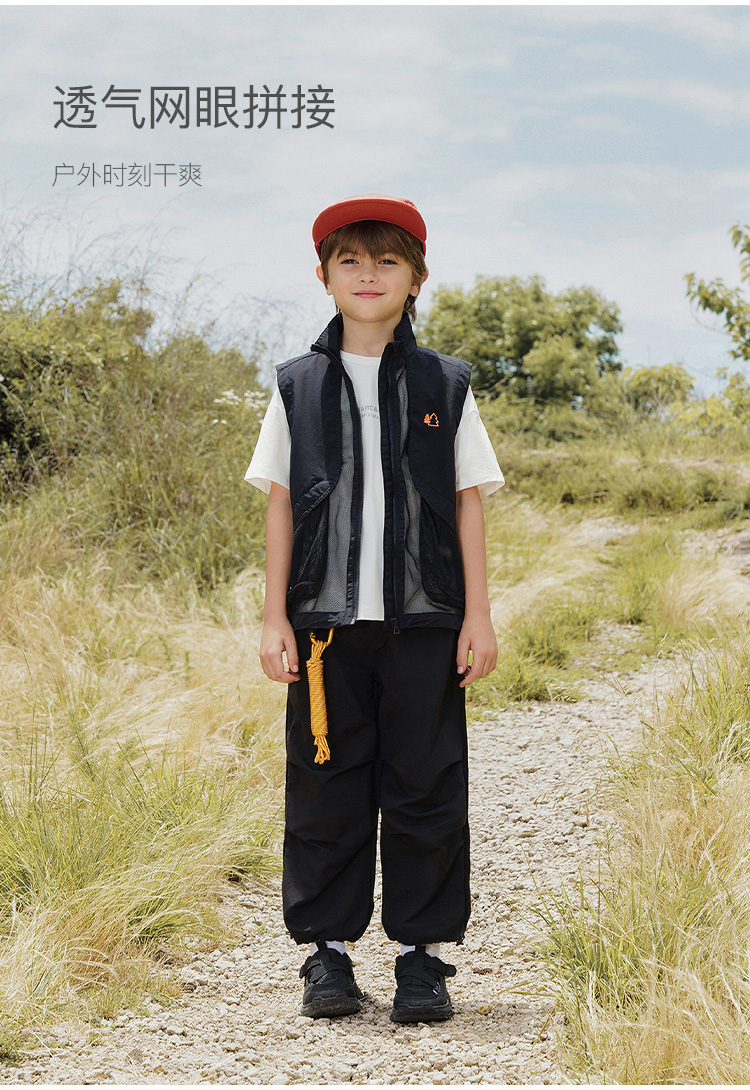 马克珍妮男童城市户外网眼拼接马甲儿童立领上衣春装新款240010