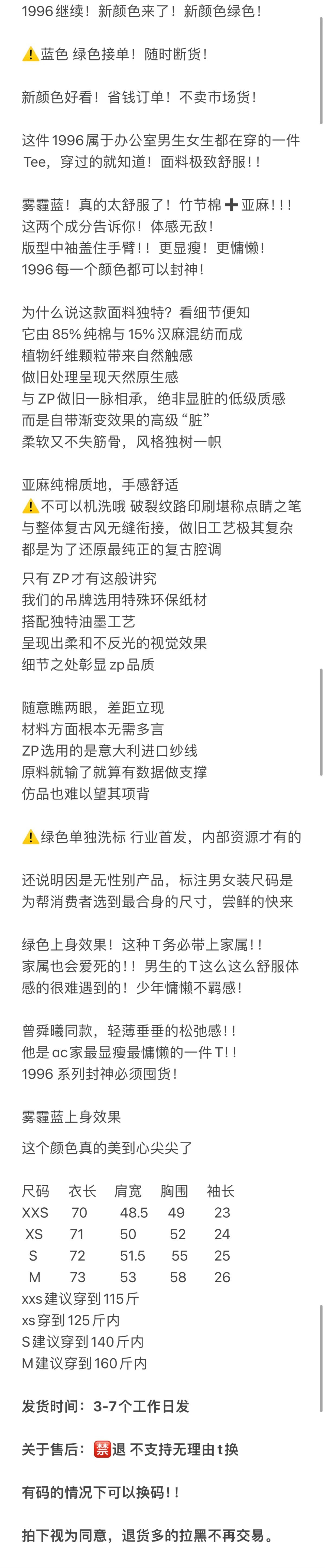 重磅渠道!1996短袖新色!男女同款 AC宽松版型T恤 做旧炒色TEE