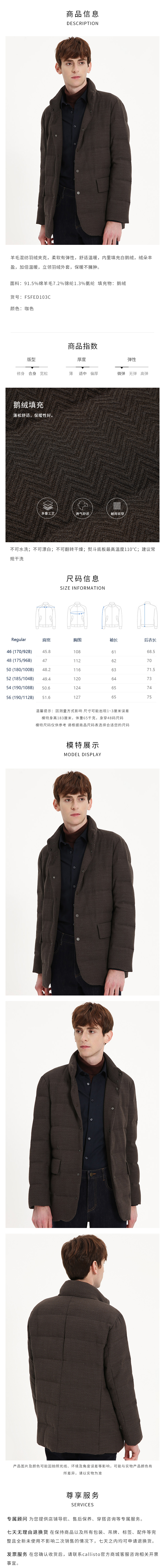 callisto咖色羊毛混纺立领羽绒夹克 FSFED103C