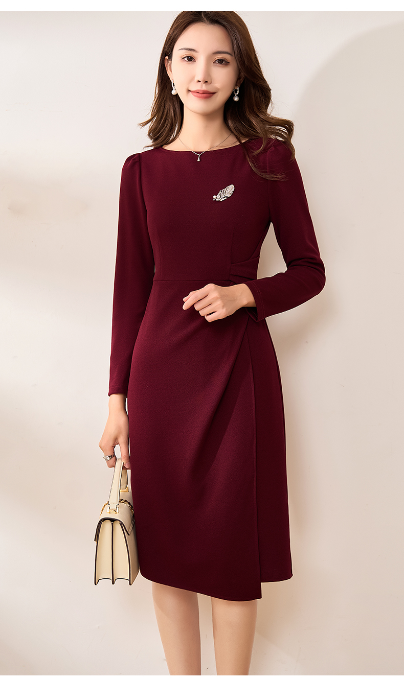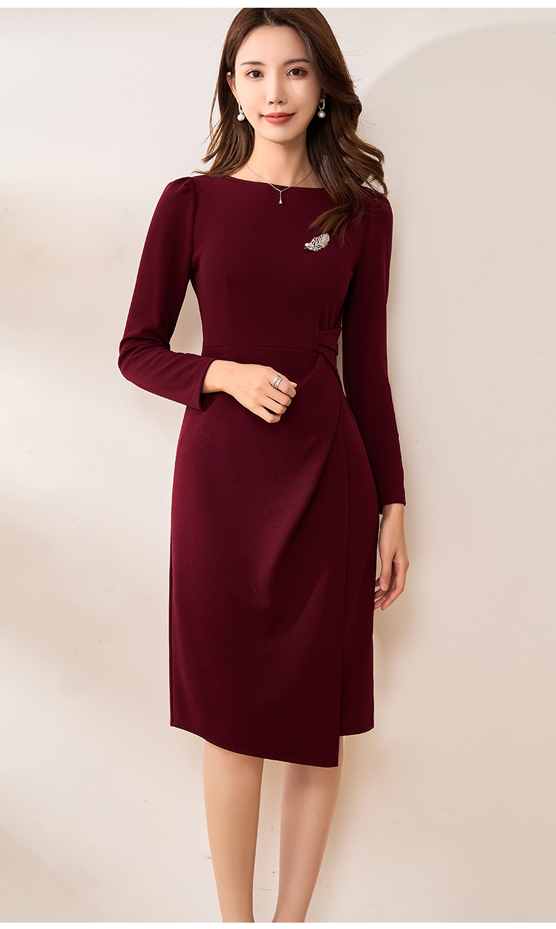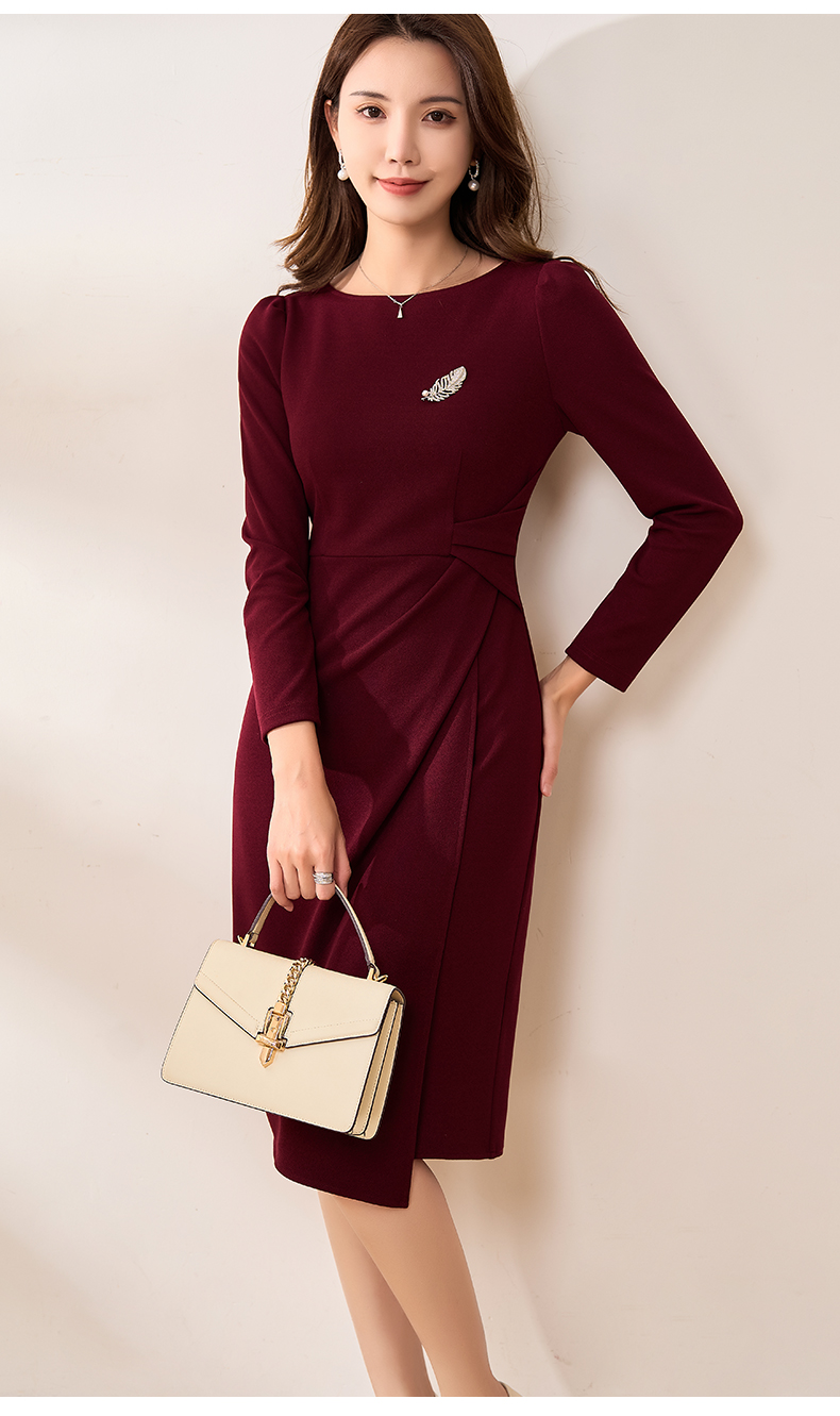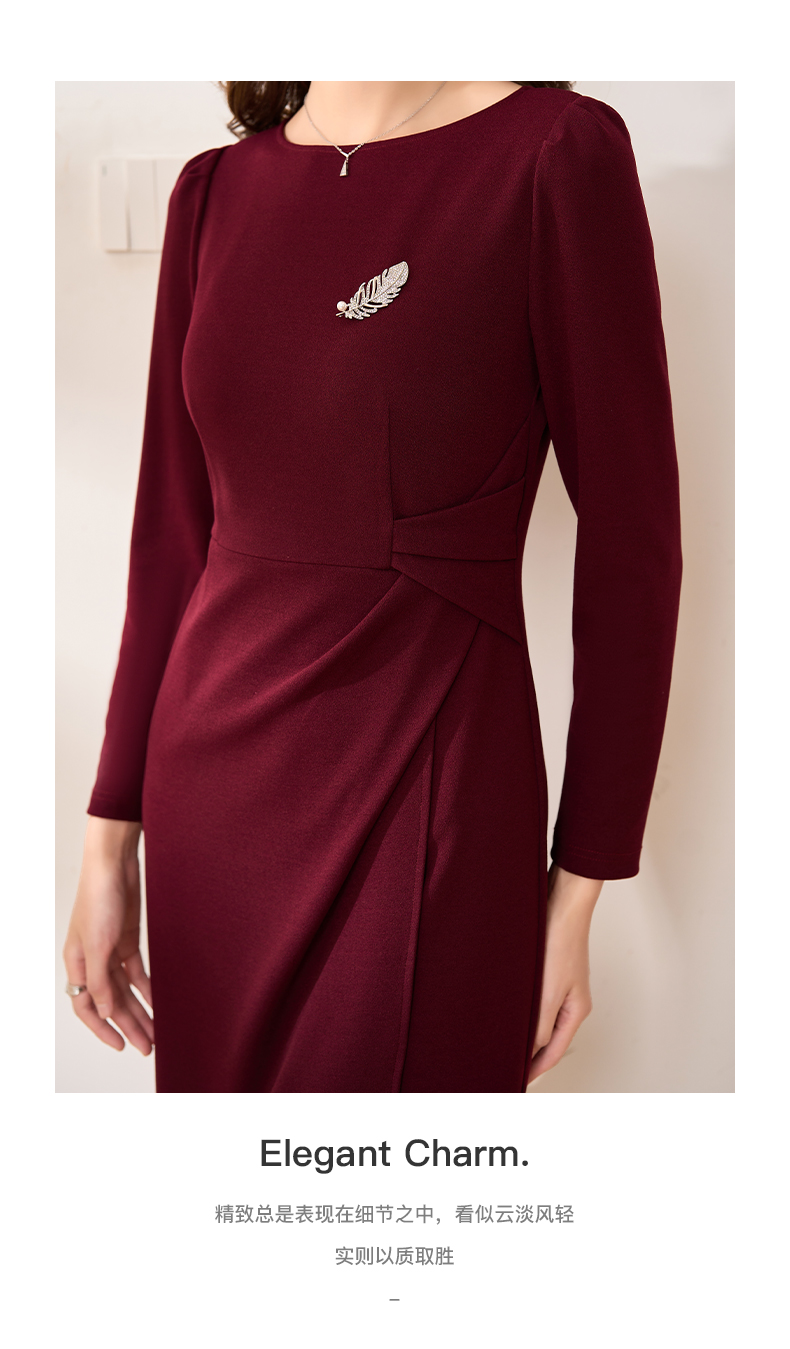 【现货】米思阳2026春季新款优雅气质纯色连衣裙胸针褶皱收腰一步裙女3159