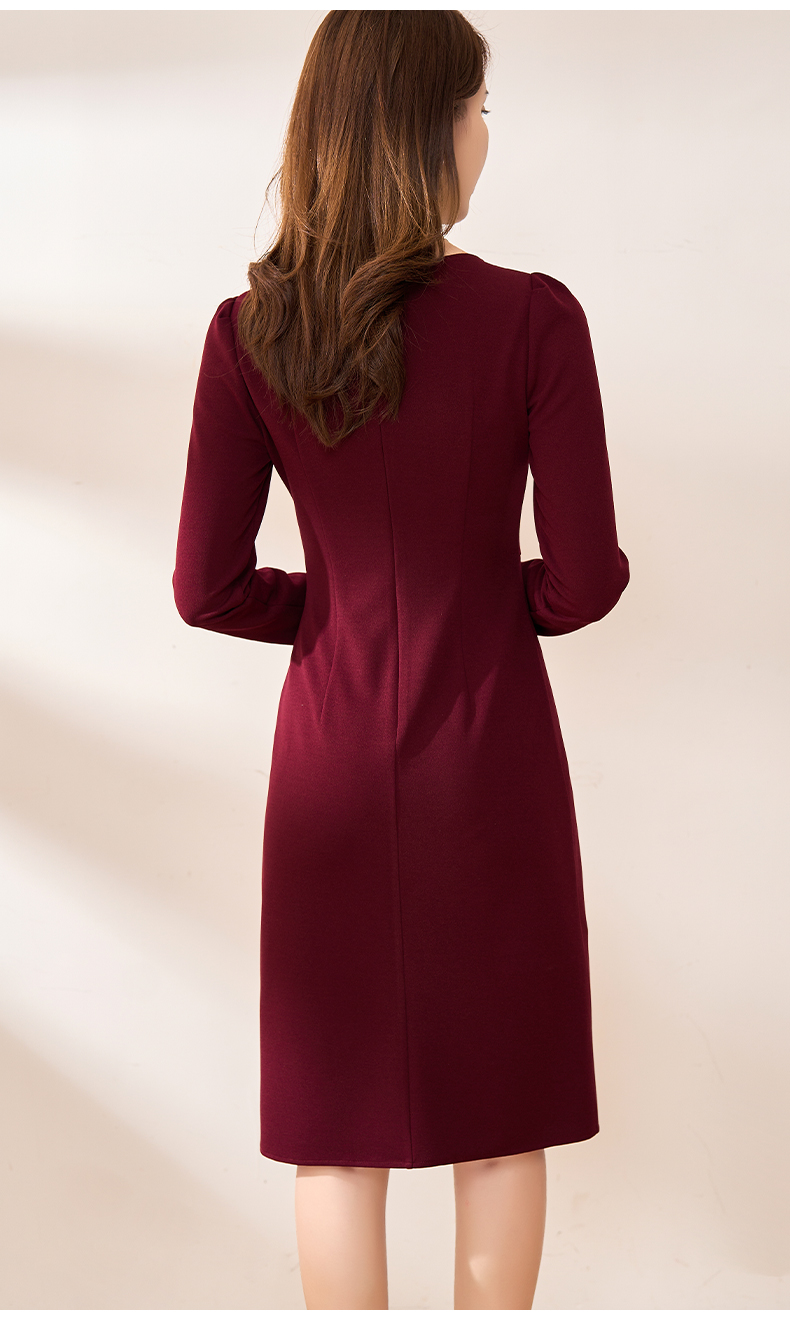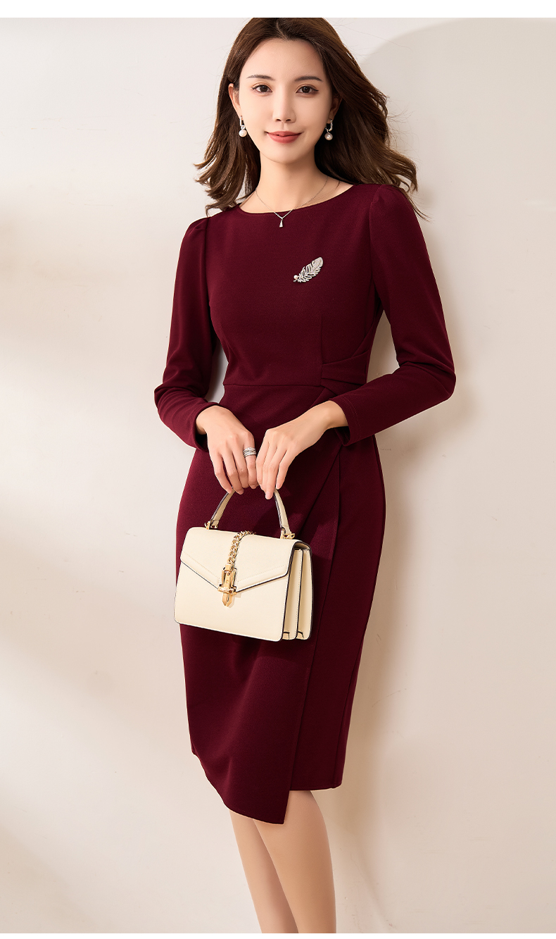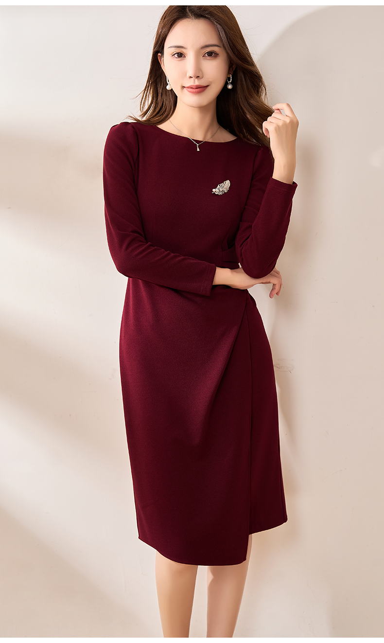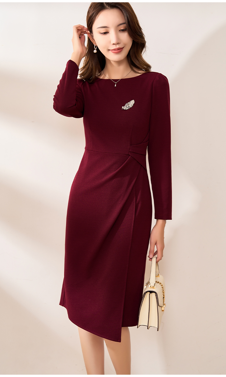【现货】米思阳2026春季新款优雅气质纯色连衣裙胸针褶皱收腰一步裙女3159