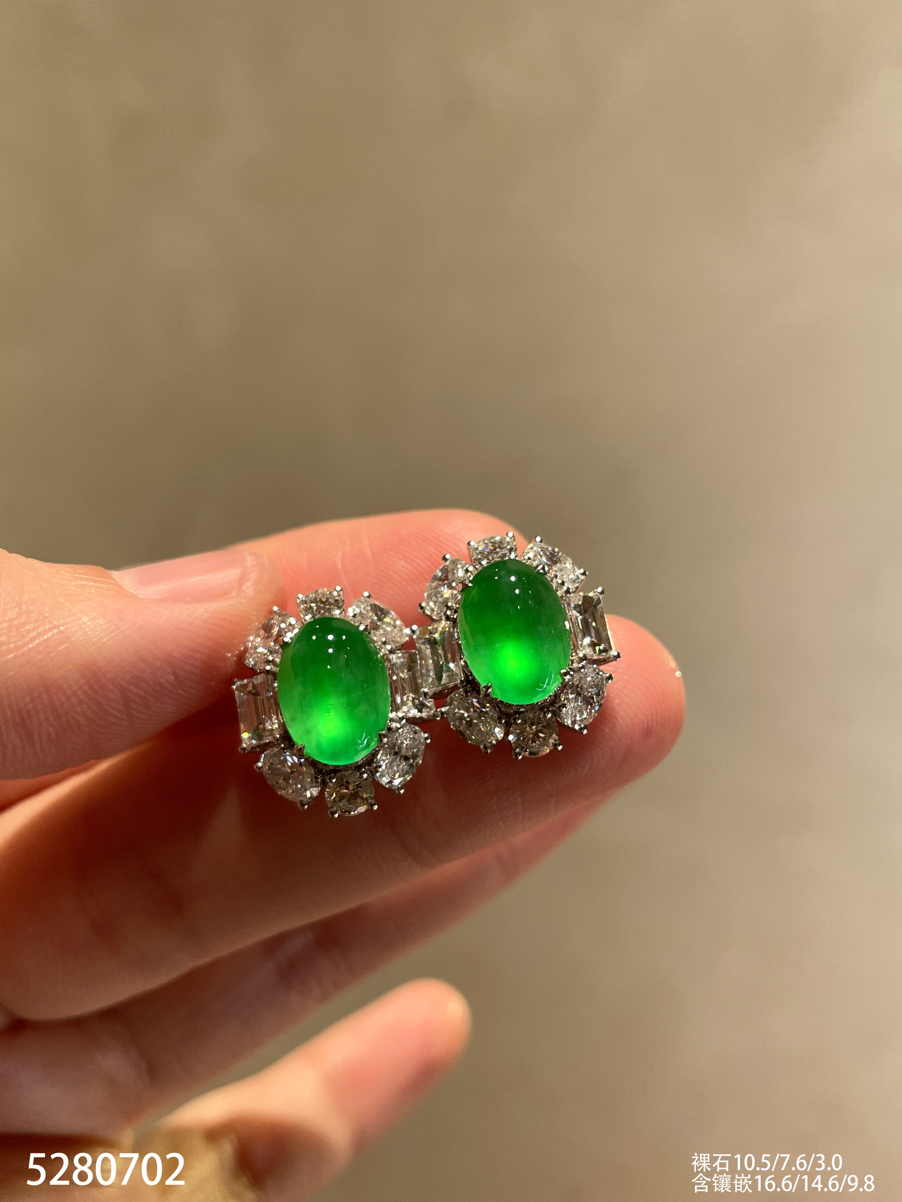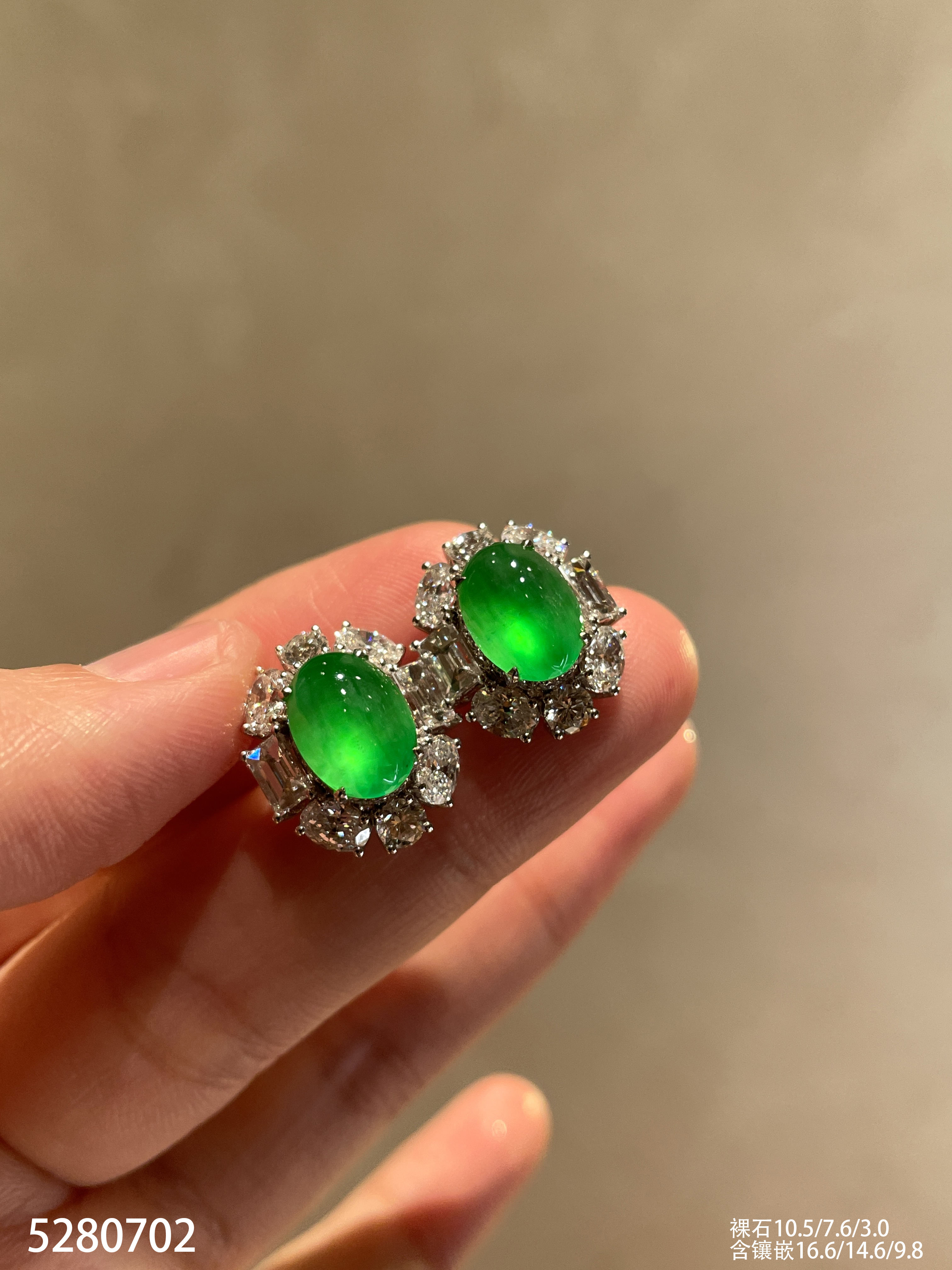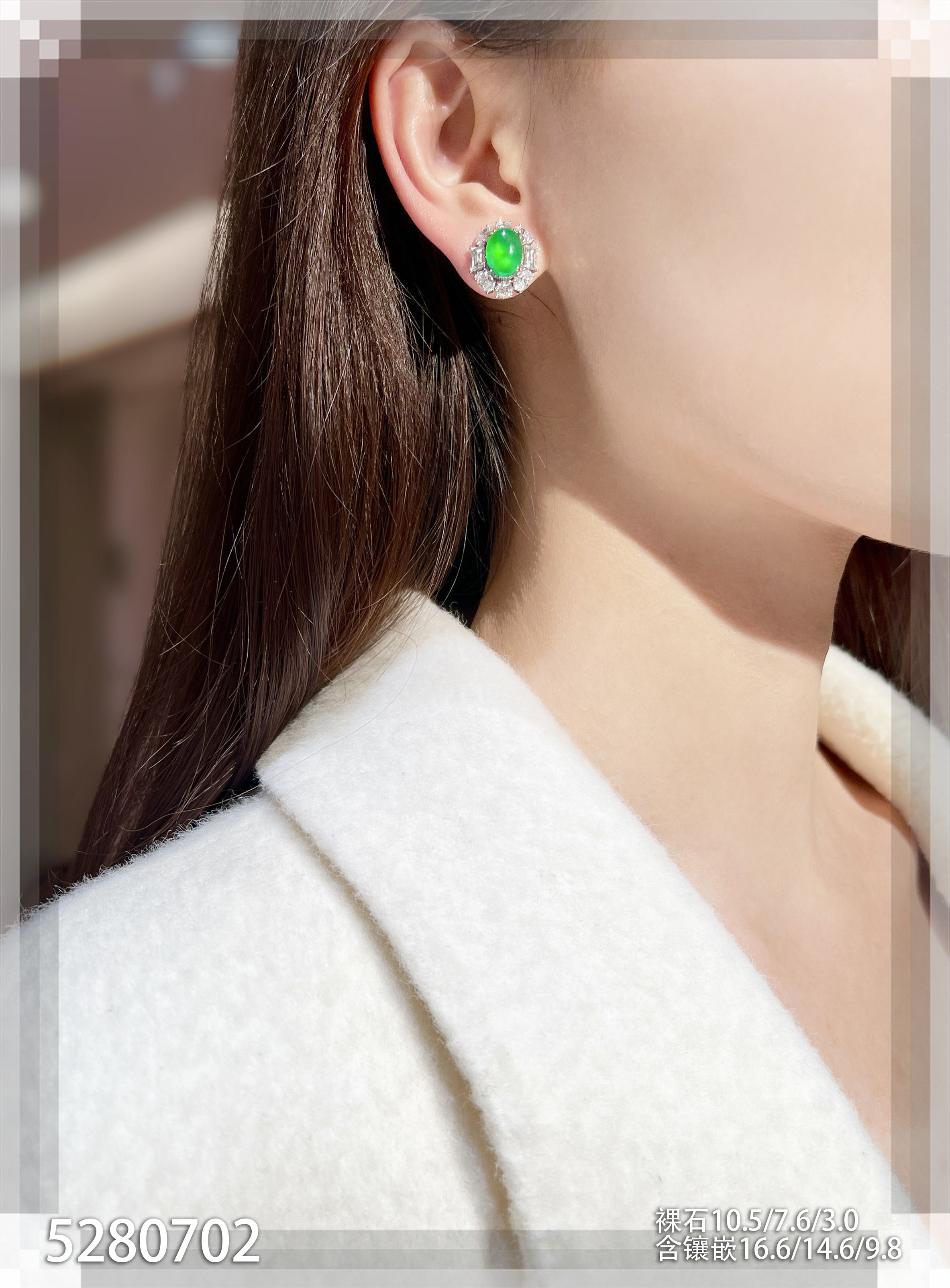 高冰种艳绿蛋面耳钉【6310503】具体价格微信咨询