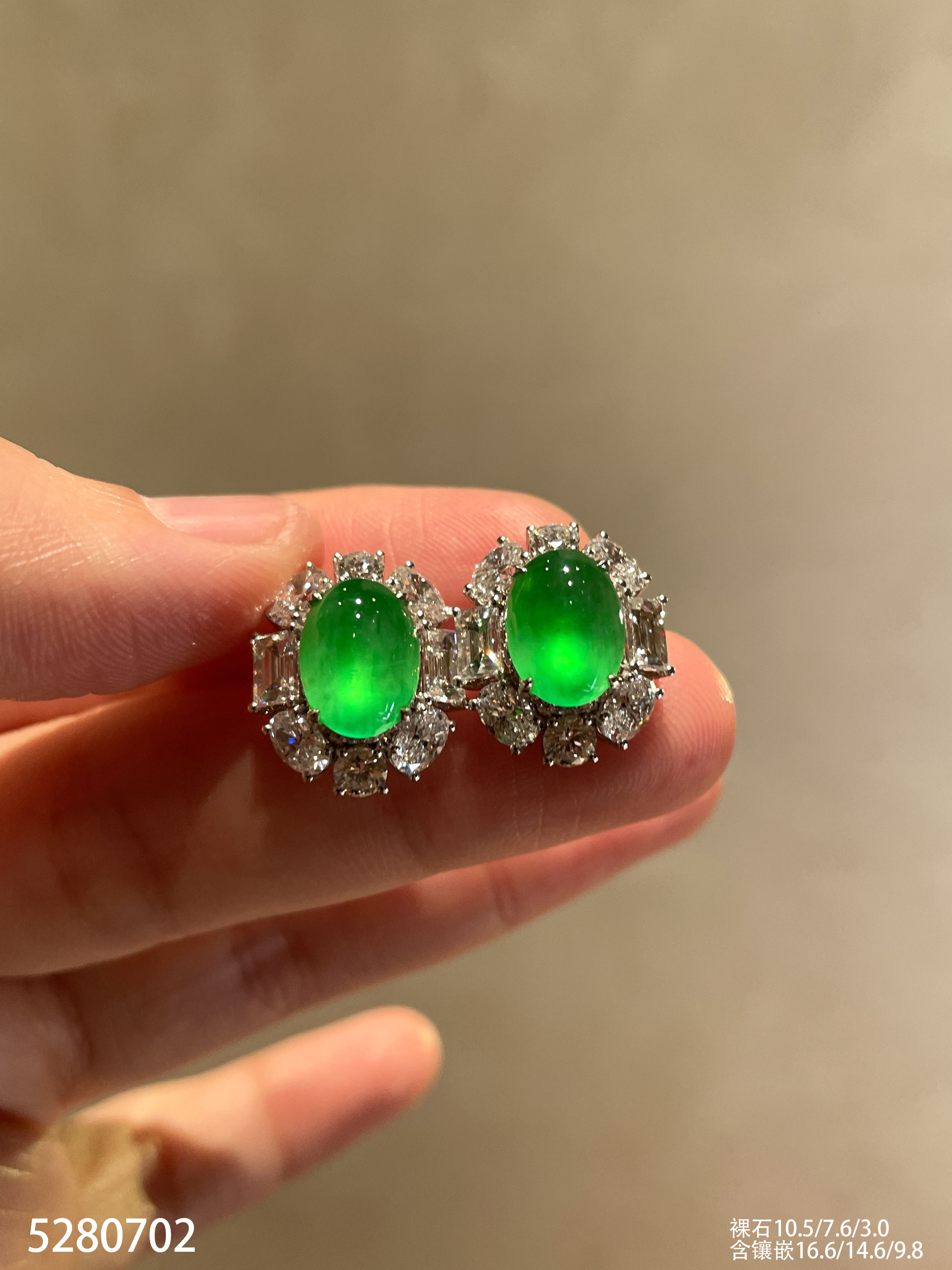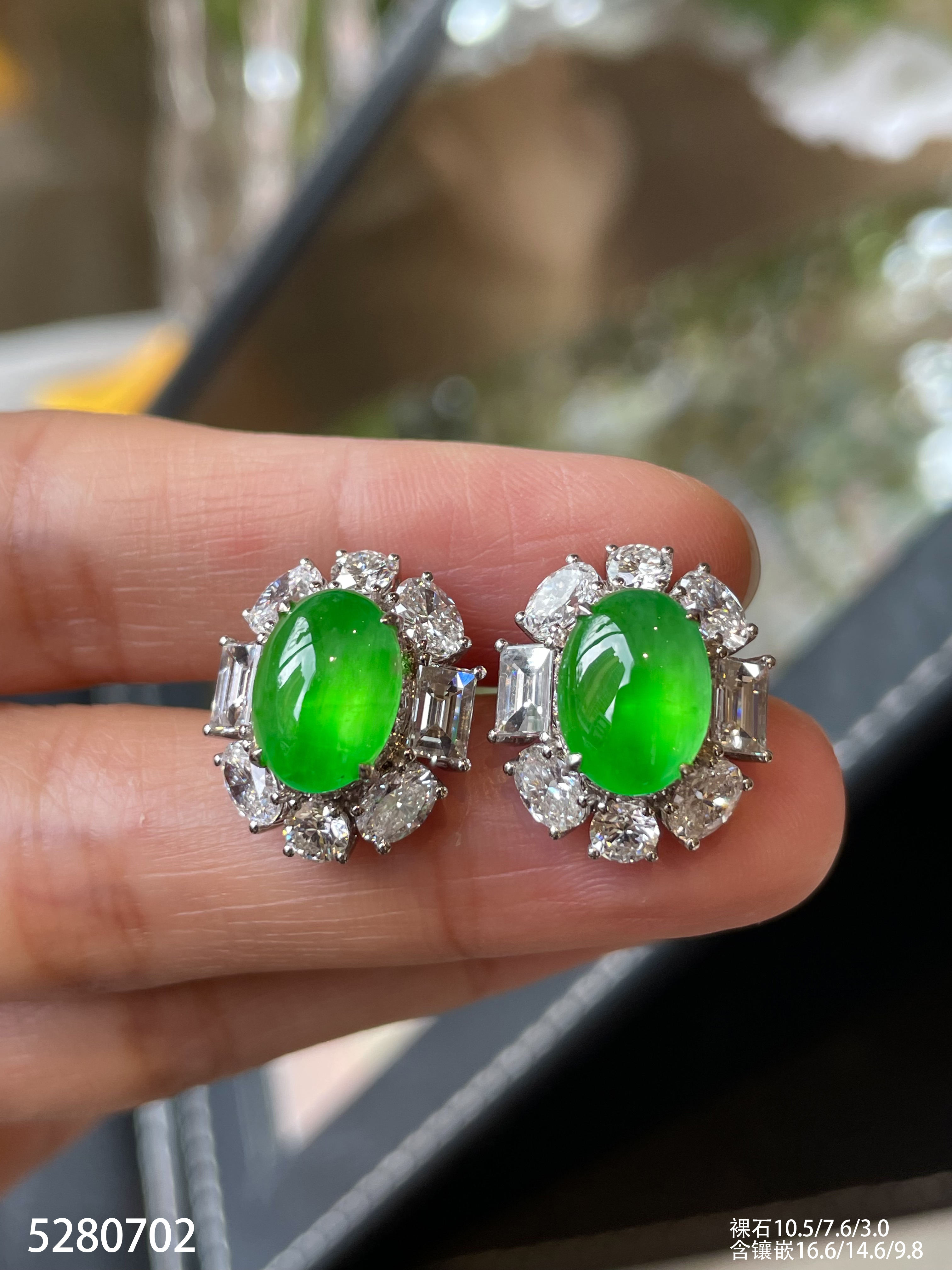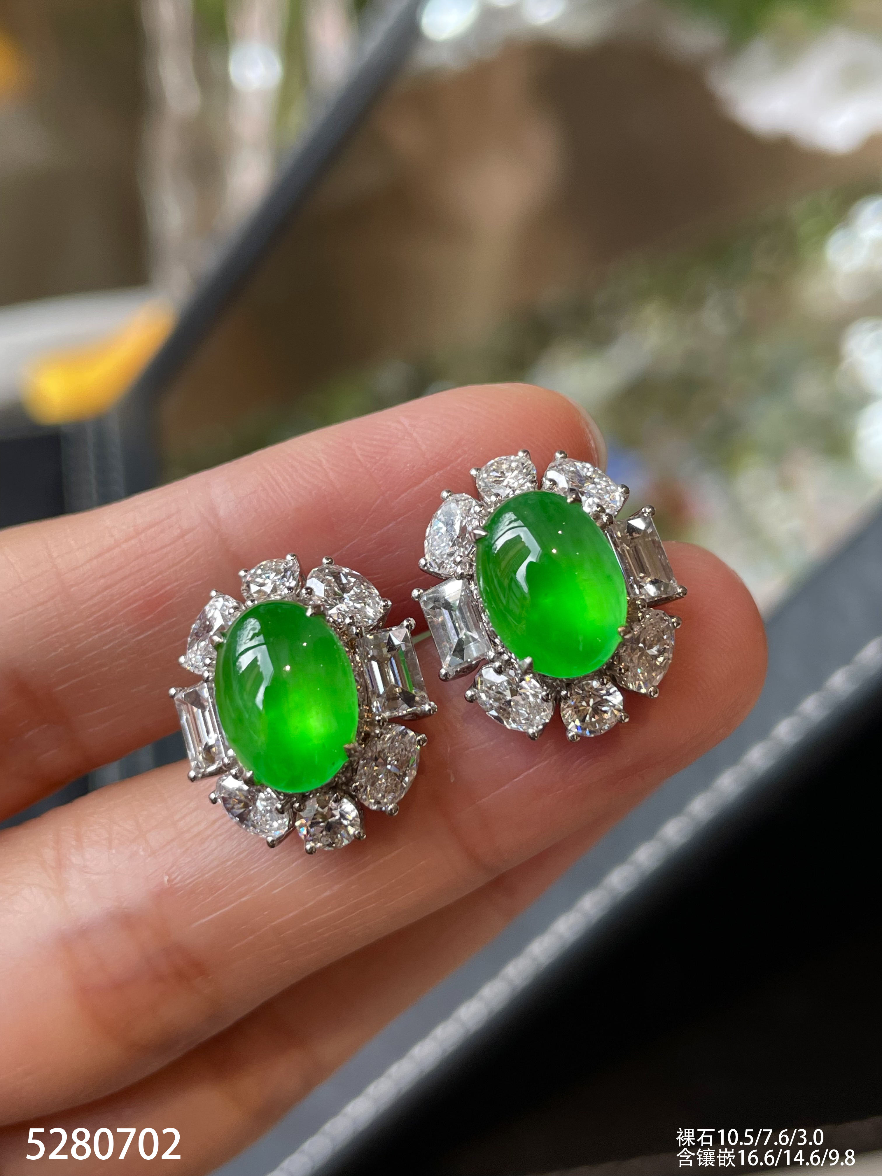 高冰种艳绿蛋面耳钉【6310503】具体价格微信咨询
