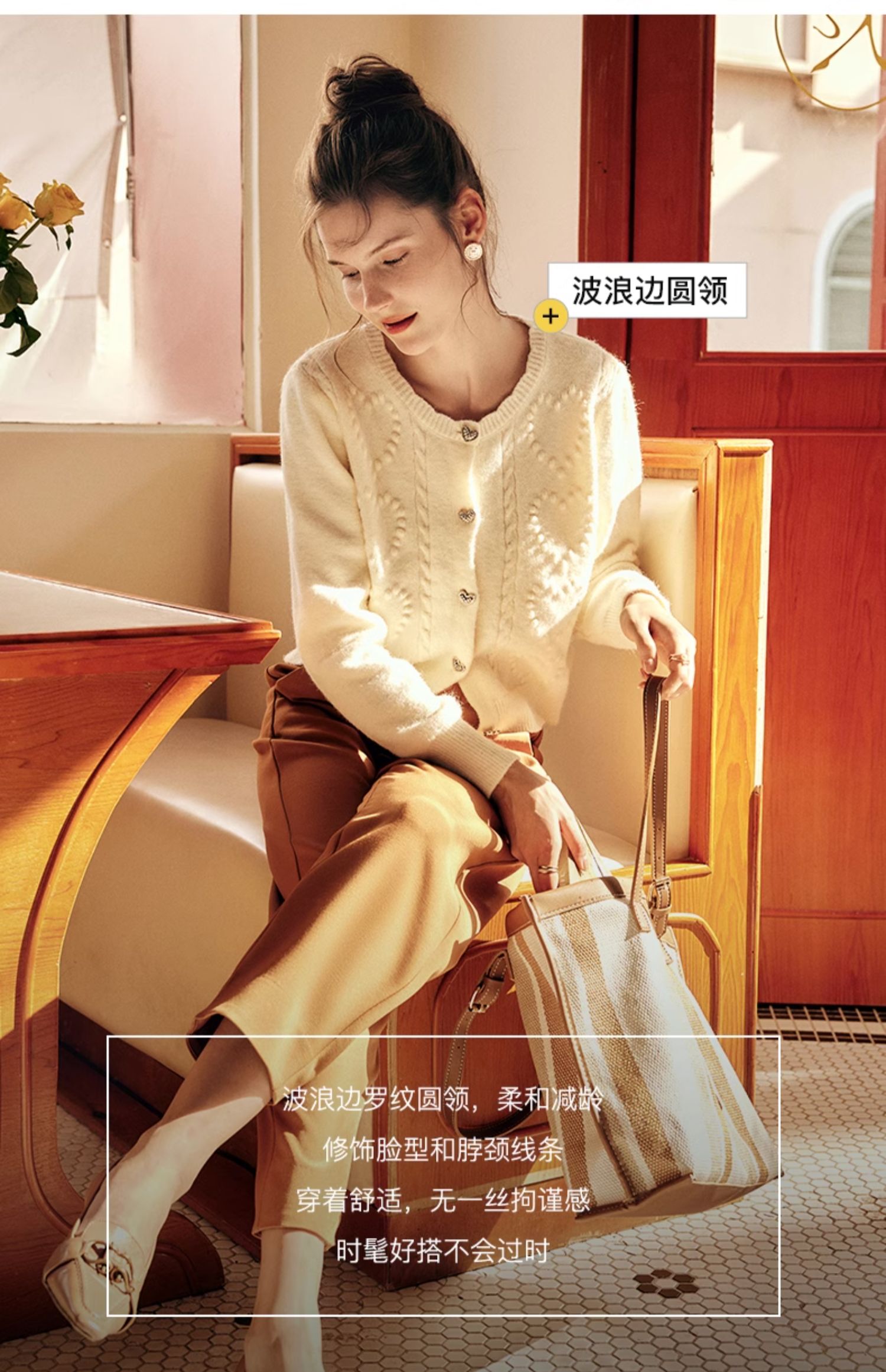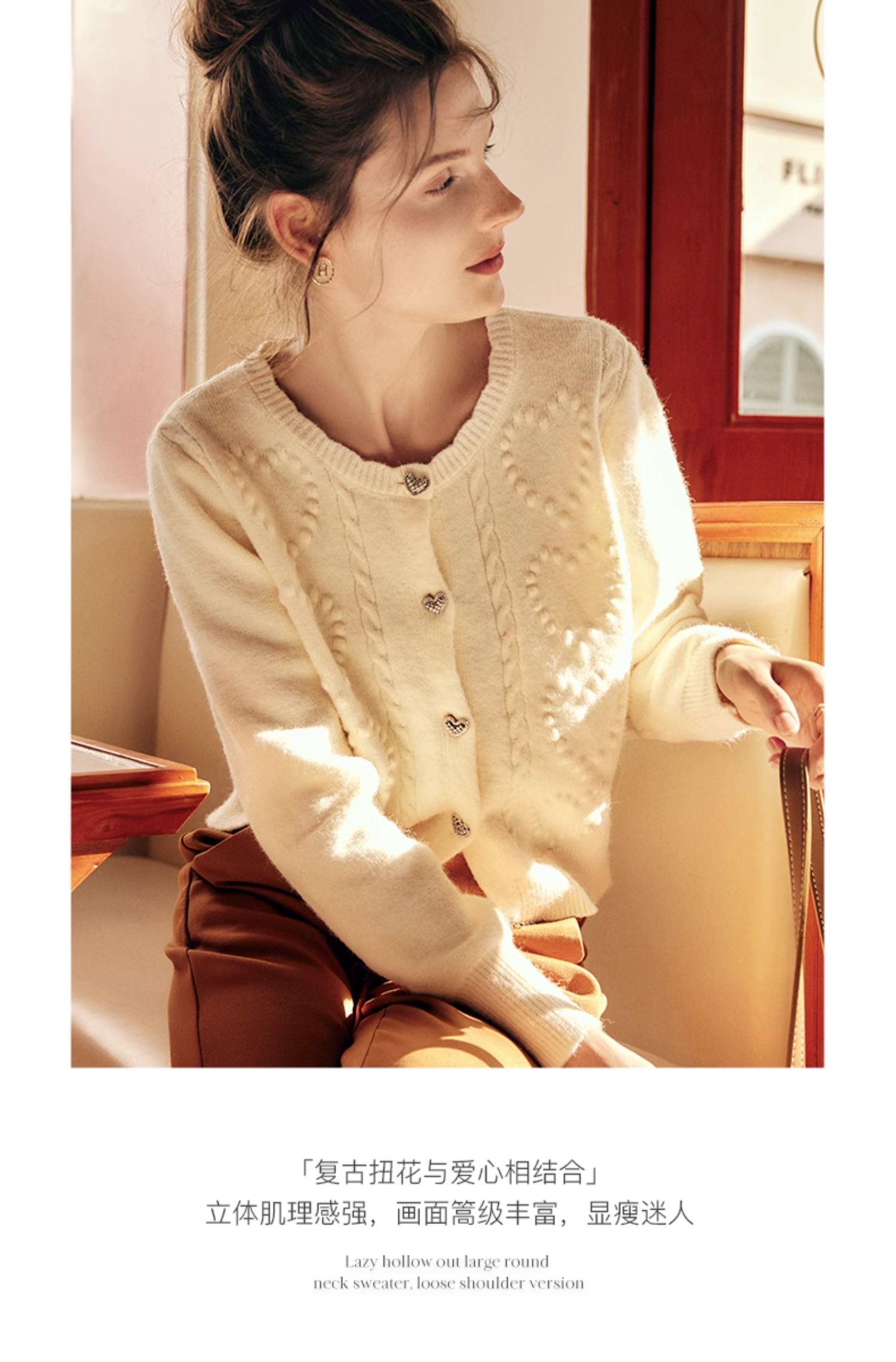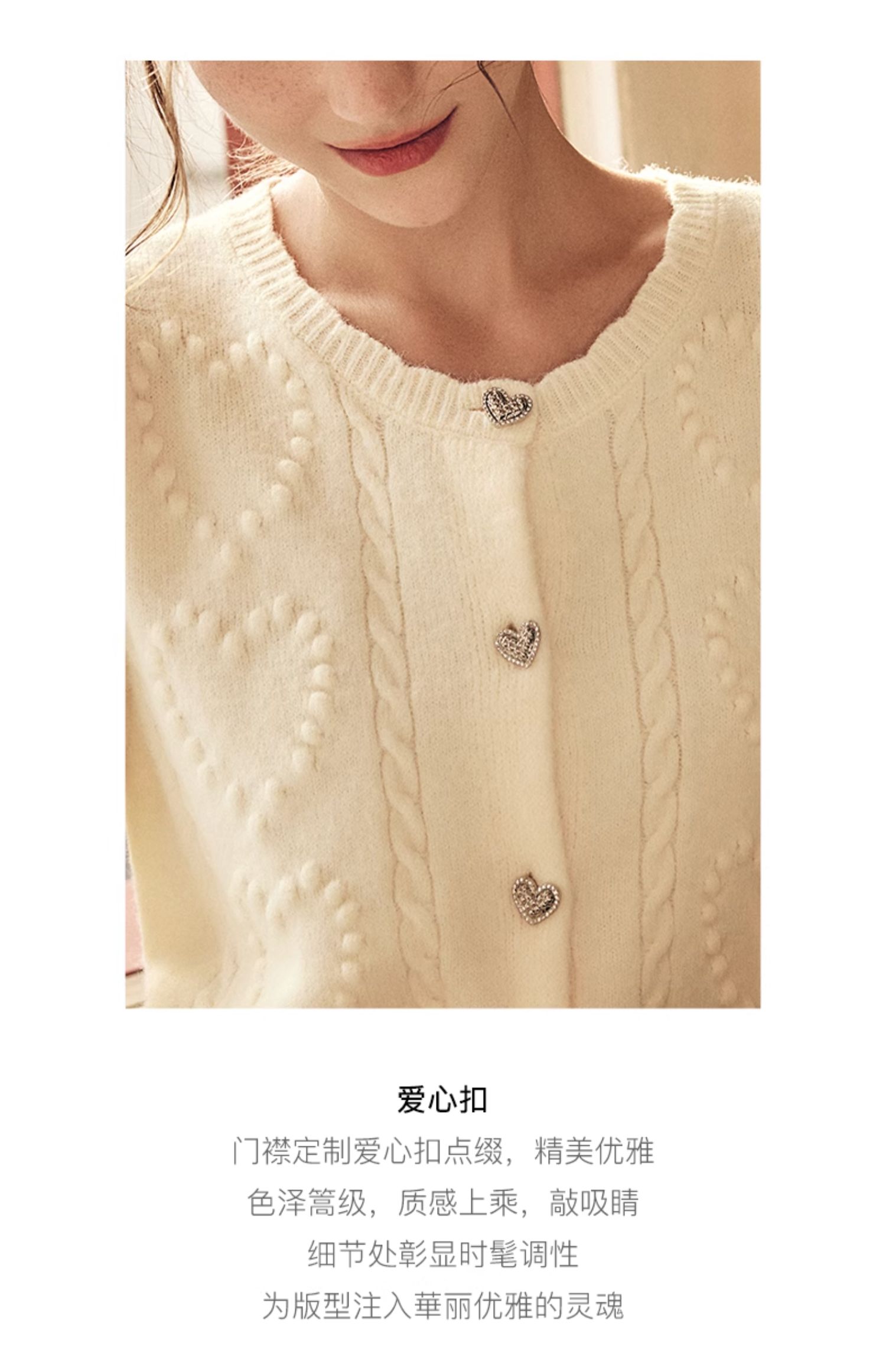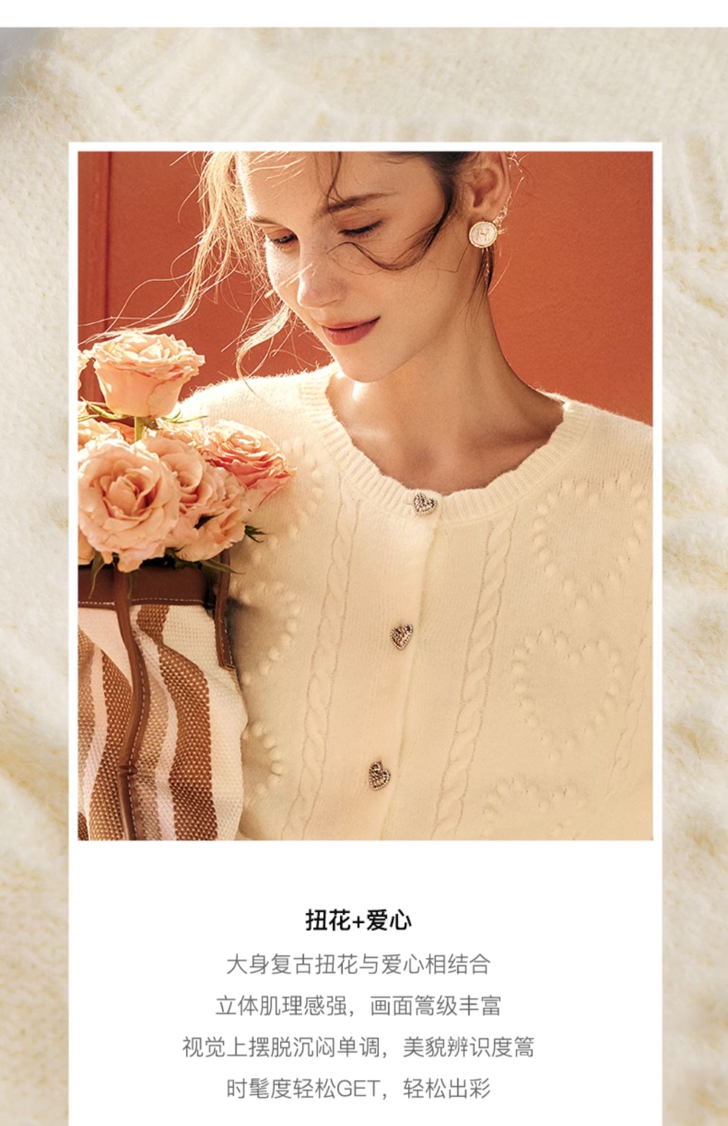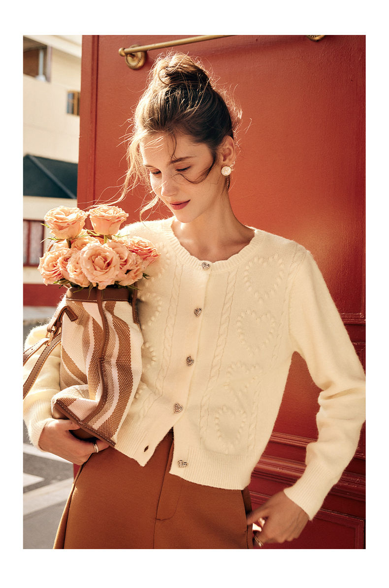 OLrain欧芮儿法式杏色毛衣外套女秋季2023新款气质肌理感针织开衫