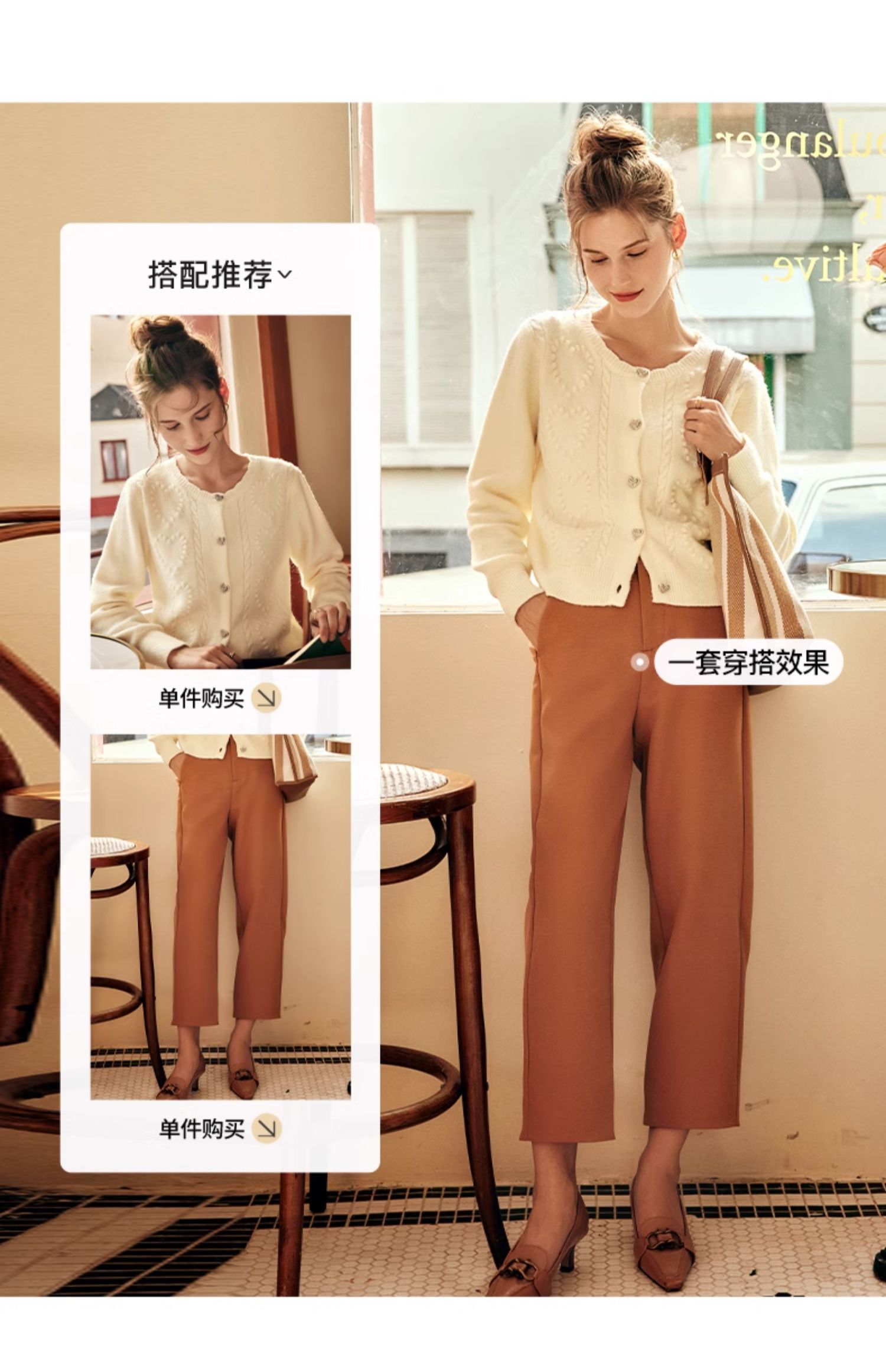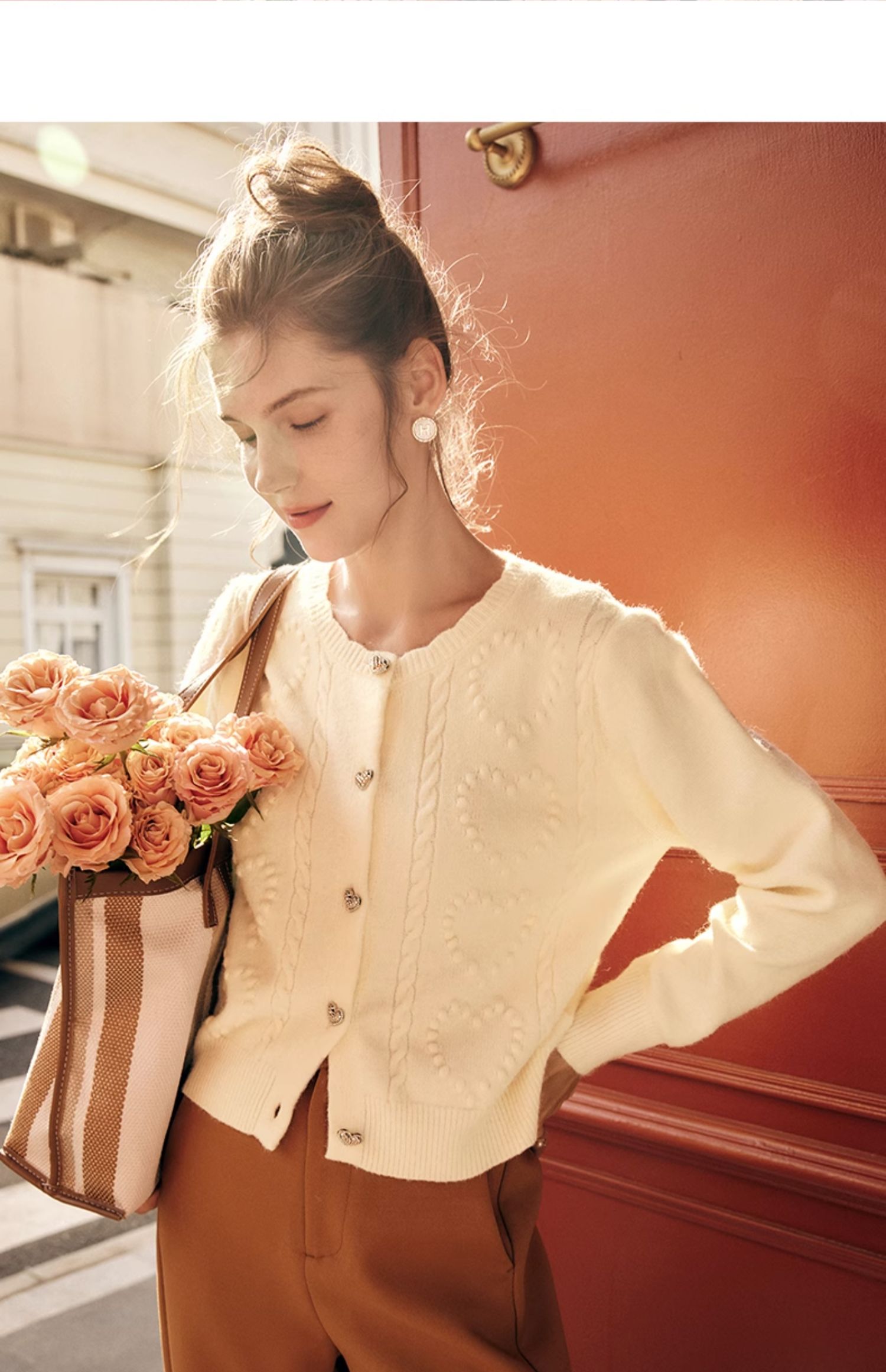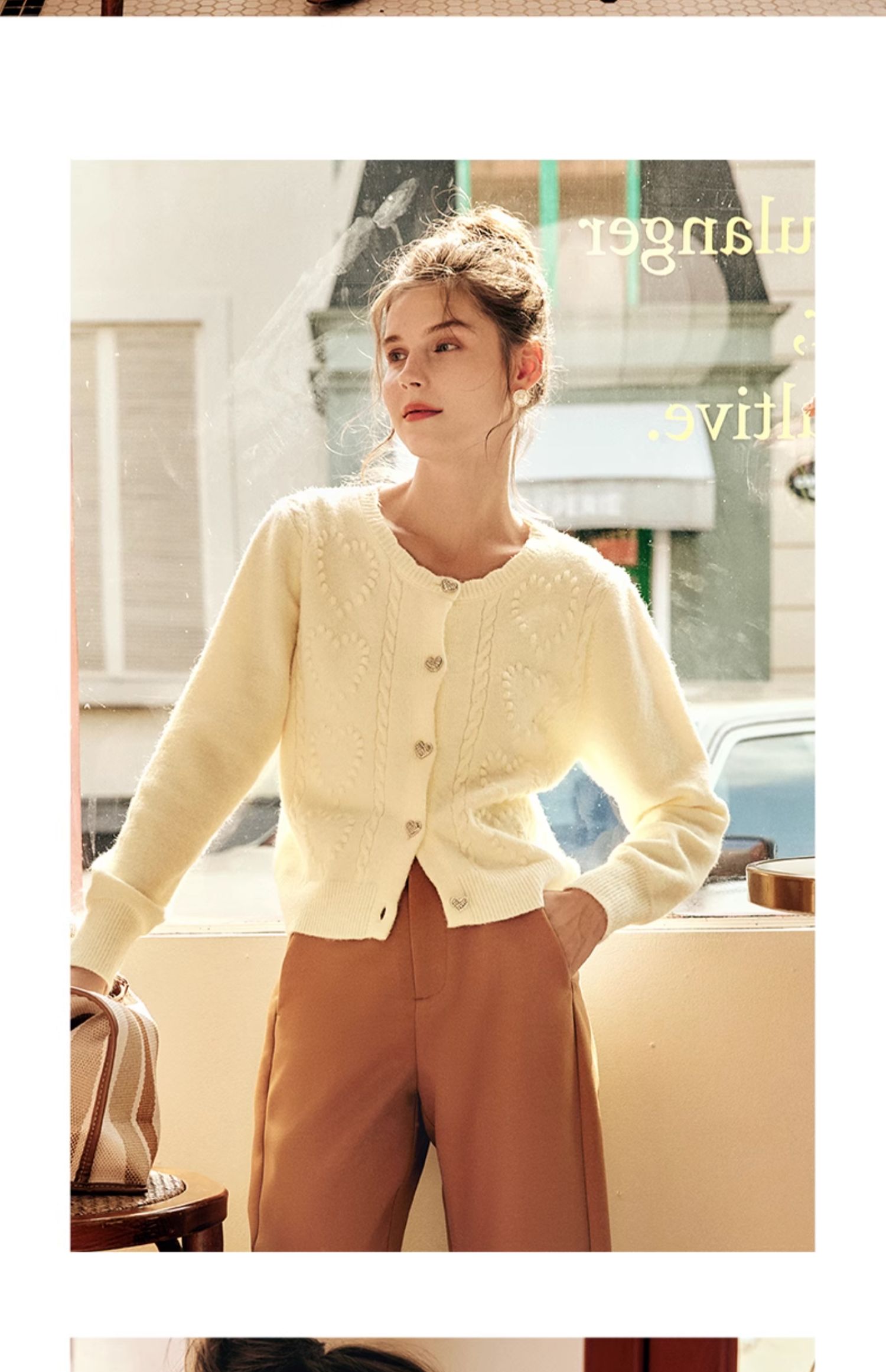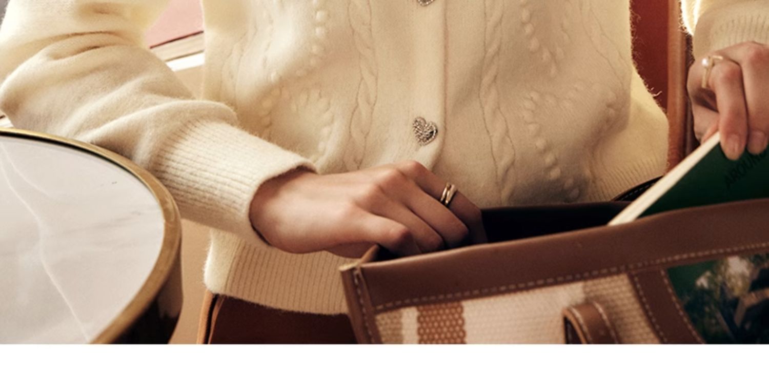 OLrain欧芮儿法式杏色毛衣外套女秋季2023新款气质肌理感针织开衫