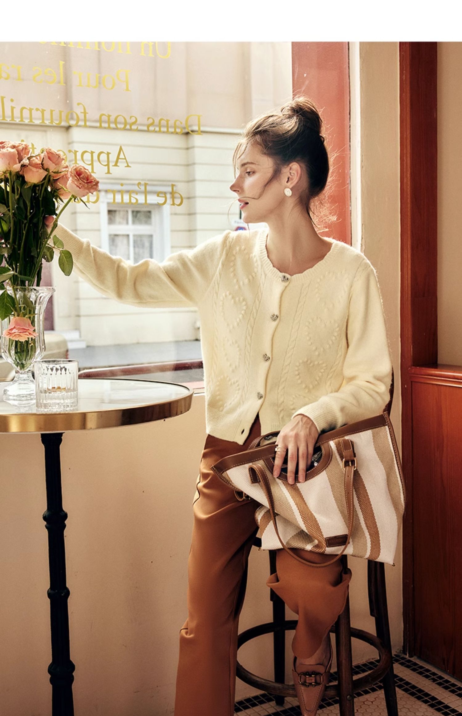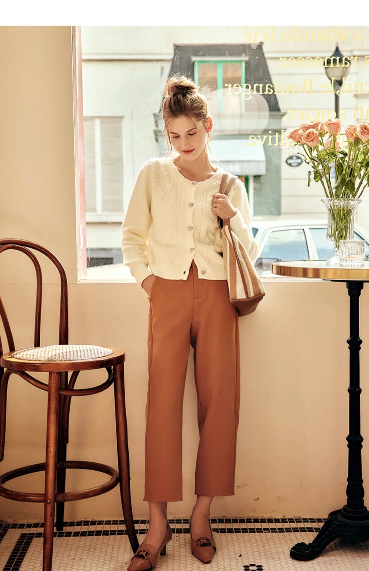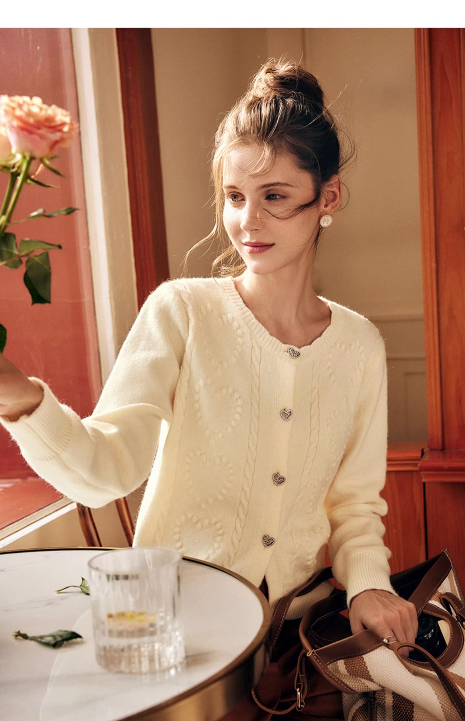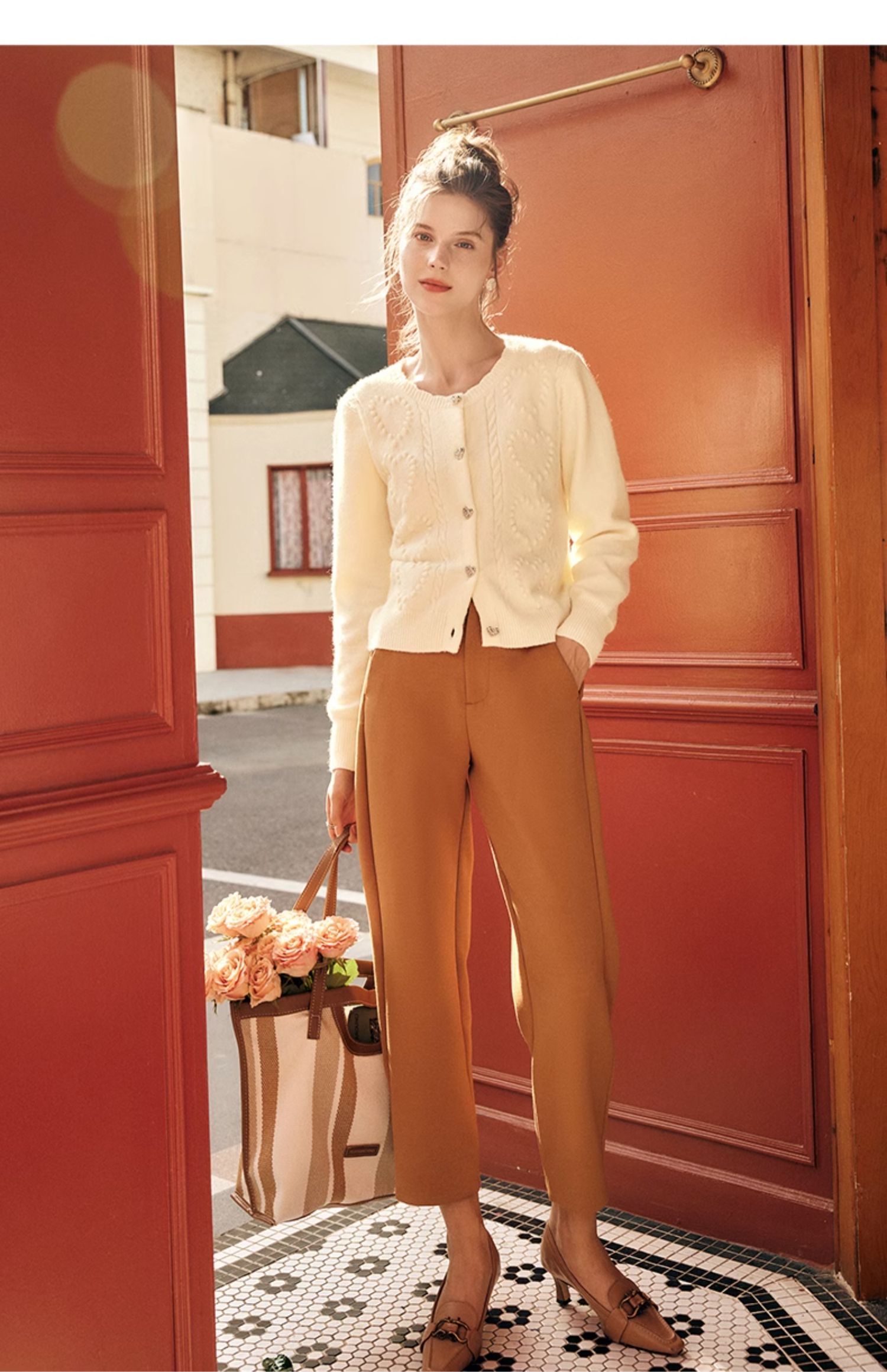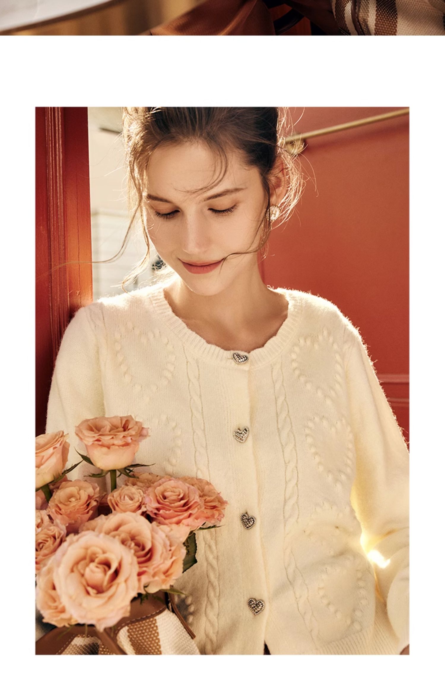 OLrain欧芮儿法式杏色毛衣外套女秋季2023新款气质肌理感针织开衫