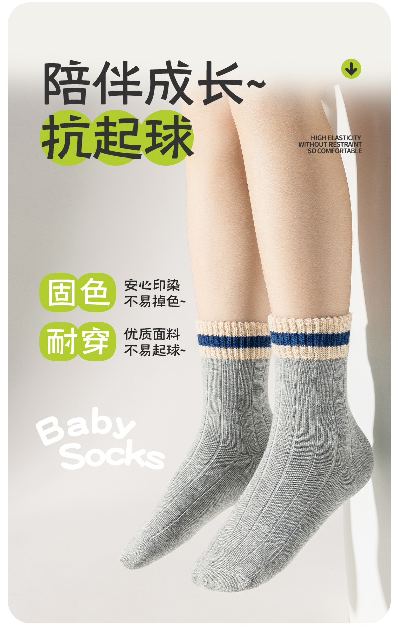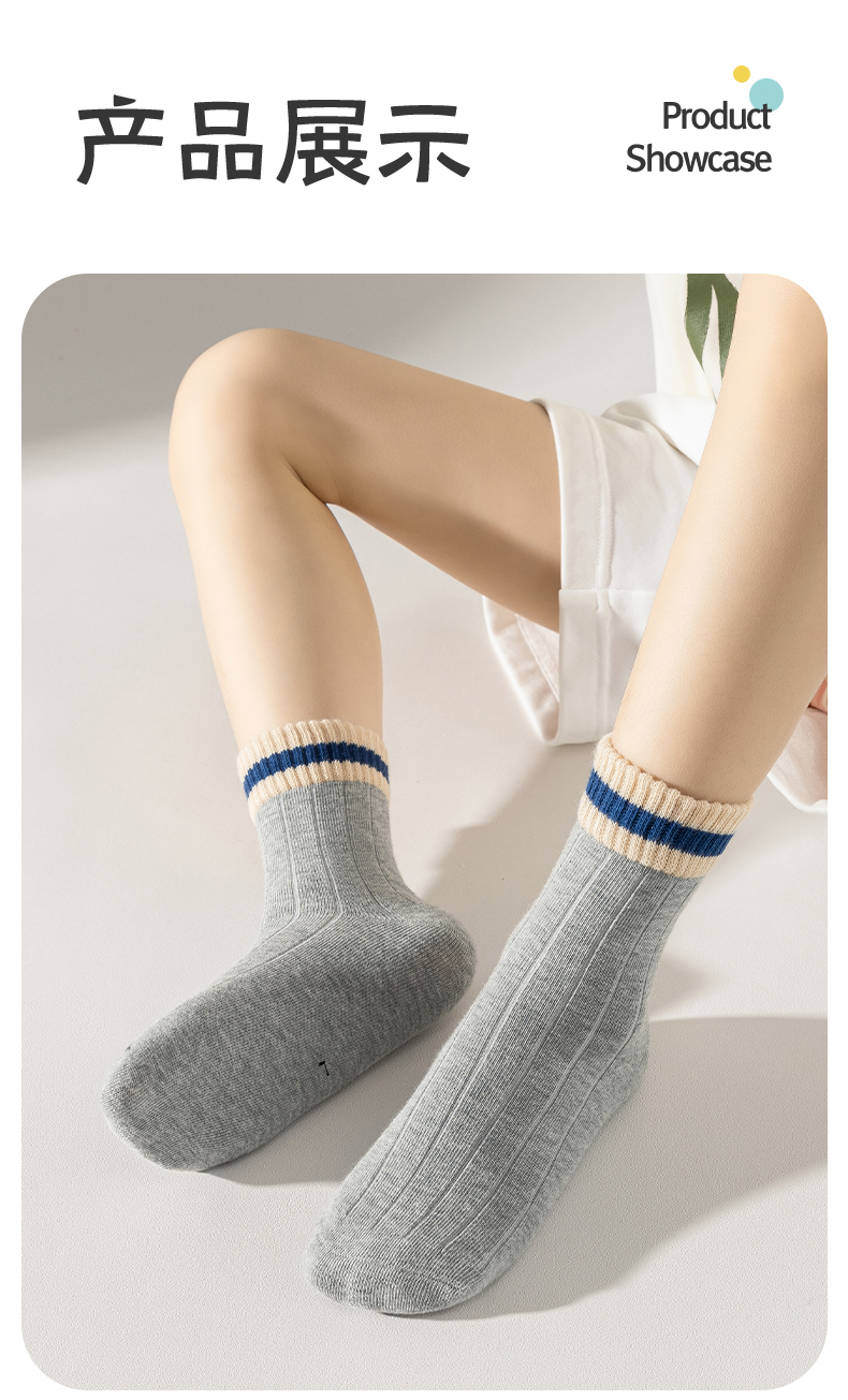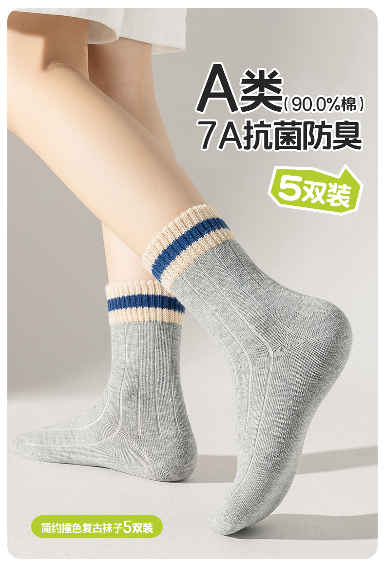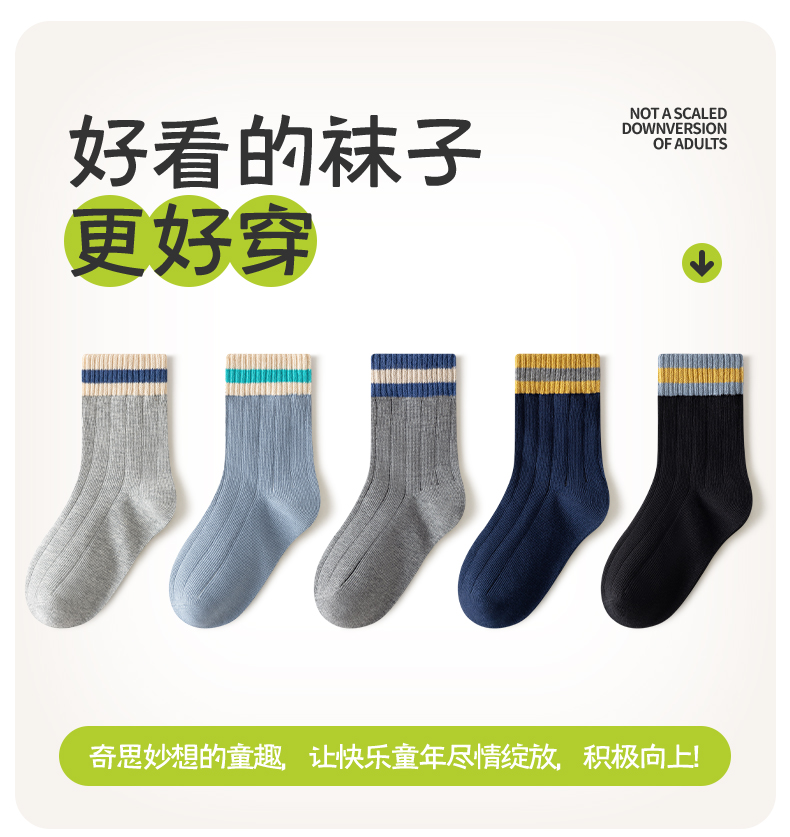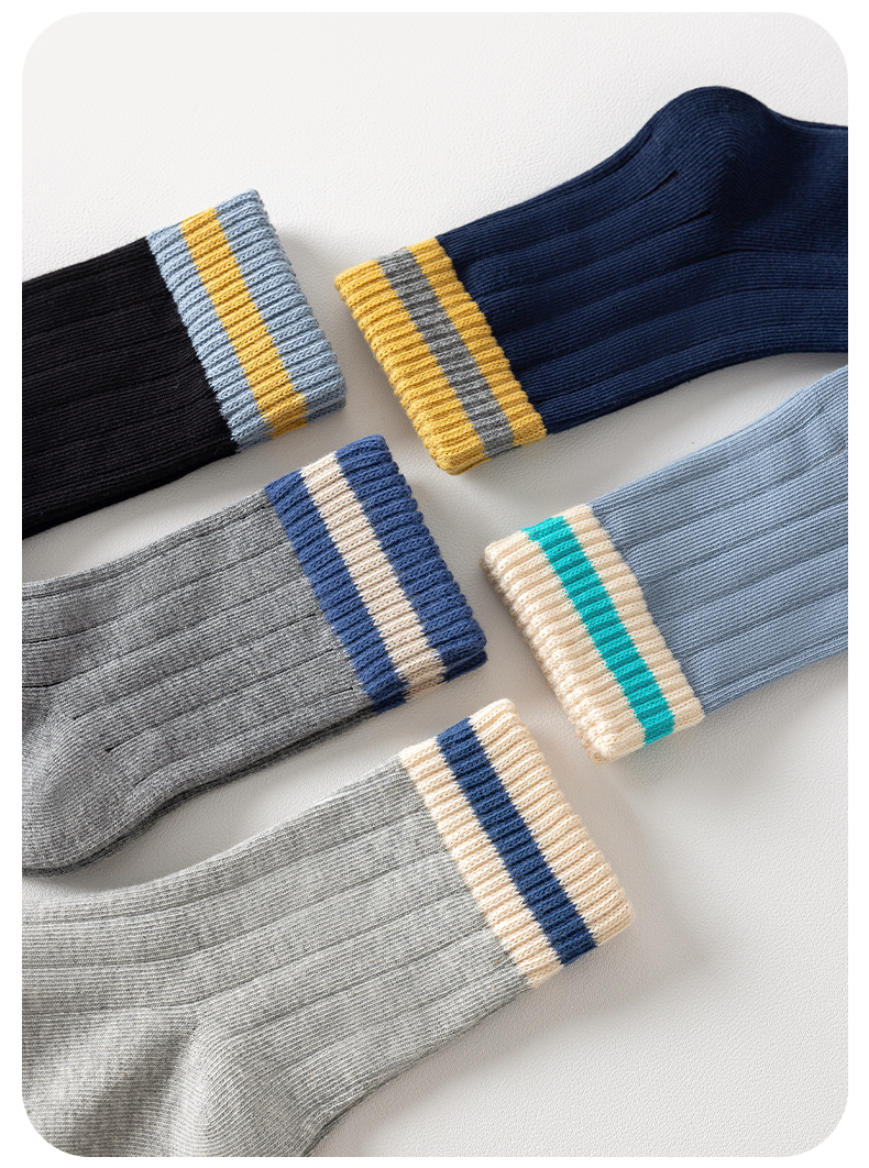 【件件底价,童装双倍积分】多多家男童袜子春秋款2025新款儿童中大童撞色拼接复古中筒袜5双11237
