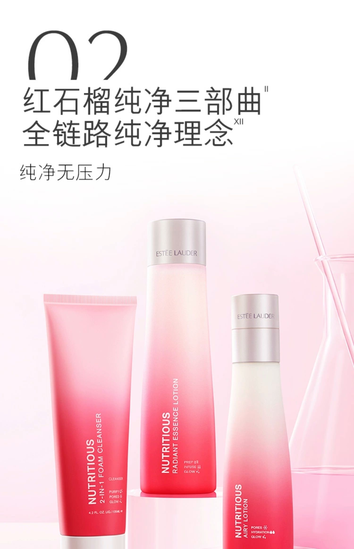 Estee laude雅诗兰黛红石榴新版三件套装 洁面125ml+石榴水200ml+面霜面膜二合一50ml 补水保湿提亮控油改善暗沉