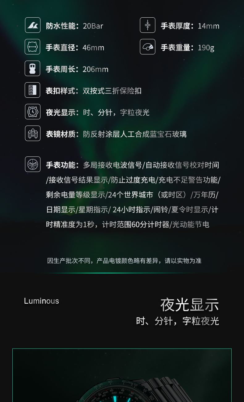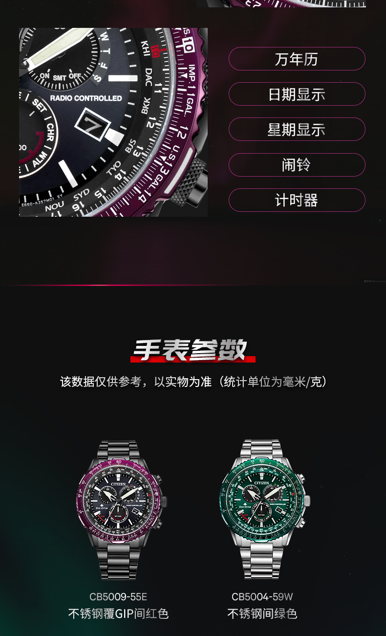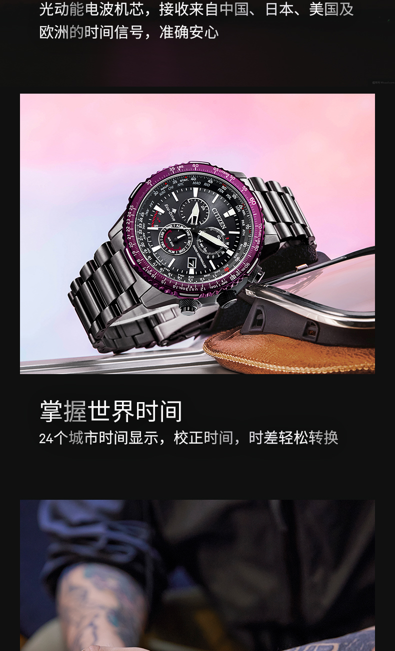 西铁城(CITIZEN)光动能多局电波男表空中之鹰系列JY8085-81E