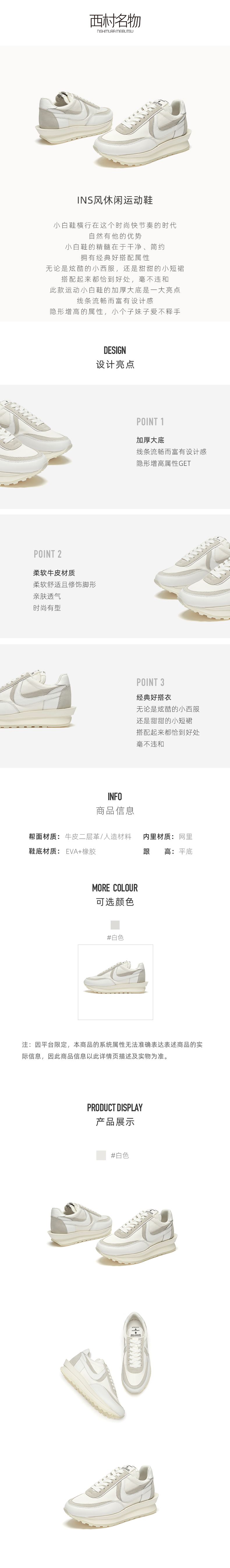 西村名物2020秋季新款ins风休闲运动女松糕底时尚小白鞋T20CM32311