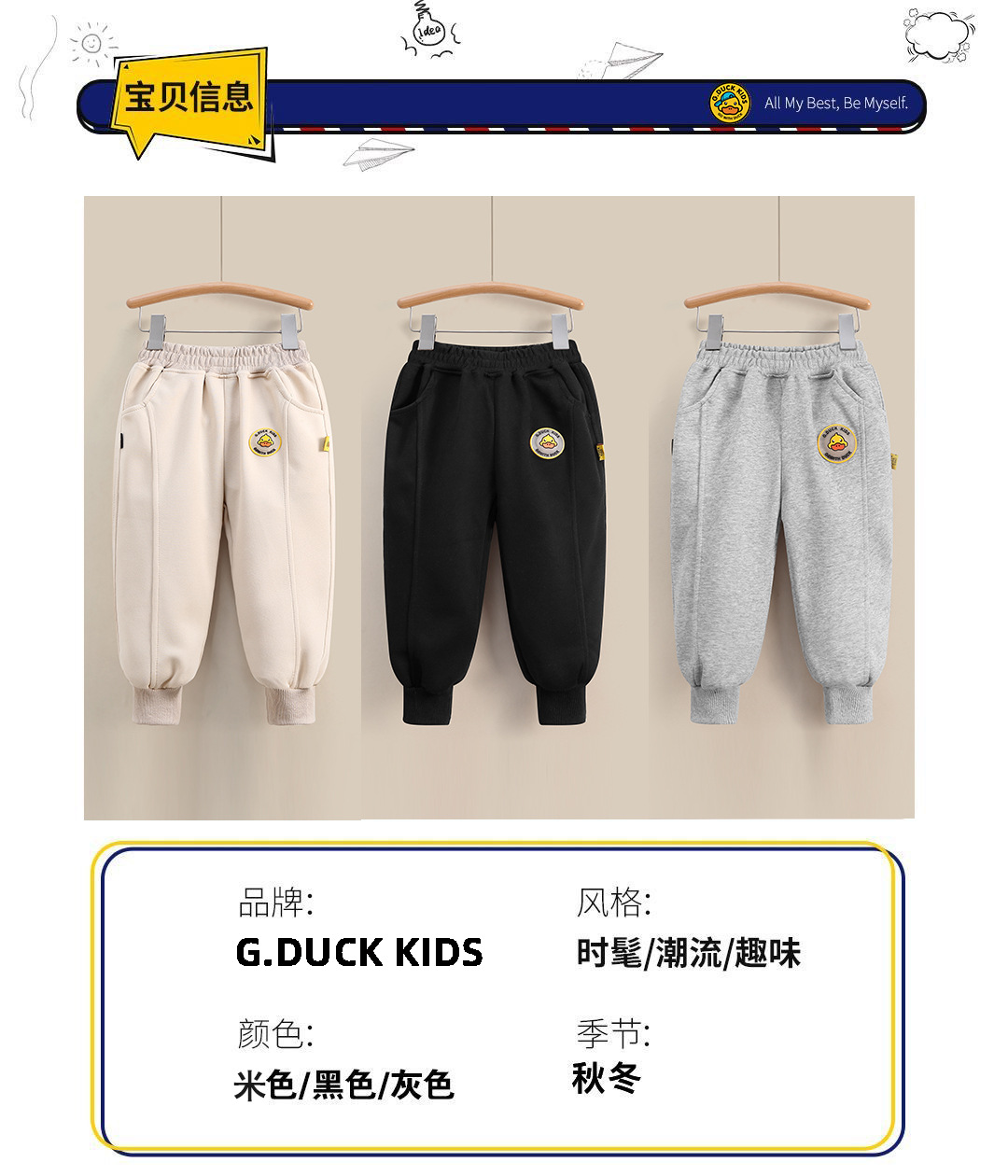 小黄鸭正品儿童2024新款春秋卫裤男童女童长裤运动韩版宝宝裤子