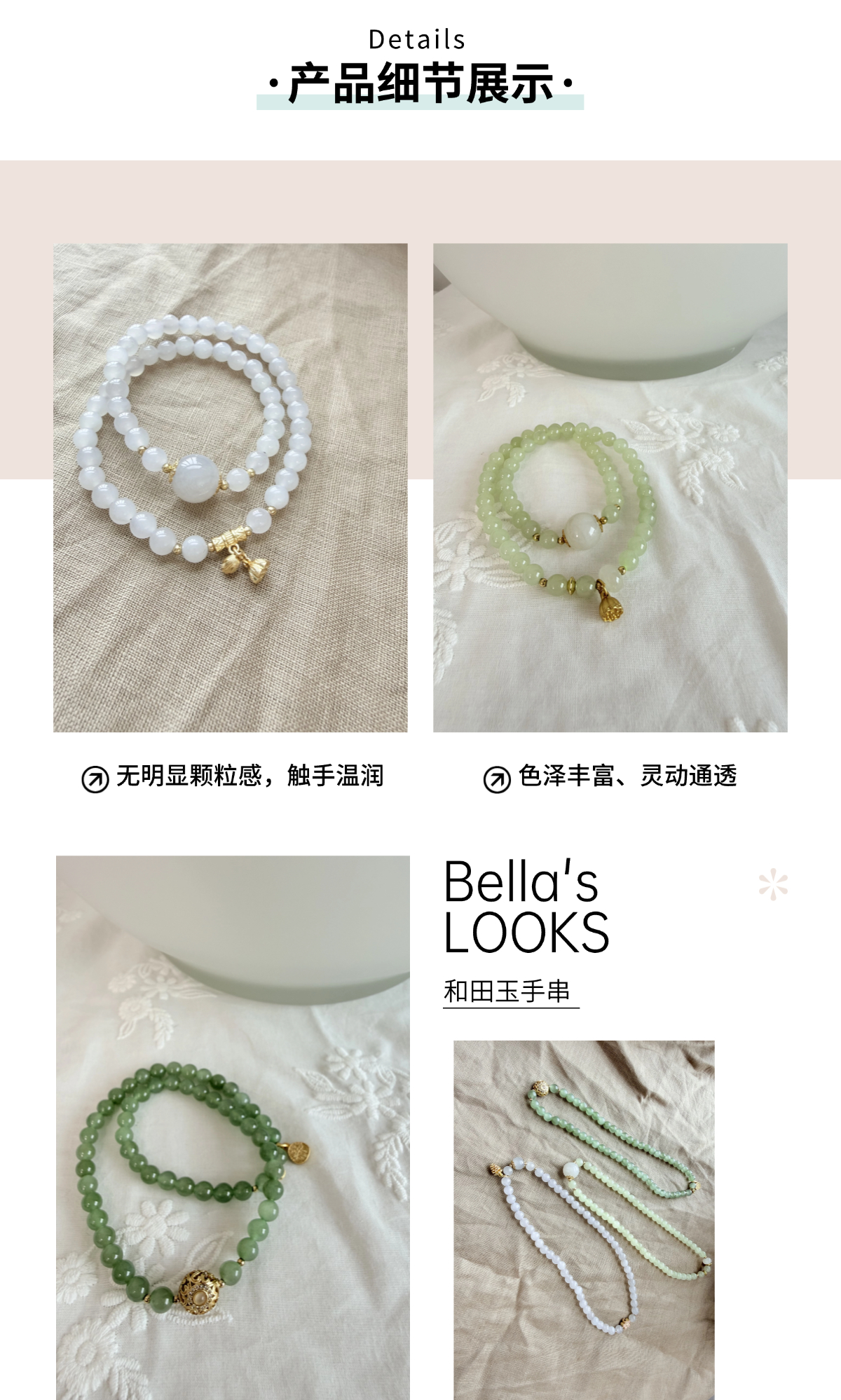 【非质量问题不退换】【贝拉推荐】无尘.清欢 和田玉长串手串 三色系空灵盈润 以玉养人【配有证书】