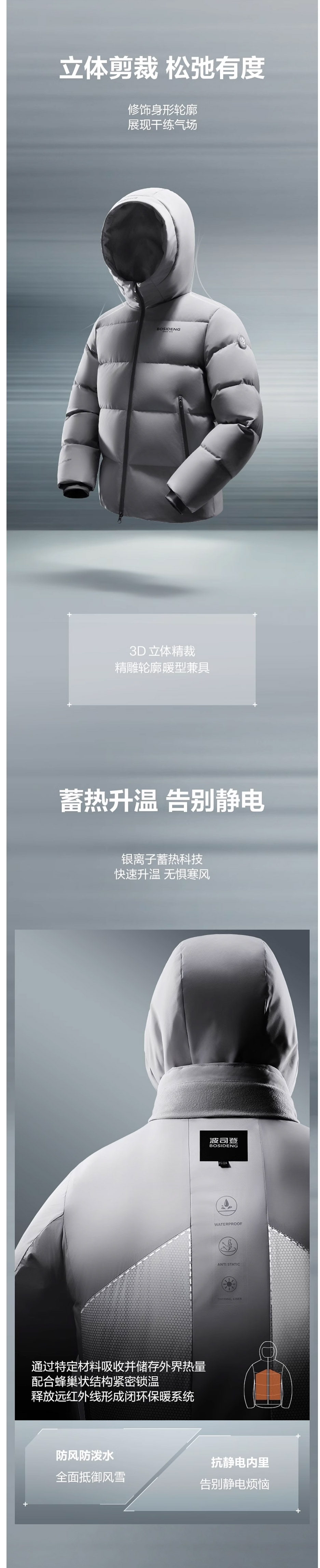波司登羽绒服男2025新款冬季短款连帽情侣B250246530