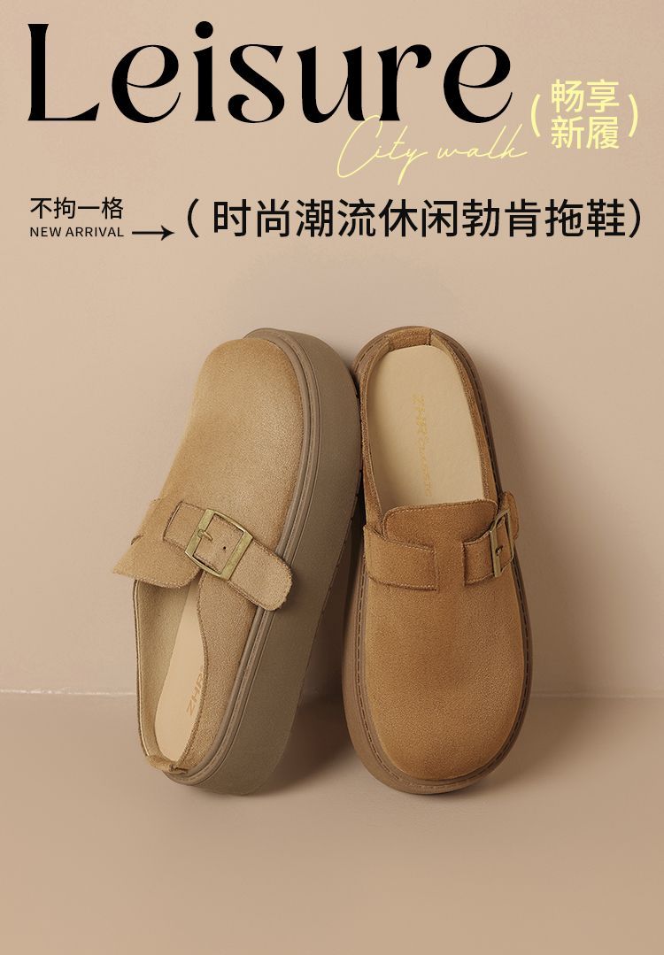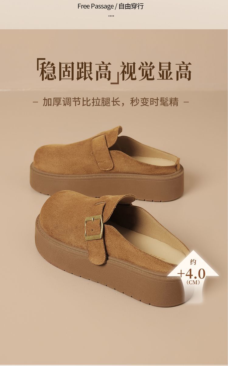 ZHR【厚底增高4cm】勃肯拖鞋2026春季新款复古软底小个子一脚蹬