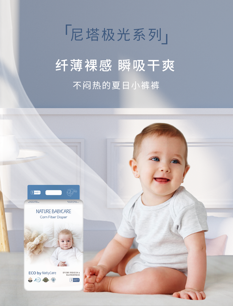 NatyCare尼塔纸尿裤极光系列S66超薄透气男女宝宝通用尿裤尿不湿(3包/6包可混批)