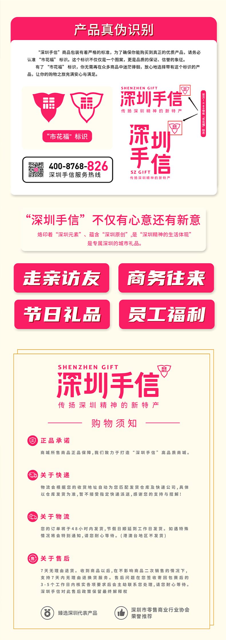 欢迎关注【深圳手信商城】 深圳手信是城市礼品的选购平台,臻选深圳八大优势产业代表产品,深圳市零售商业行业协会推荐。 闭着眼睛挑,每一份都是好礼,是商务往来、旅游出差、走亲访友、员工福利的好礼