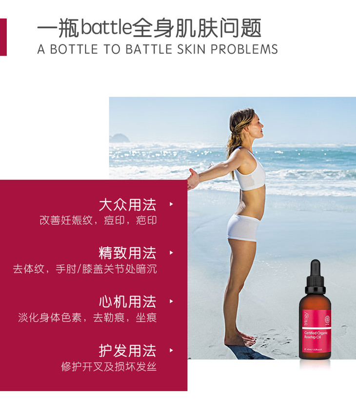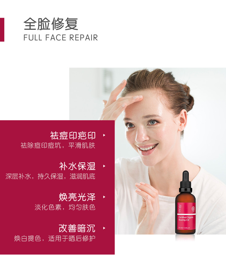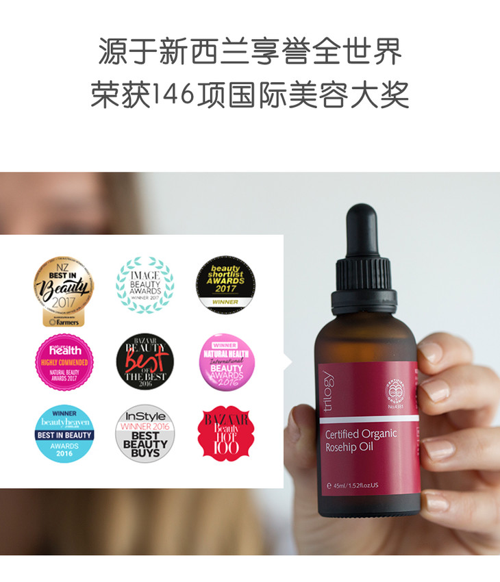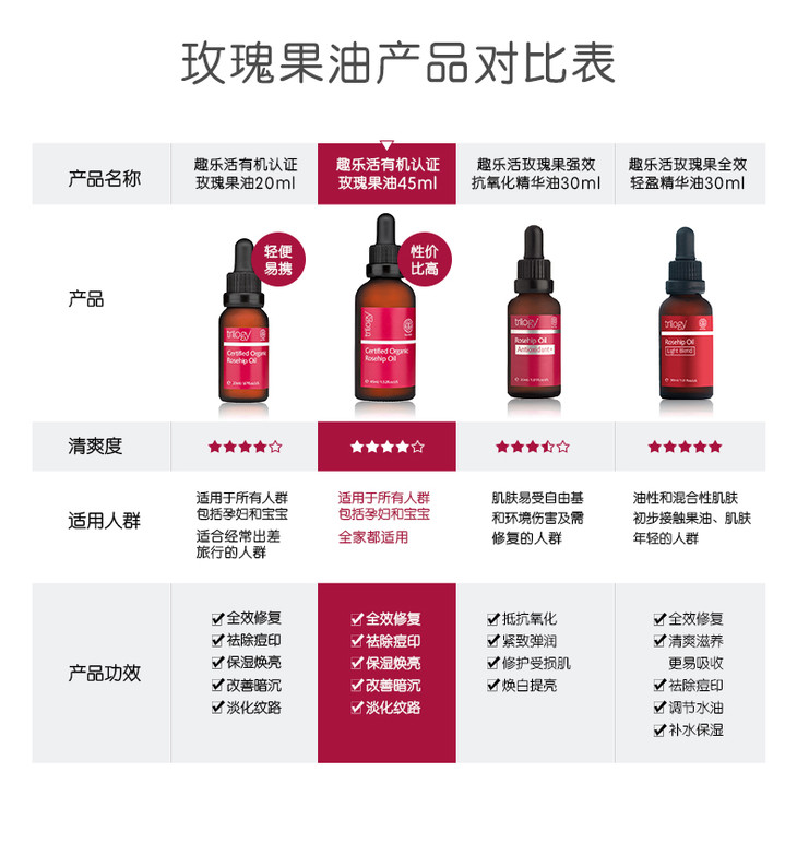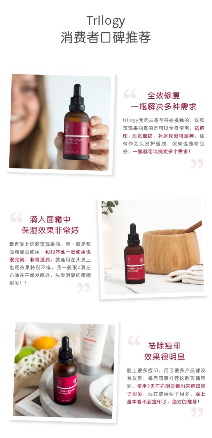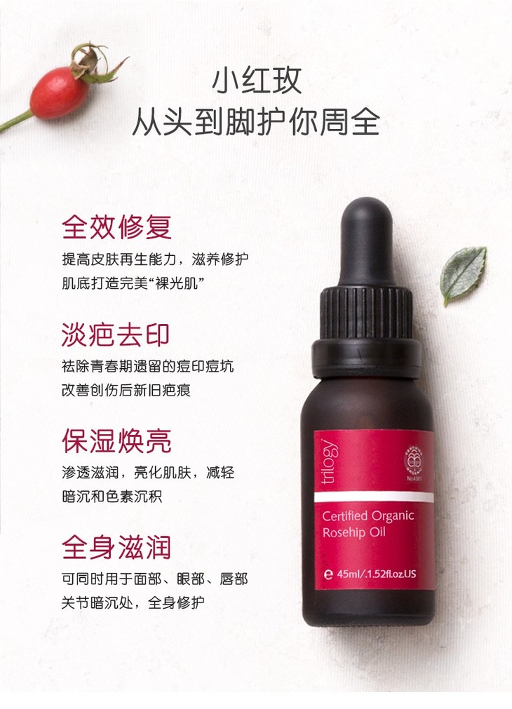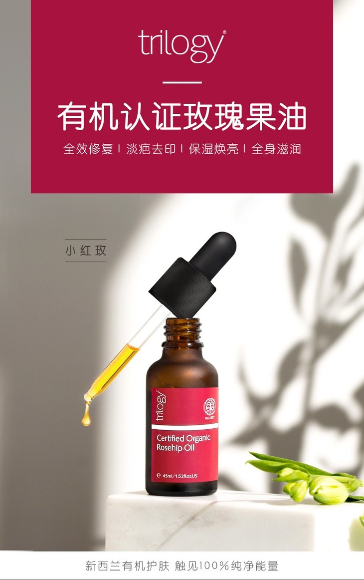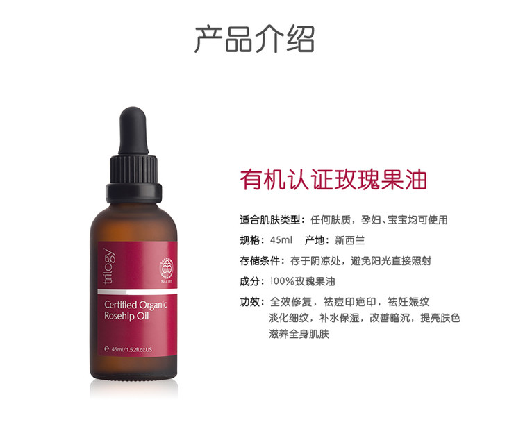 【新西兰直邮】新西兰趣乐活Trilogy有机玫瑰果油45ml 小红玫精华油
