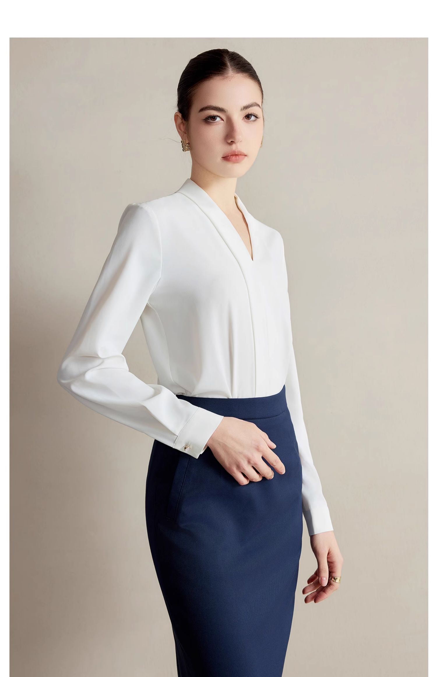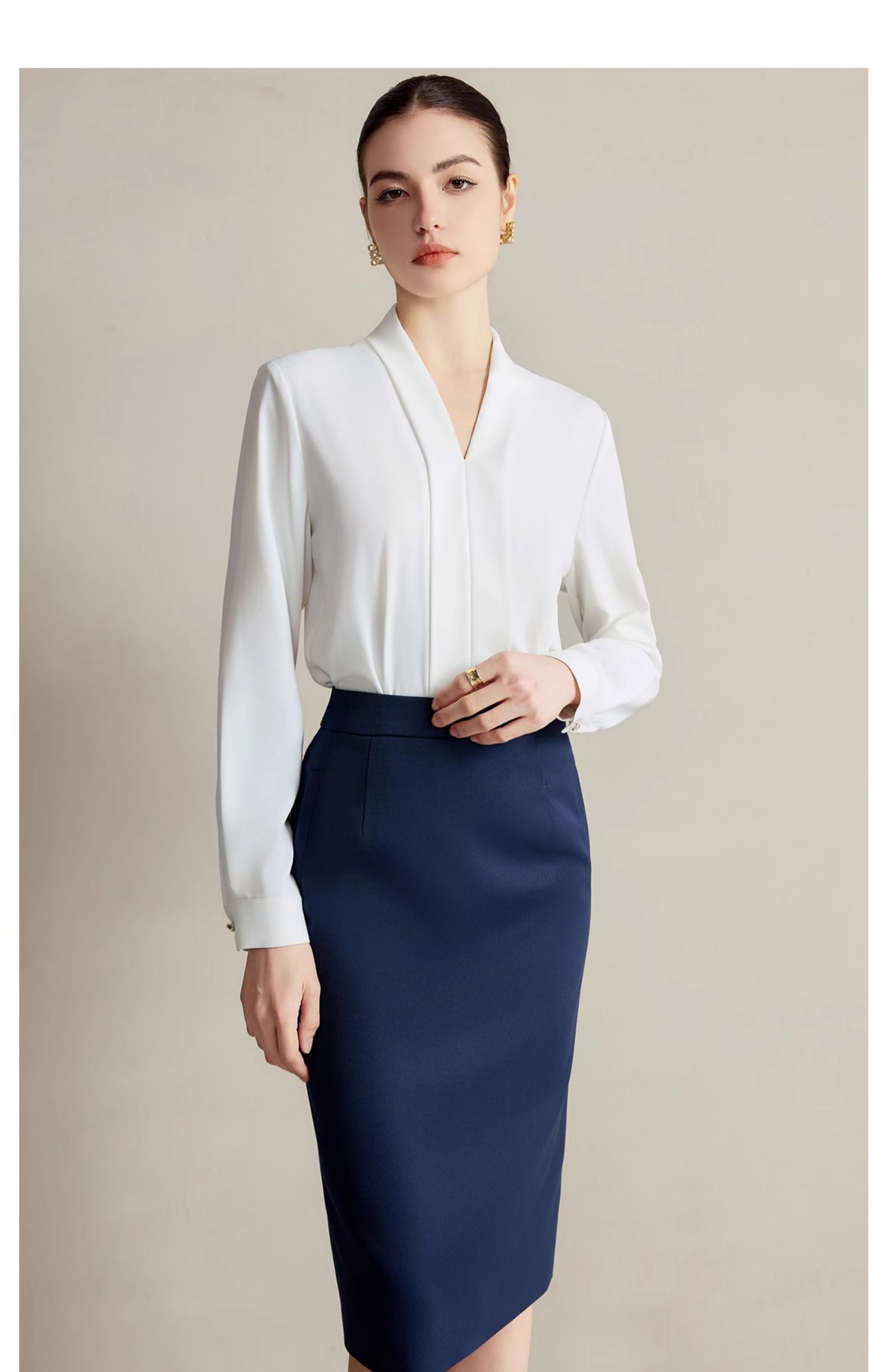 IWY/白色衬衫女高级感减龄洋气衬衣职业装套装新款公务员工作服B502+S2223