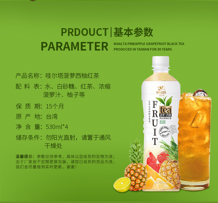 哇尔塔菠萝柚子红茶味饮料530ml(合作)