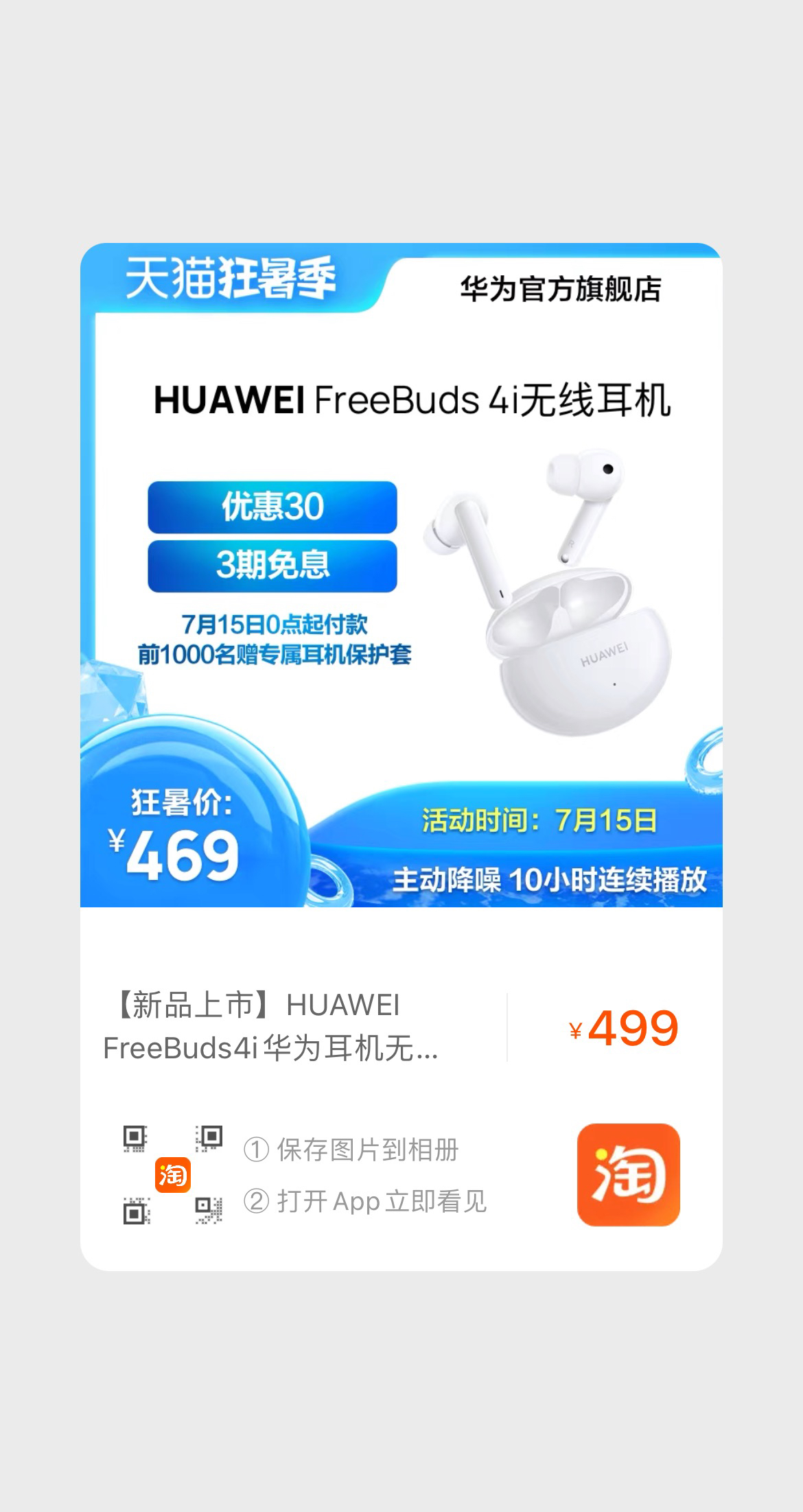 HUAWEI FreeBuds4i华为耳机无线蓝牙耳机主动降噪