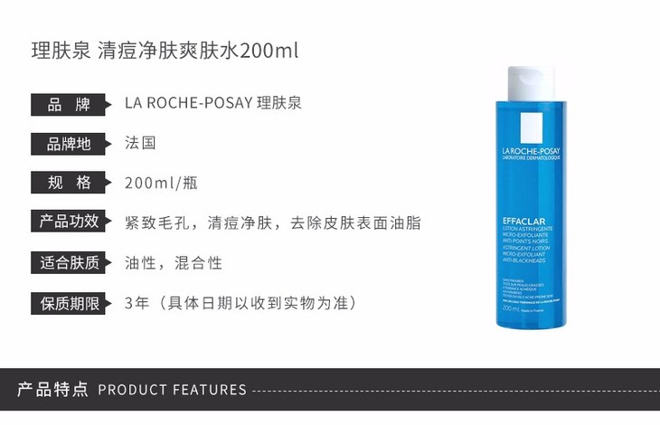 【保税仓】LA ROCHE-POSAY/理肤泉 净肤爽肤水 200ML