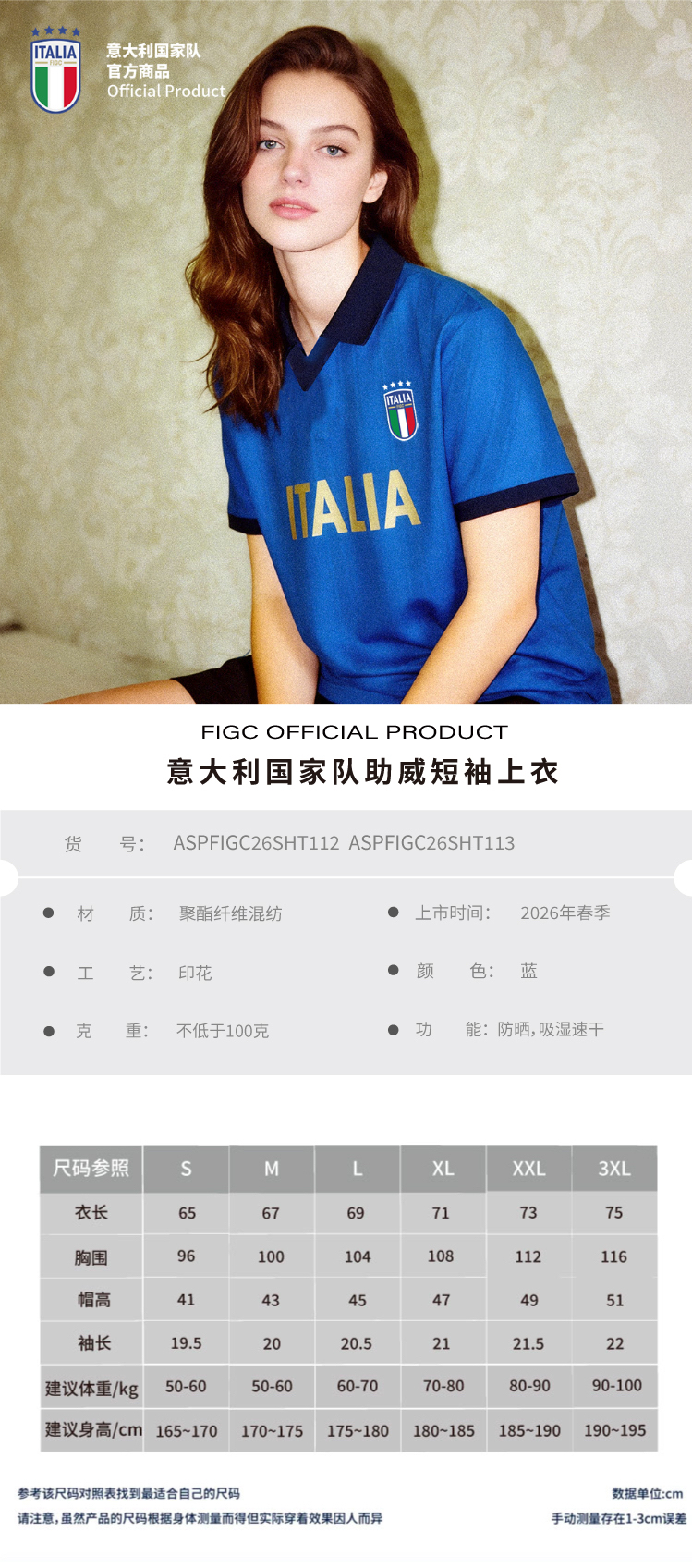 【国家队官方比赛助威服】|蓝色条纹速干运动T恤polo世界杯意大利