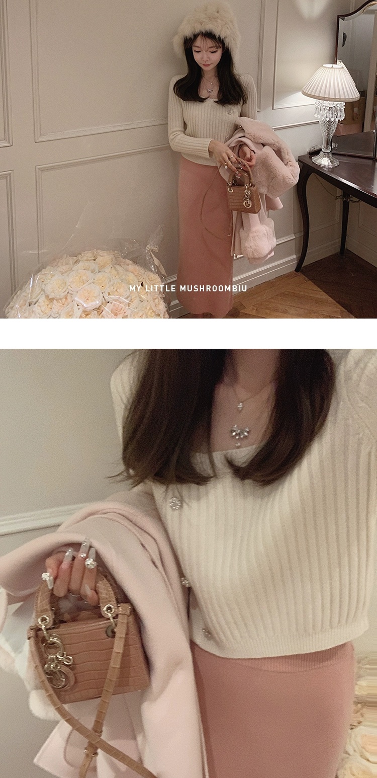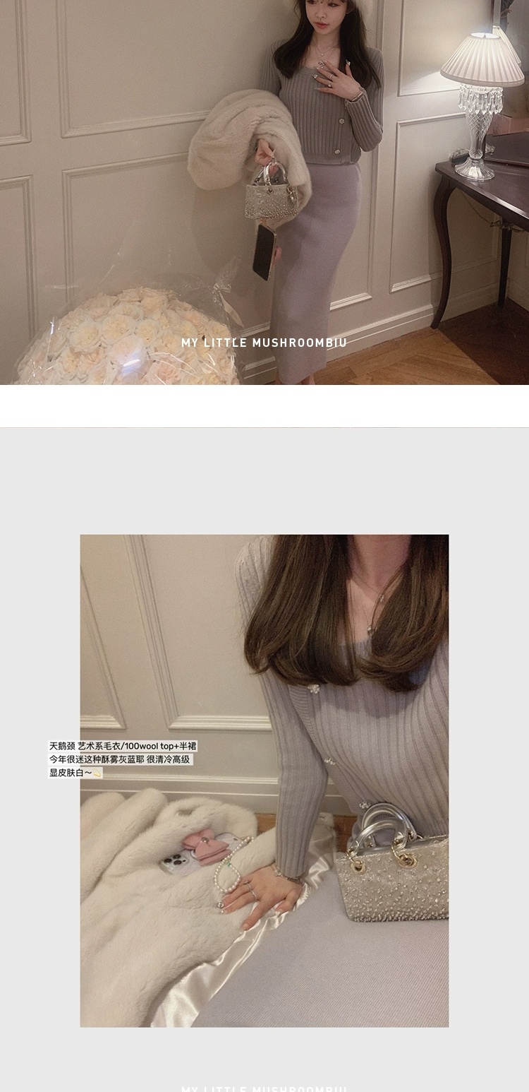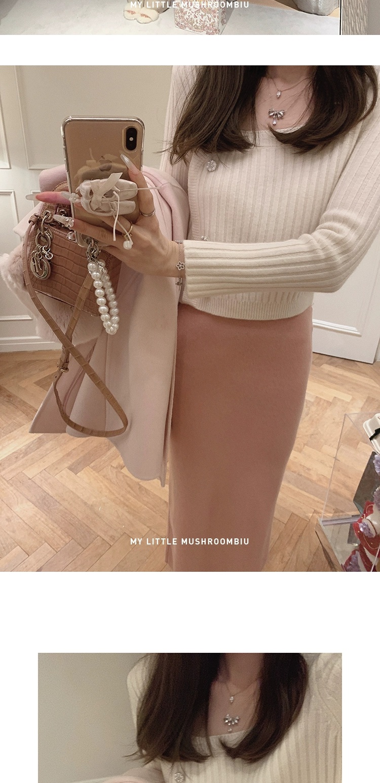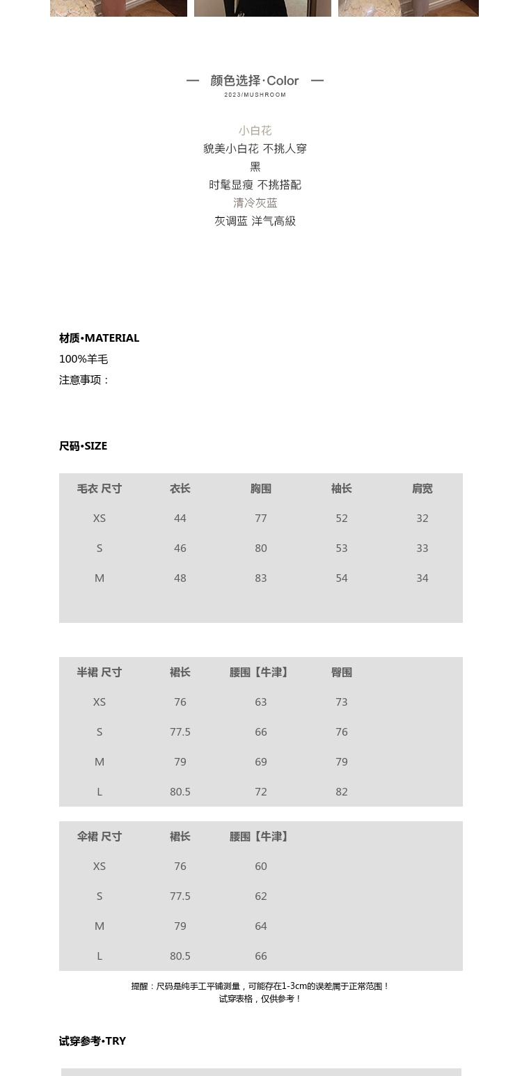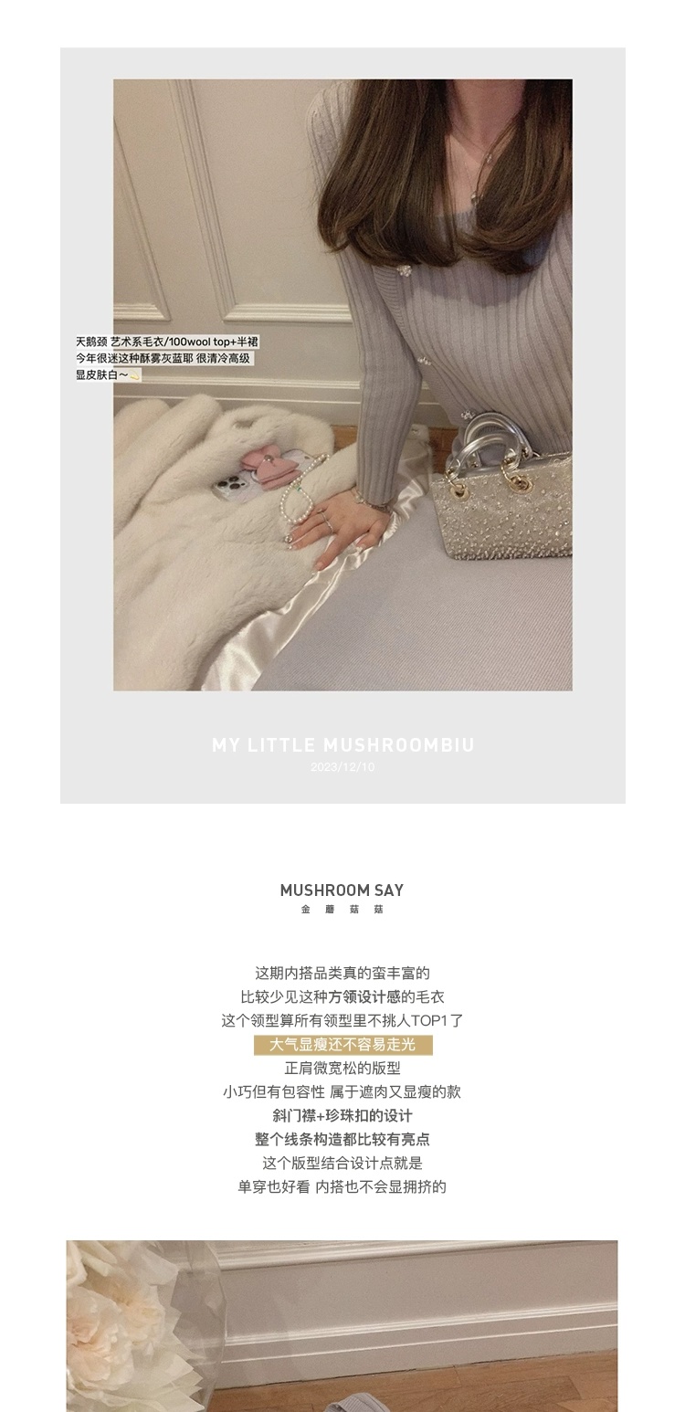 XS码 金蘑菇菇 天鹅颈 艺术系毛衣/基础款长袖毛衣+半裙