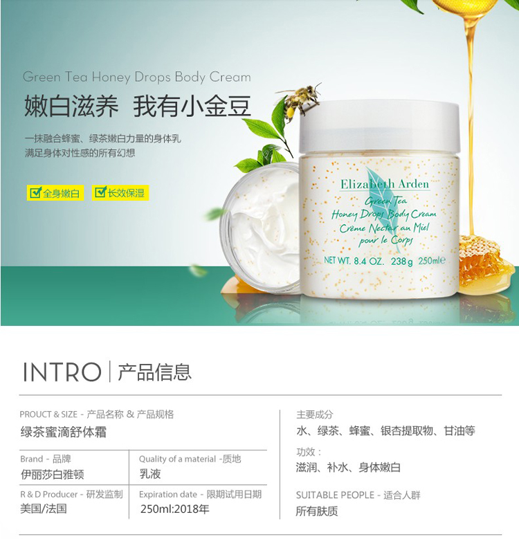 【现货】伊丽莎白雅顿绿茶蜜滴身体霜400ml /500ml舒体补水保湿滋润香体身体乳女