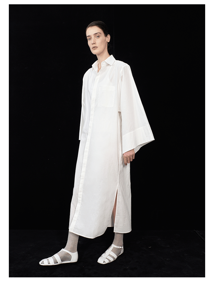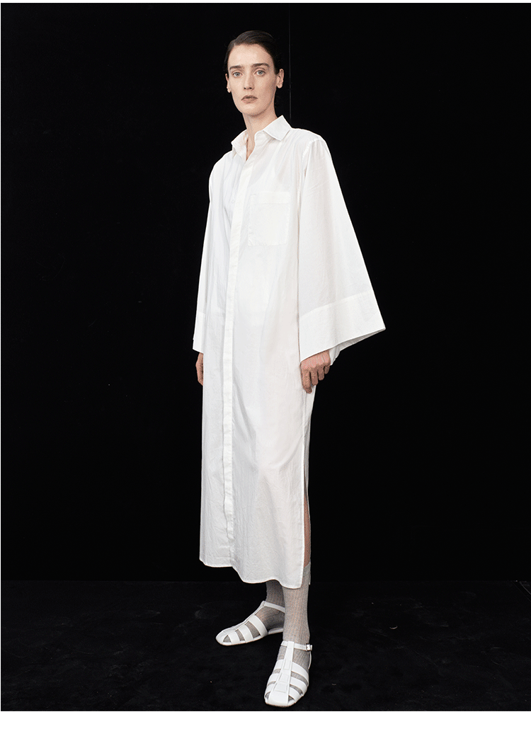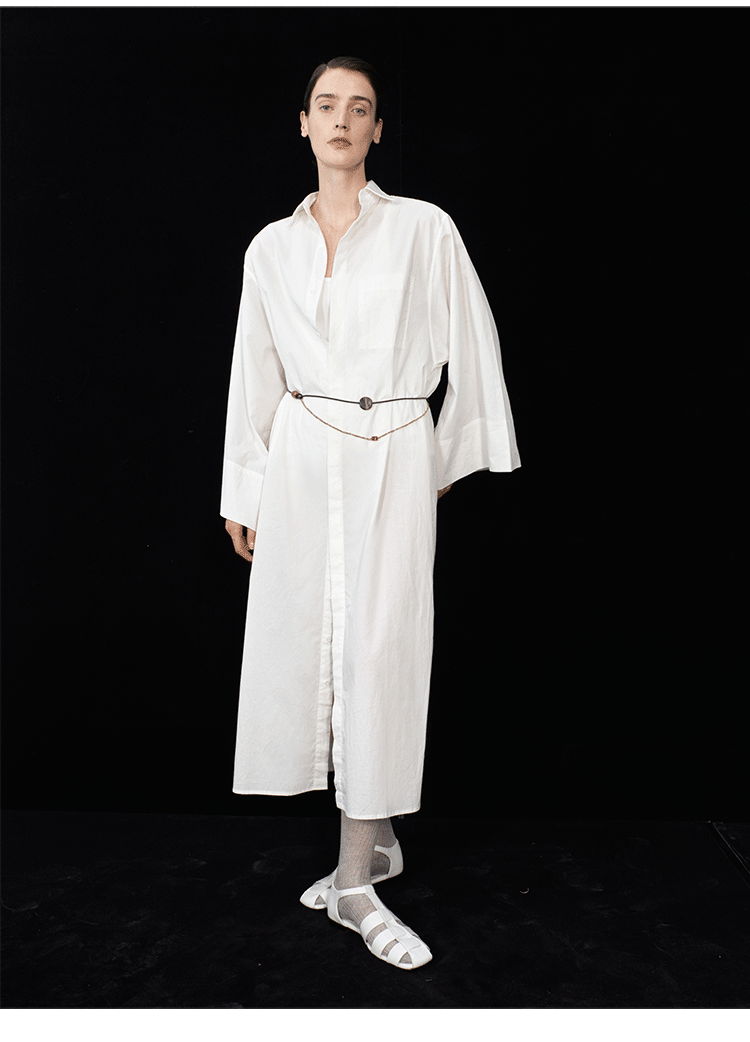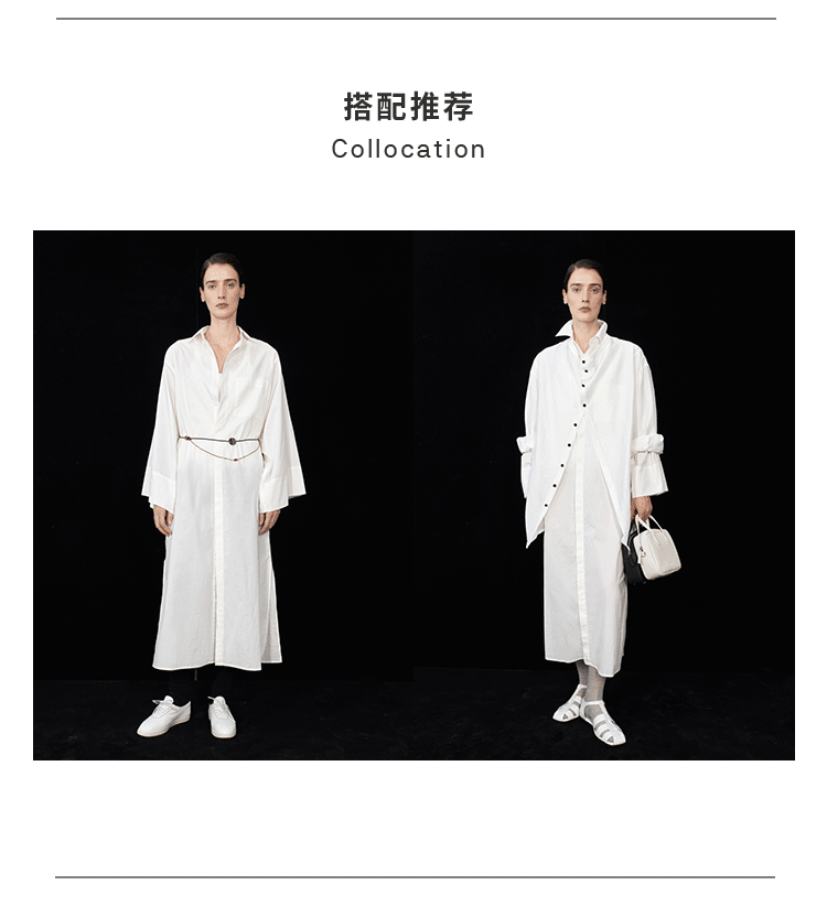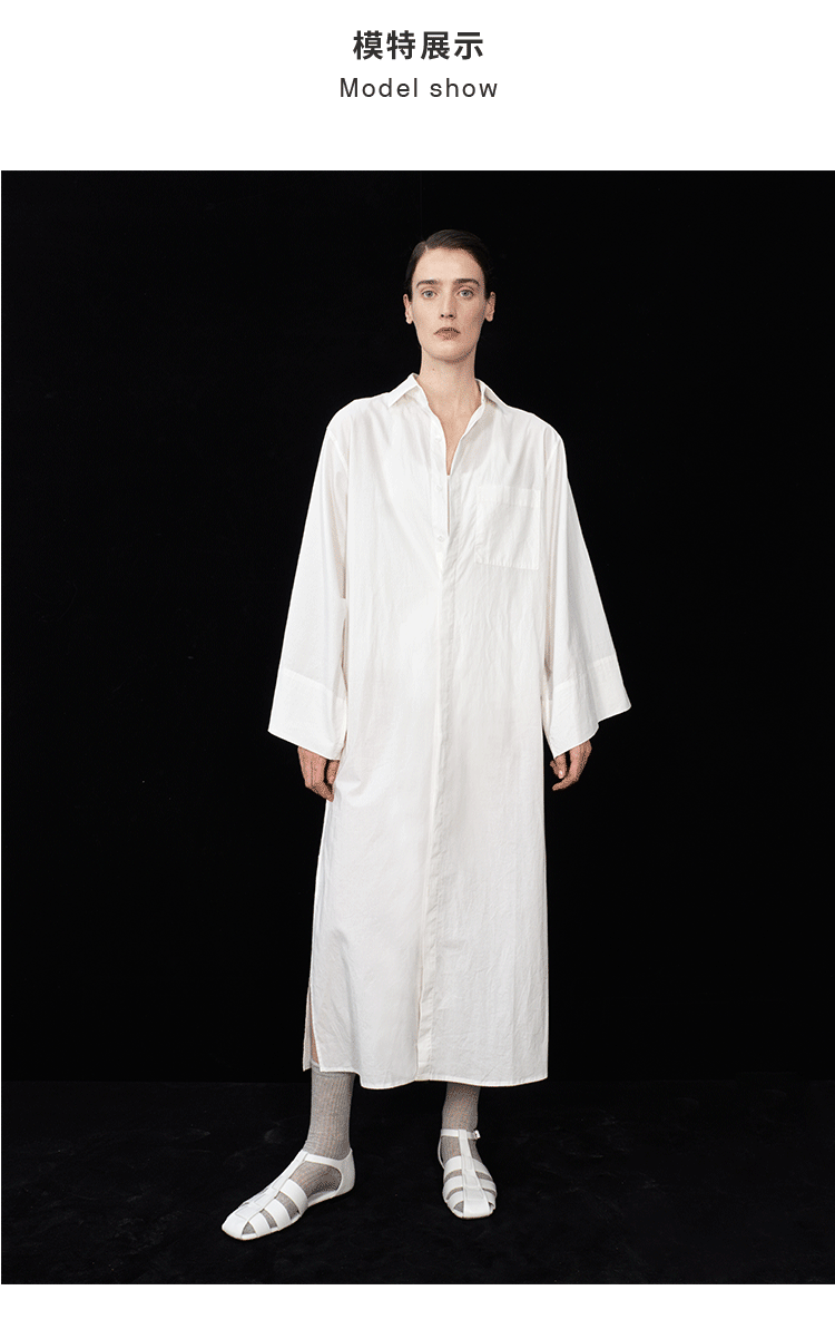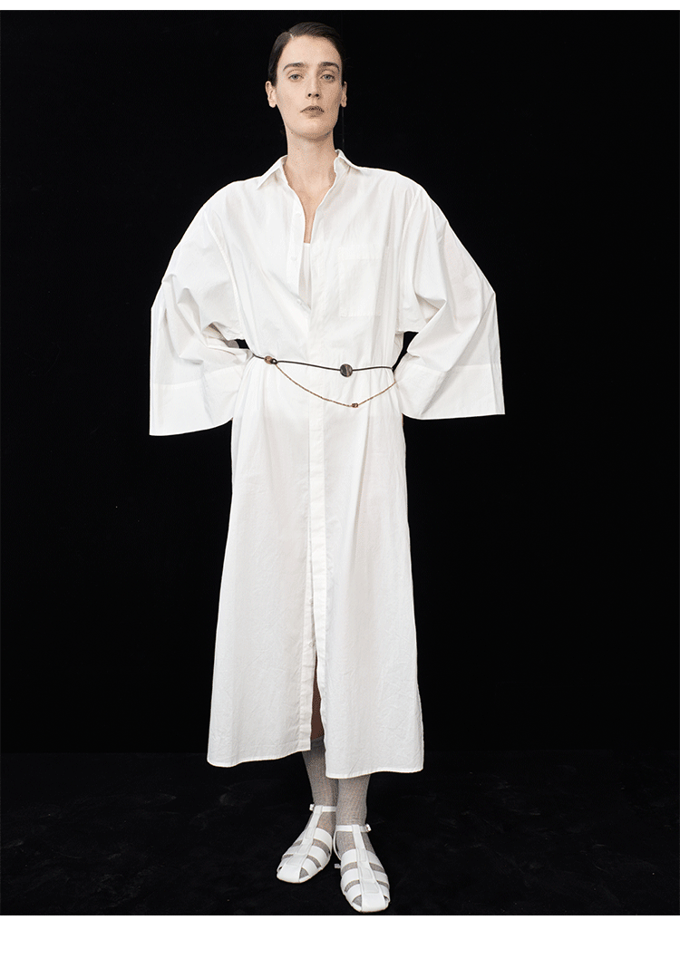 HIDEMI极简设计感廓形袖垂顺天丝长款衬衫