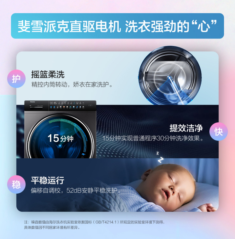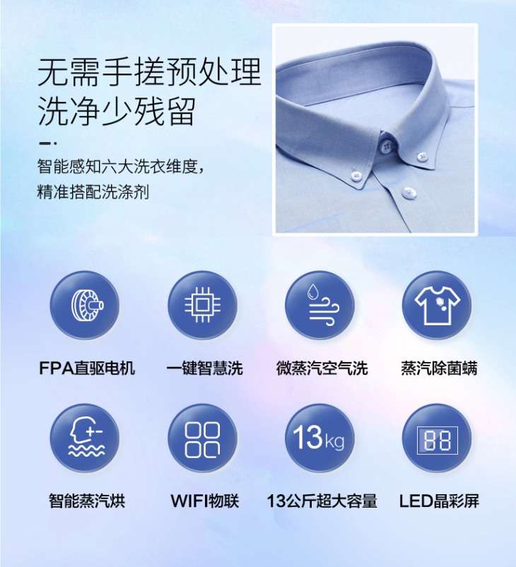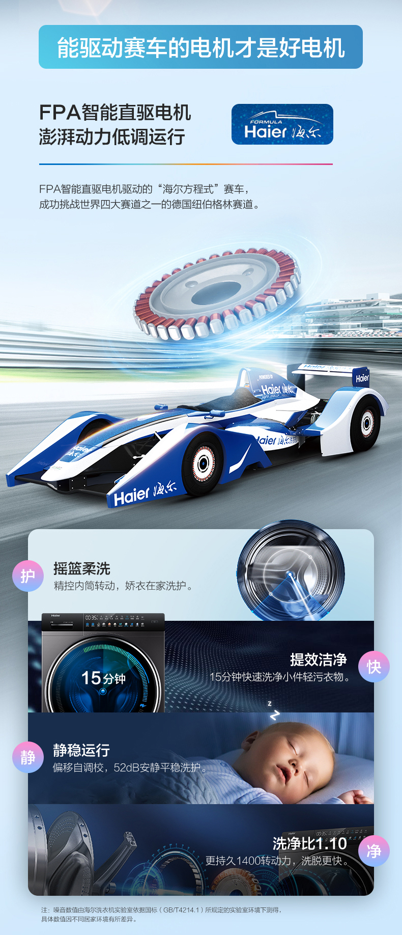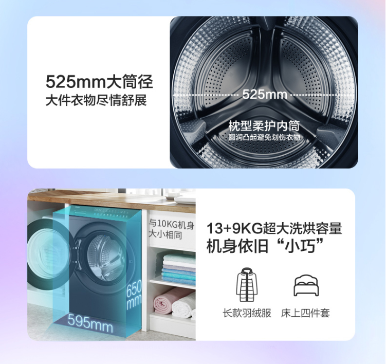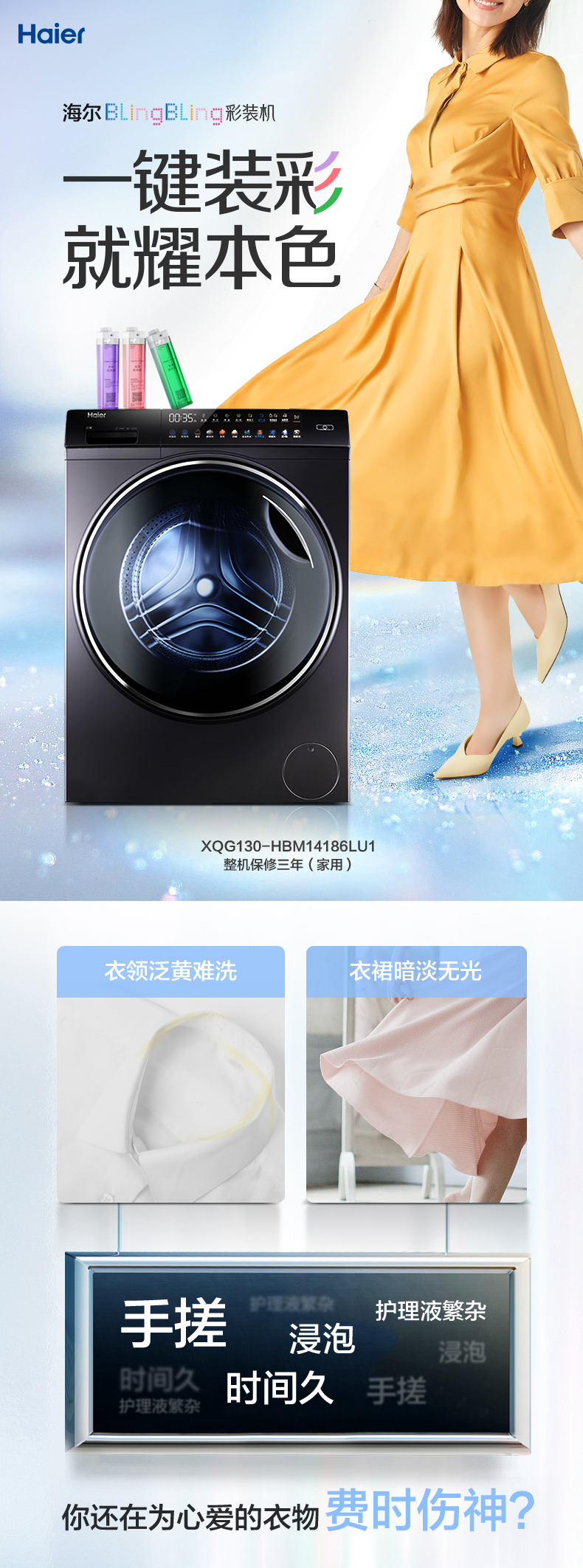 海尔滚筒洗衣机 超薄13公斤大筒径 全自动家电 磁悬浮防震动 洗烘XQG130-HBM14186LU1