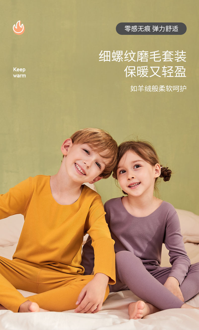 【一穿即暖!舒服到爆的儿童保暖内衣】热舒绒黑科技,如绵柔般贴心,呵护宝宝稚嫩肌肤,亲肤自发热,透气舒适,加绒家居服睡衣套装