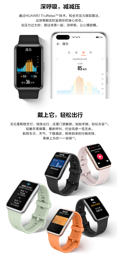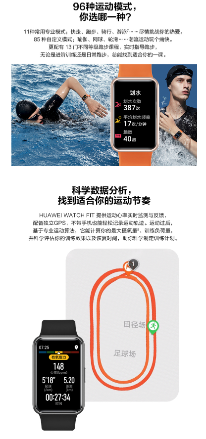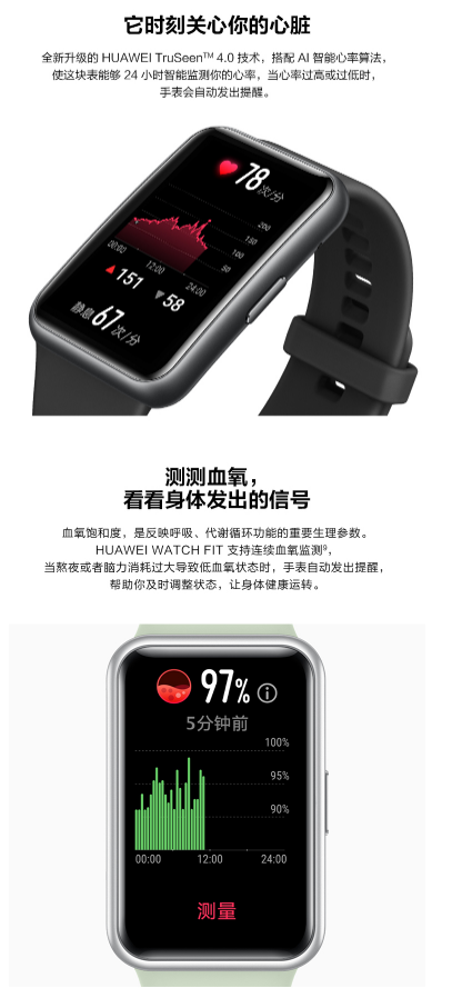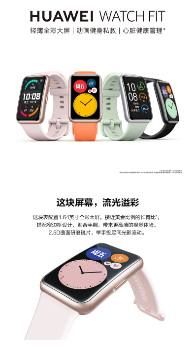 【2022开学季】HUAWEI WATCH FIT 华为手表 曜石黑 运动智能手表方形 时尚轻薄/华为快充/全屏触摸/专业运动/健康管理 商用 商品编号