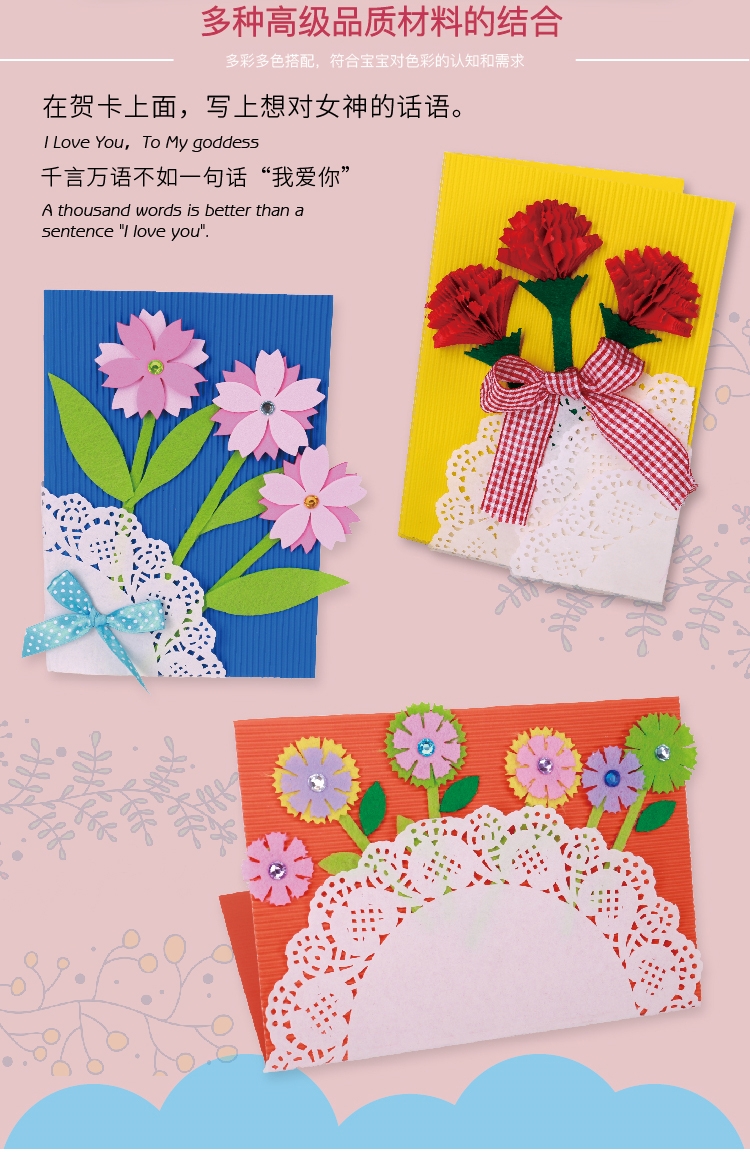38三八妇女神节礼物创意手工diy自制花束贺卡幼儿园儿童材料包